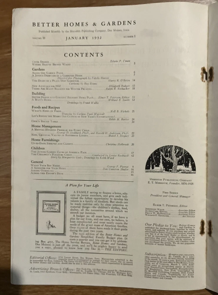 This 1932 January issue of Better Homes & Gardens magazine features an illustrated front cover and is a great addition to any collection of vintage magazines. With its focus on gardening and home decor, this monthly publication is sure to provide hours of reading pleasure for those interested in these topics. The magazine is in its original unit type and has not been signed by the publisher. It was printed in the United States by Meredith Publishing Company and is written in English. This issue is from 1932 and is categorized as a unit quantity of 1. Subscription is not required for this magazine.