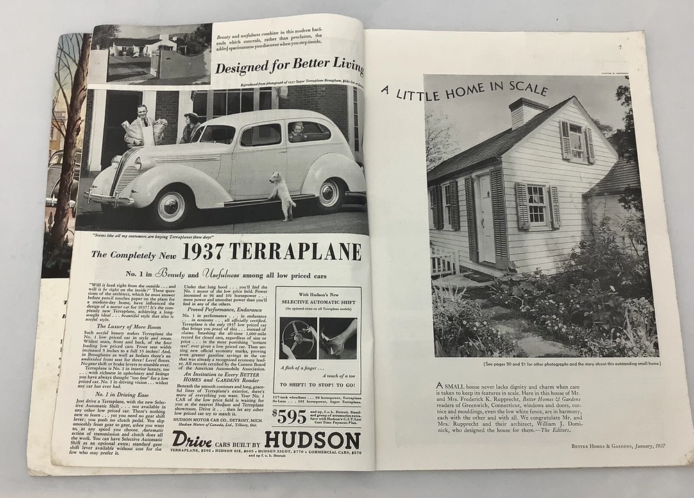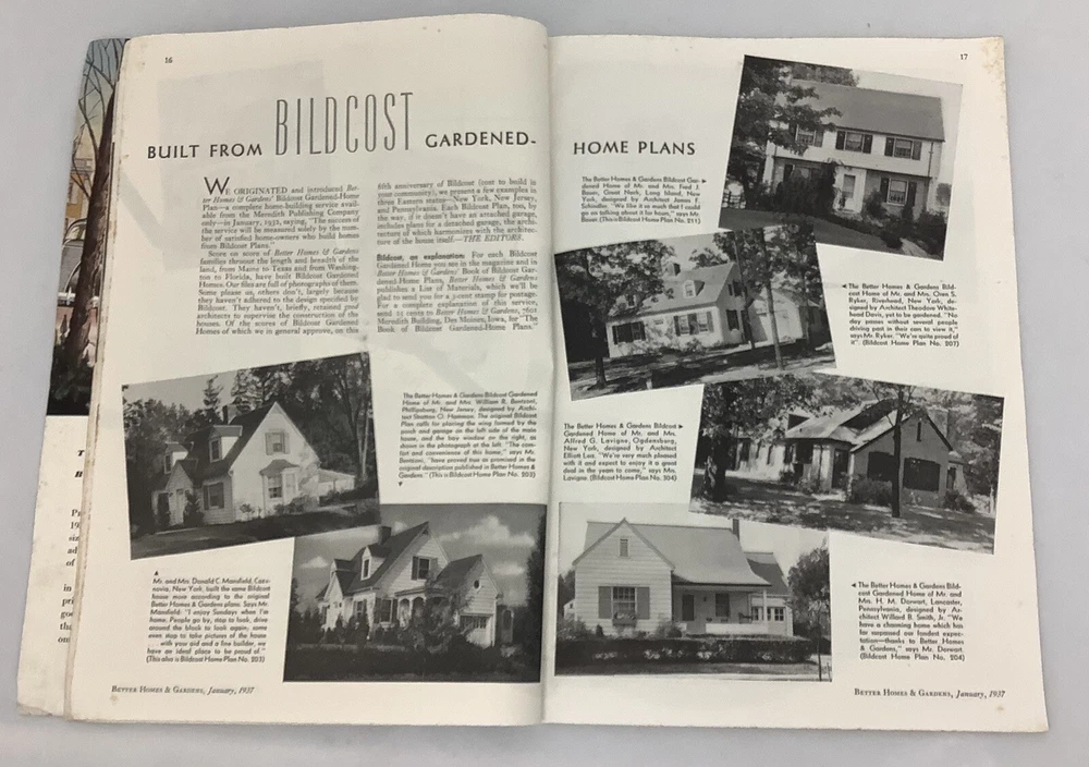 1937 Better Homes & Gardens JANUARY - Houses-Modern Hacienda Floor Coverings. Back cover has some scuffing, front cover has sticker residue. Please see photos for condition. Lot 4-ABC
