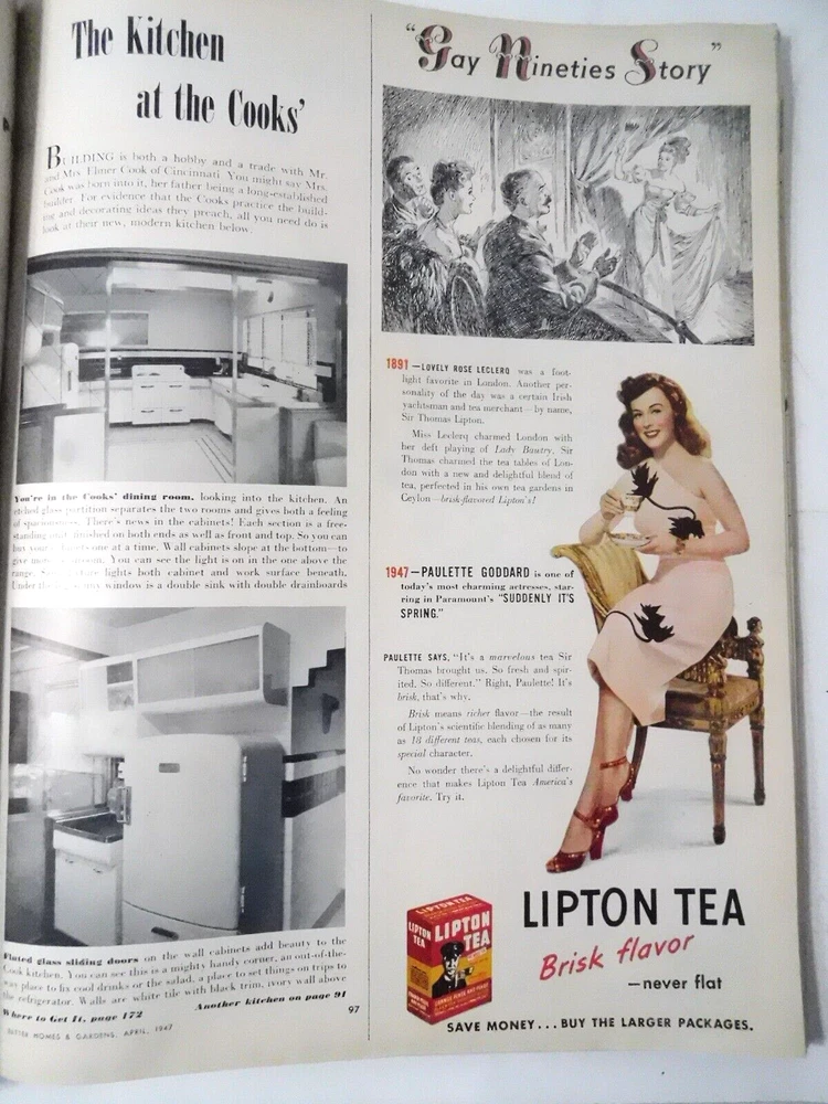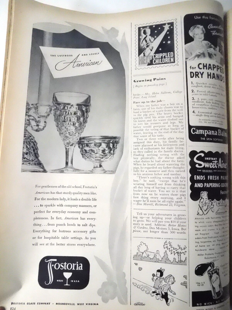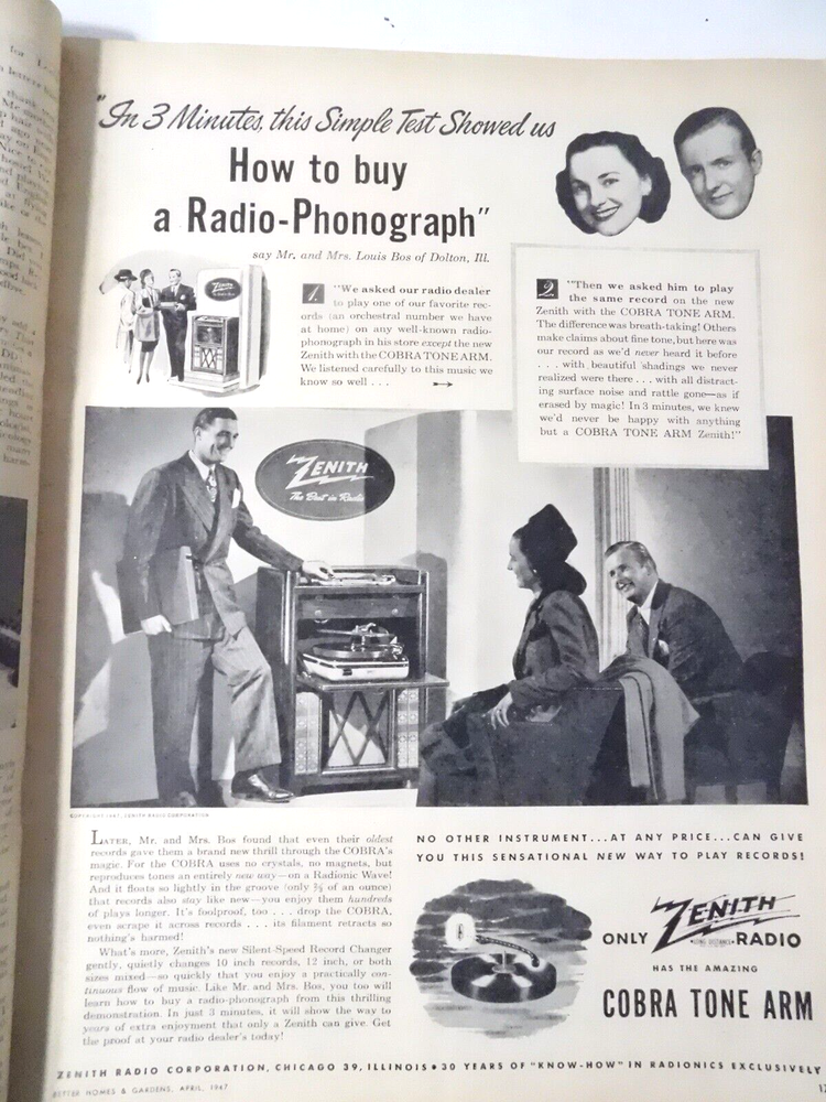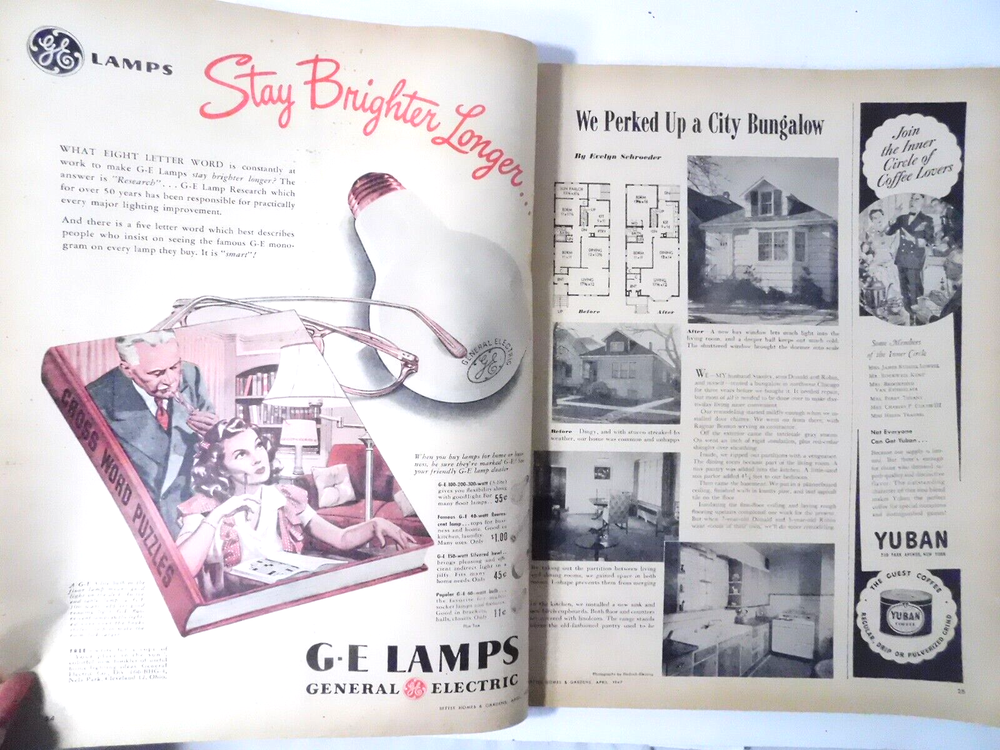 Check out my other items ! 1947 BETTER HOMES & GARDENS Magazine-April. Large Issue with 230 pages. 1940's Housewares, furniture, & products, Questions: Please email me with questions before you purchase. Payment: I mail within 24 hours of payment and accept returns with 30 business days. If you purchase multiple items, I combine shipping charges. Magazines wrapped in plastic with backing board to prevent bending. Check my feedback and bid/buy with confidence. Be sure to add my eBay Store to your list of Favorite Sellers!