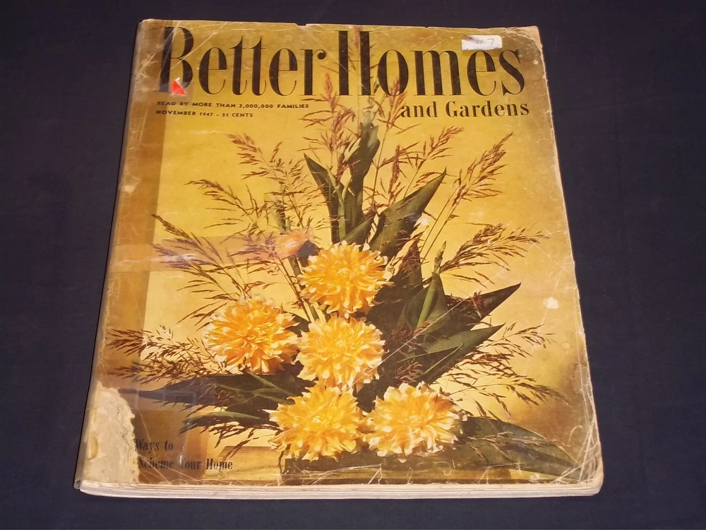 I have an extensive collection of vintage collectibles that I will be offering over the next several weeks and months on eBay. It includes collectible magazines, movie posters, autographs and other paper items. I have a true passion for buying and selling vintage ephemera and hope that you enjoy my listings!!! I have sold on eBay for the past 10 years and now I am branching out with a new eBay account. Bid with confidence and feel free to ask any questions you have about the magazines; I will be happy to answer them. Happy Bidding! Up for auction is a November 1947 Better Homes & Garden magazine featuring a very nice front cover, great food and home articles and amazing ads many full page color!! This issue is in overall fair to good condition showing tape to the spine which is holding the issue together missing paper near the left lower part of the spine & some minor wear due to age and storage. Please look at the pictures and feel free to ask any questions you might have, as i am happy to answer them. I have many more magazines to list and if you have further interest in other issues or in large purchases of magazines, please contact me. Happy Bidding!!! I do combine on shipping to make it as cheap as possible if you are buying multiple items. If you are interested in bulk purchases of magazines or movie posters, please contact me and I will be happy to work with you. Also if you have a large collection of paper collectibles, please contact me and I would be happy to listen to what you have!