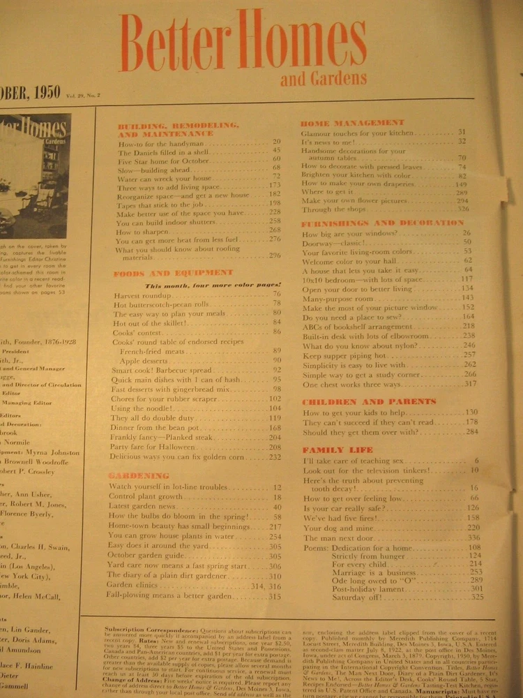 Better Homes and gardens magazine from October 1950 In nice condition for its age 336 pages