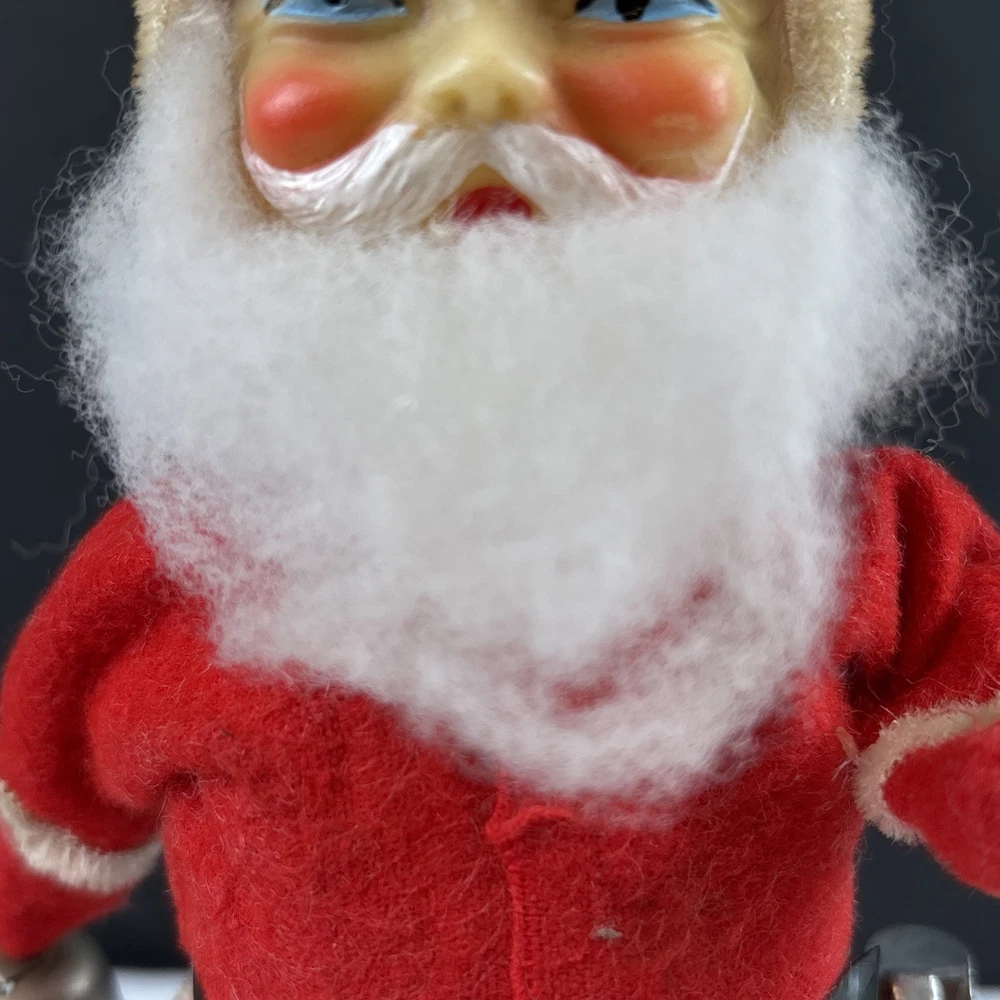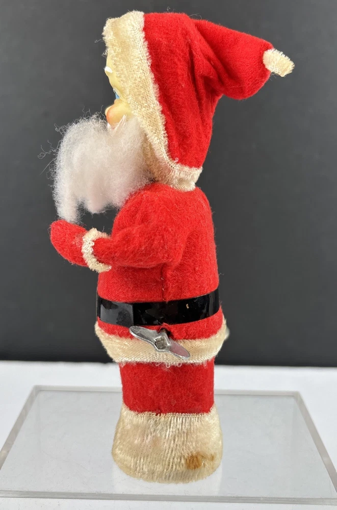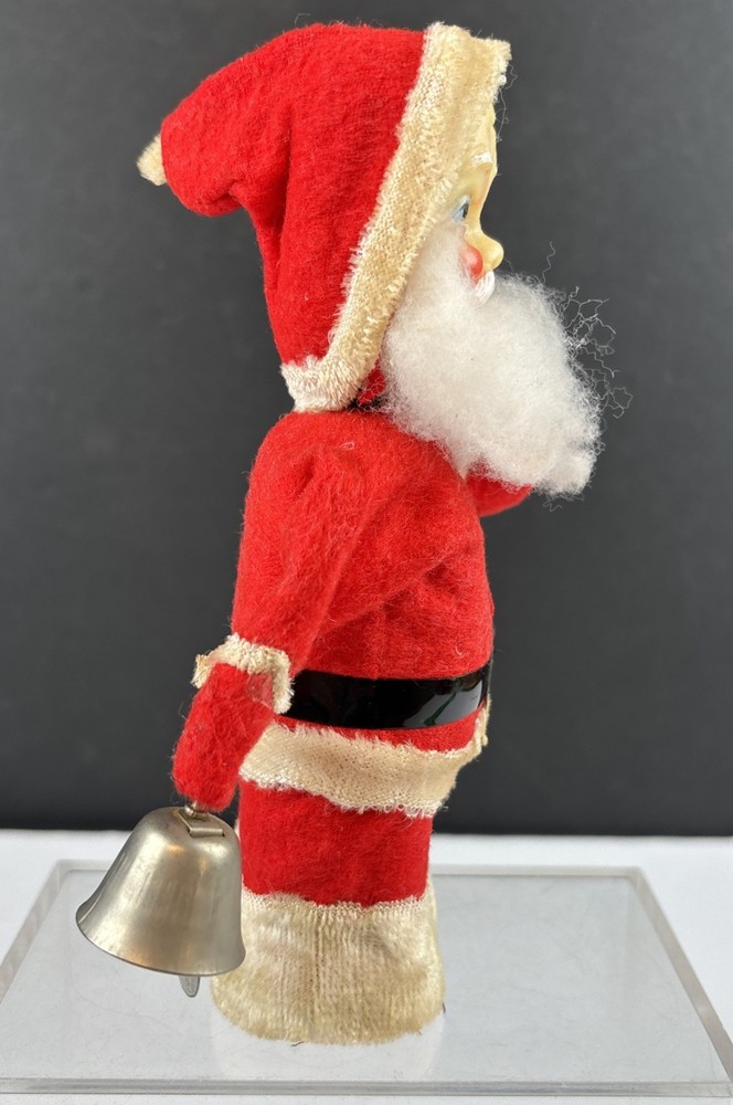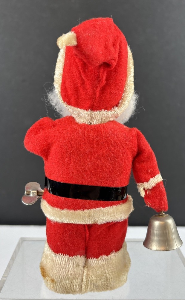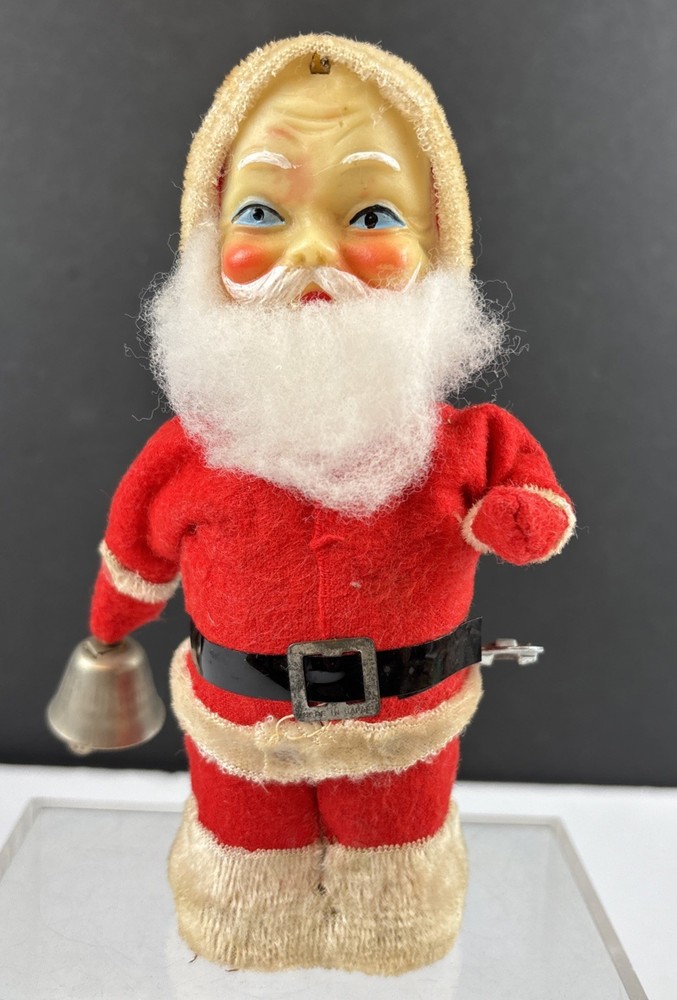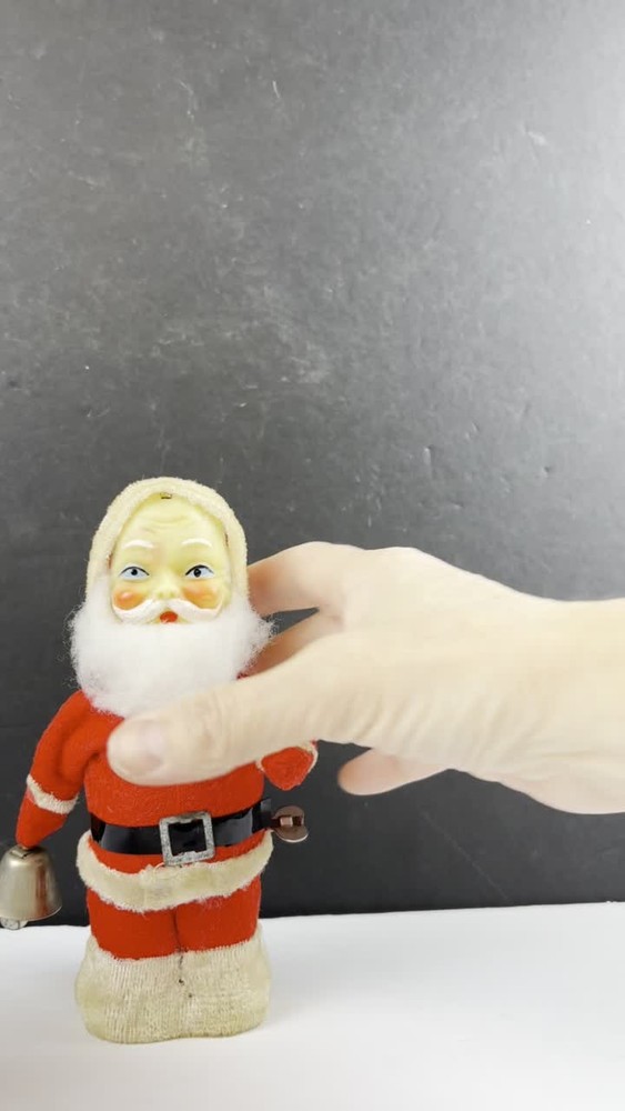 Vintage 1950's Alps's Wind Up Mechanical Santa Claus Ringing Bell 7" Some light age staining/discoloration. No tears, rips or holes. He does wind up easily and rings his bell (see video) His little belt buckle is marked MADE IN JAPAN. Weighs 3.2 ounces (prior to packaging) We buy most of our pieces at auctions & flea markets,so we may not know the history of the item. We are not antique dealers, collectors or experts. We describe the item along with any flaws and markings we can find the best we can. We will combine shipping whenever possible and ask that payment be made within 4 days. If you are not completely satisfied, please contact us prior to opening a claim with eBay and we will be happy to work with you. Thanks for looking!!