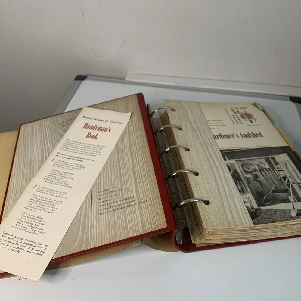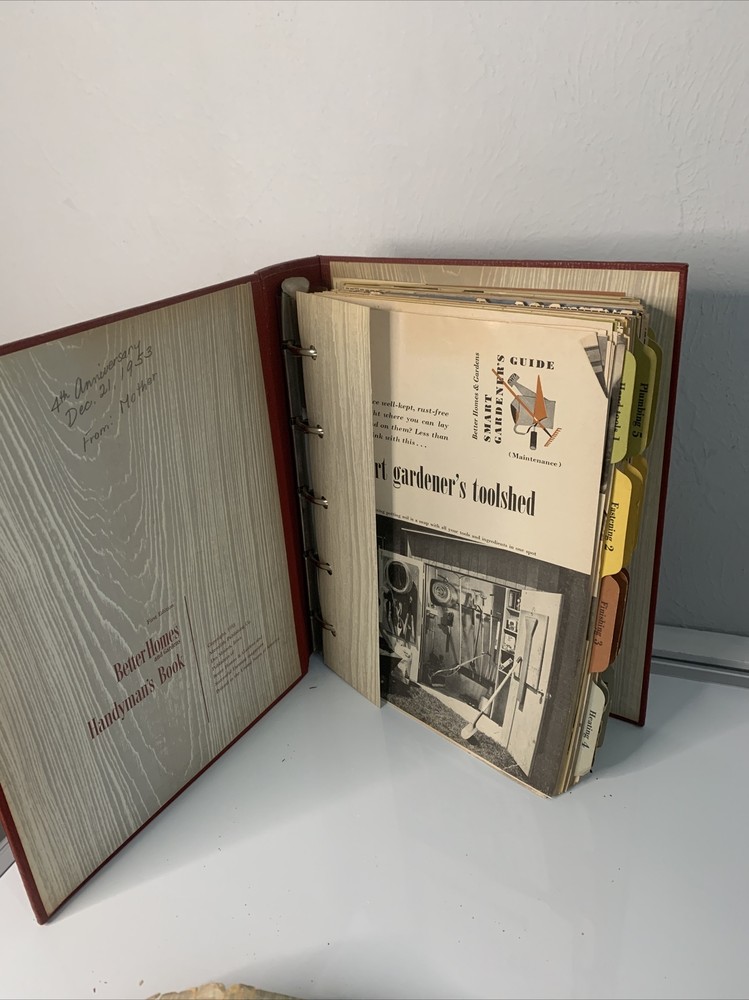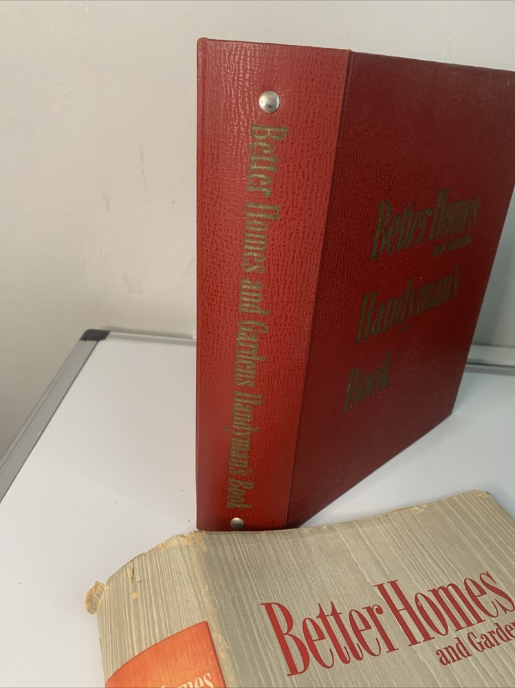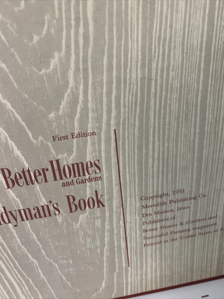 Better Homes & Gardens Handyman's Book 1951 Ring Binder 1st Edition Vintage. The book is aged but still very nice. The dust cover is worn and torn but protected the book well. Shipped with USPS Media Mail. Thanks