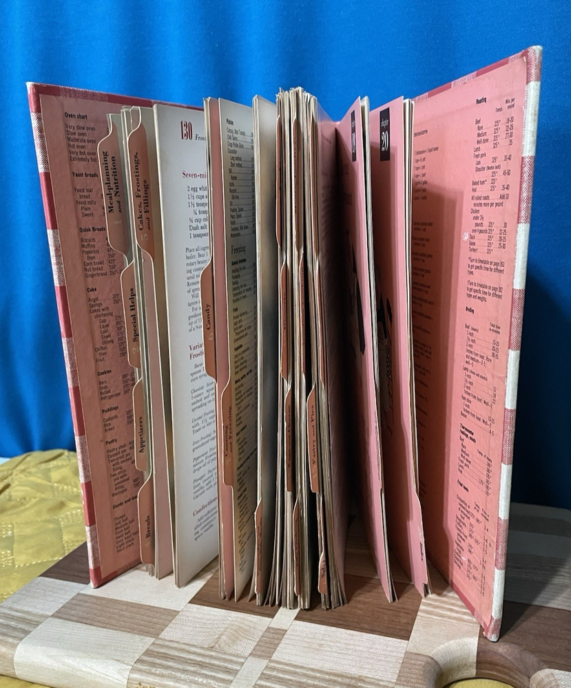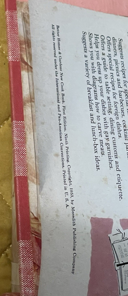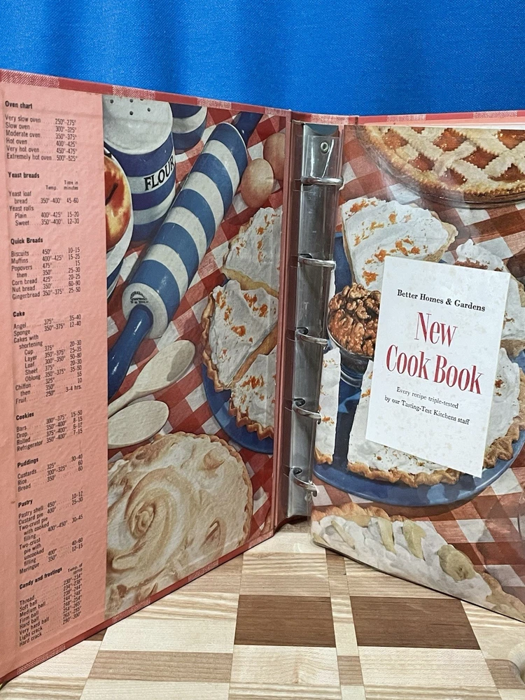 1953 Vintage Better Homes and Gardens Cookbook, New Cookbook, 1st Edition 1st Printing This big recipe book is in a binder with 5-Rings, Hardback cover and features a large red and white checkered pattern. One of the greatest recipe books! Has a ring on the back cover. Other then that it is in very good condition. View all the pictures for more details. Inventory # 1113
