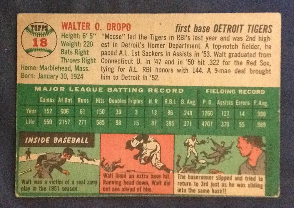 For sale 1954 set cards as listed. Cards are graded as fillers to very good. Lower grade dropdowns. Some Cards have paper loss, creases, etc. Please look at the photos for a better description. Shipping is $1.00 for the first card additional card ship FREE. Please add all items to your cart before checking out. EBAY updates shipping automatically. If you have any questions please feel free to email me. If for some reason there is an overage in shipping just email me and I will refund the difference. I am not a professional grader...grades are my opinion only. All items ship within 24 hours. Thanks for looking!