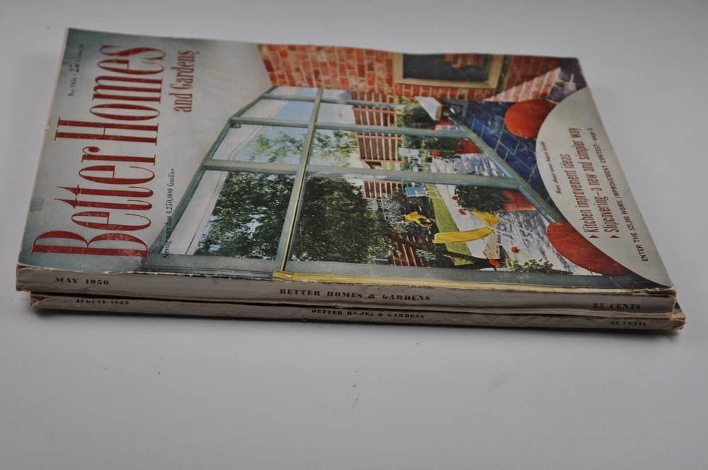 1955/56 Vintage Better Homes & Gardens Magazines Item description I am selling pre-owned 1955 August and May, 1956 Vintage Better Homes & Gardens Magazine. There is wear to the covers and the spine - these pieces are over 65 years old! Great advertising and seasonal ideas. The May 56 issue is like a double issue with 364 pages. Both are in very good pre-owned condition. Estate find - Normal wear. As shown in photos. Please email me with any questions. Terms - Payment is due immediately. I am able to ship within 24 hours of receiving payment. All items are from a smoke free/pet free home. Please ask me any questions before you purchase. I have done my best to accurately describe all relevant details for each item, but I'm happy to provide additional information for you. _gsrx_vers_1710 (GS 9.9.1 (1710))