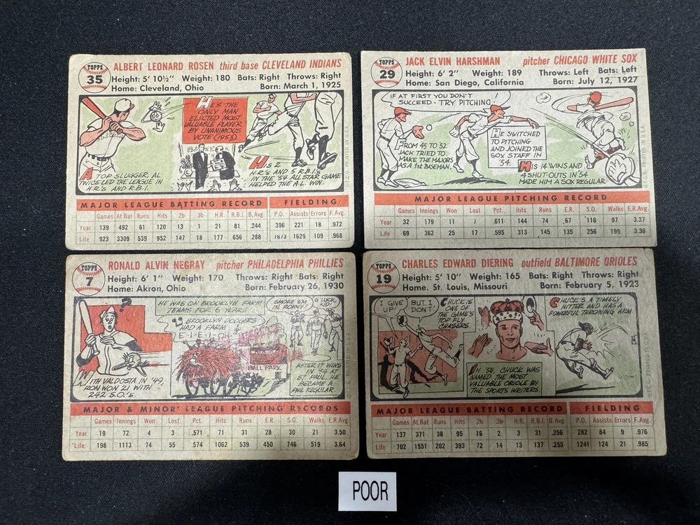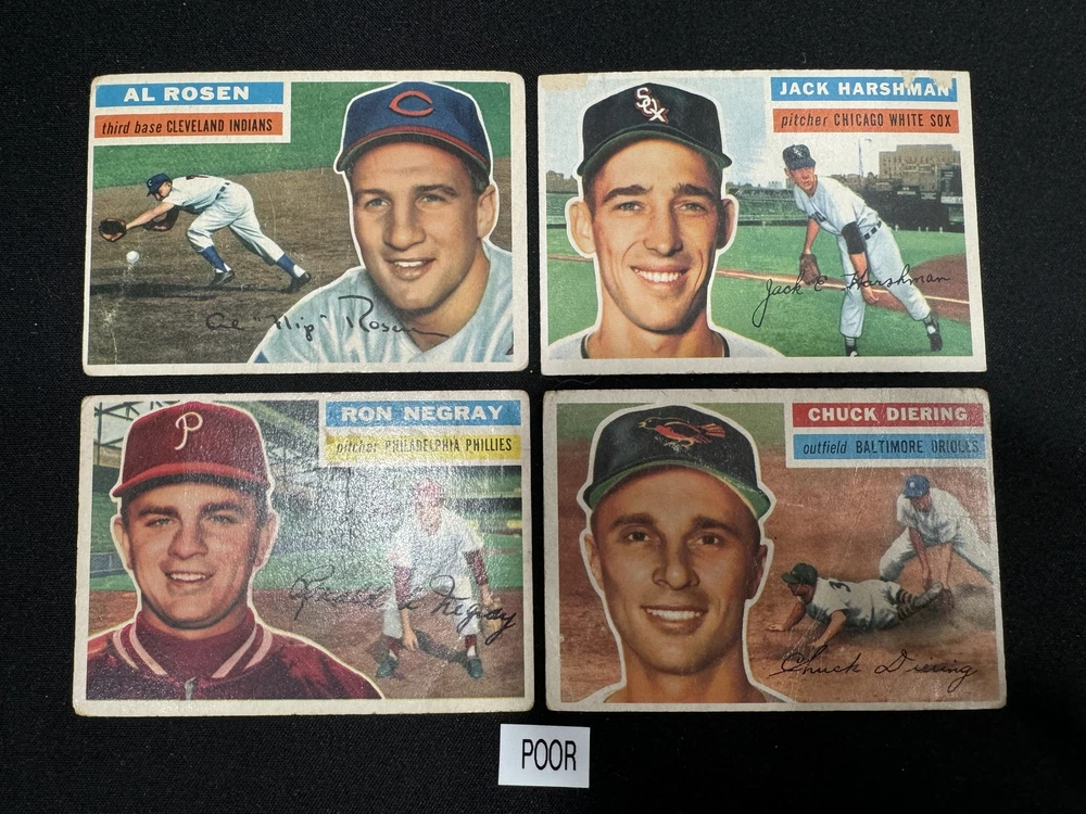 This seller is amazing for completing your 1956 Topps baseball set! Easy to pick individual cards, fair pricing, and they ship safely with tracking. Cards arrived in the described condition, from poor to near-mint—perfect for collectors filling gaps. The discount for multiples is a great bonus, and combined shipping saves money. Super responsive and professional. Highly recommend for vintage baseball card needs!