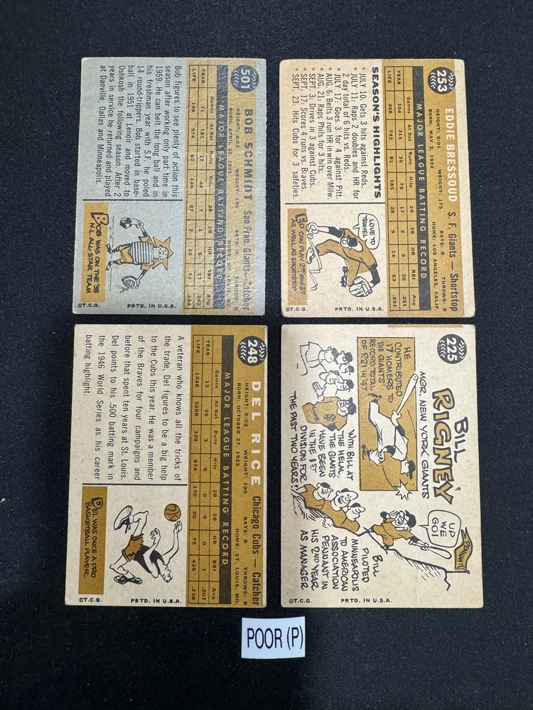 These 1960 Topps baseball cards are a fantastic way to complete your vintage collection! The condition is solid for their age, ranging from presentable to near-mint, and the selection covers key players from the era. The seller offers fair pricing, discounts on bulk orders, and secure shipping—perfect for collectors looking to fill gaps in their set. Highly recommended for anyone serious about classic baseball memorabilia!