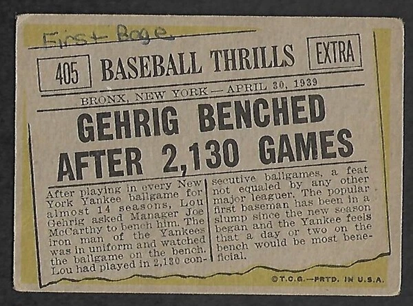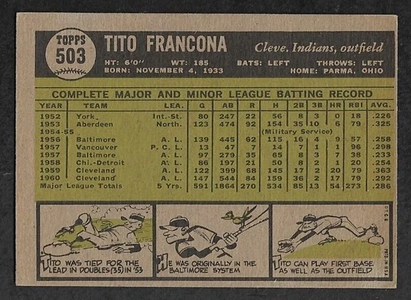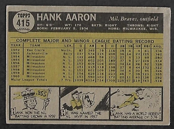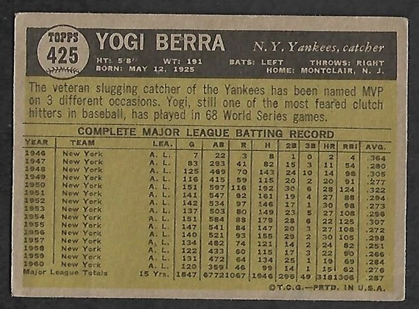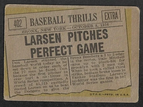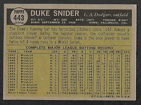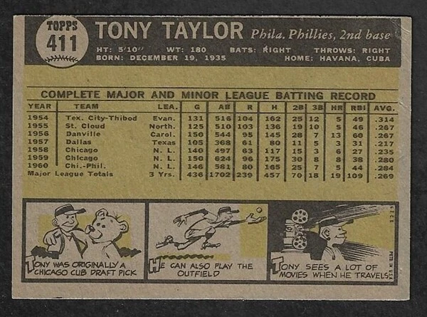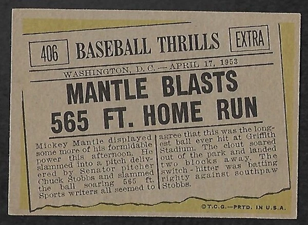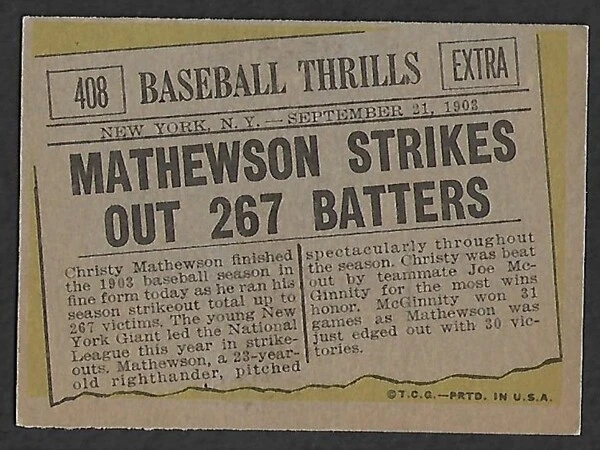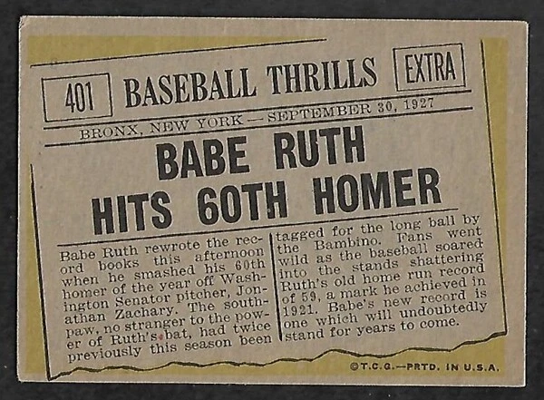 1961 Topps, Complete Your Set, #s 401-589, STARS, All Pictured, Volume Discounts Note: Other 1961 numbered cards are available in other listings. All cards are pictured with actual scans. Volume discounts - 2 or more is 5% off, 3 or more is 7% off, and 4 or more is 10% off. COMBINED SHIPPING - Shipping for U-Picks is $1.80 for the 1st card, and $.25 for each additional card. I will be happy to cap shipping at $4.00 for any number of cards. Put all cards in the EBAY cart, and press the Request Total button, and I will send an invoice. Some buyers have had trouble with this technique. If you experience problems, send me a note, and we can work it out. Thanks for looking!