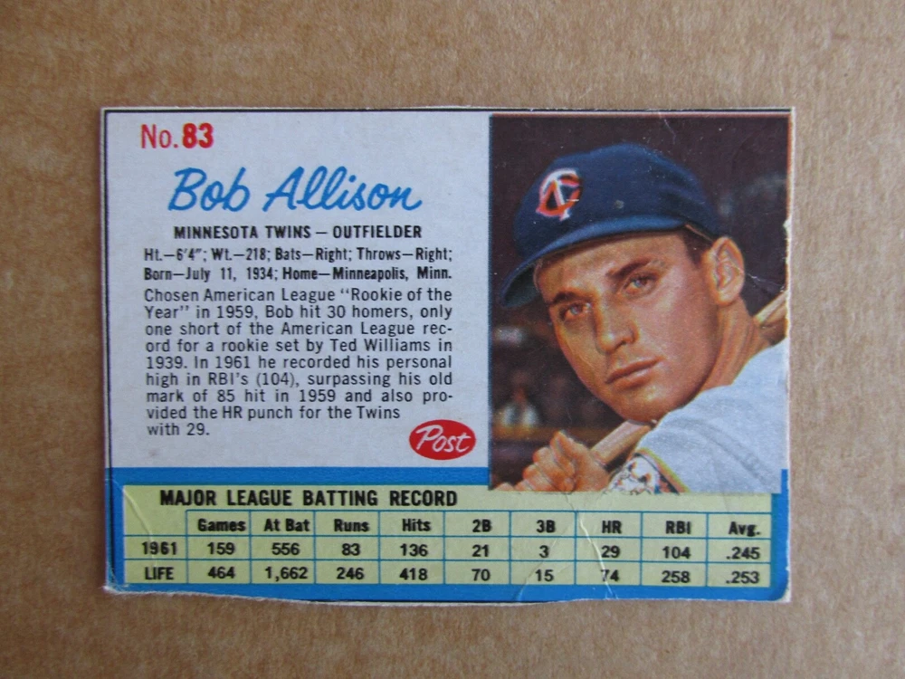 1962 POST BASEBALL CARD SINGLES COMPLETE YOUR SET PICK CHOOSE FROM CARDS IN LISTING SEE PHOTOS OF EACH CARD LISTED FOR CONDITION CONDITION RANGE POOR-EXCELLENT FREE SHIPPING...
