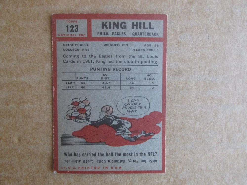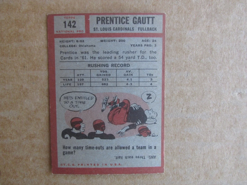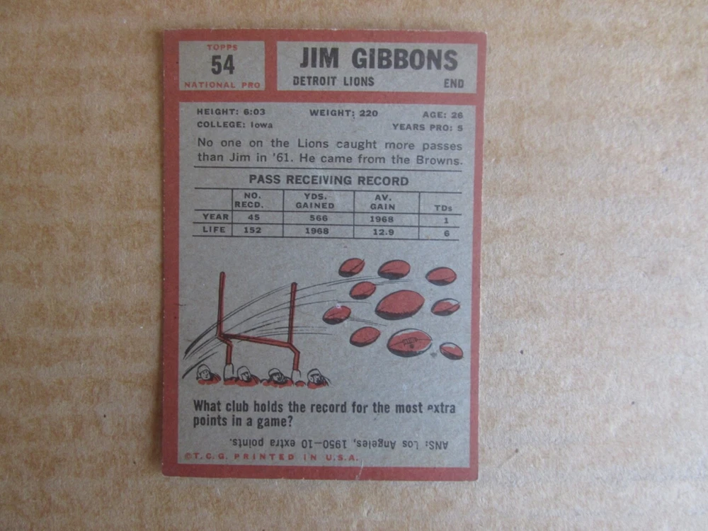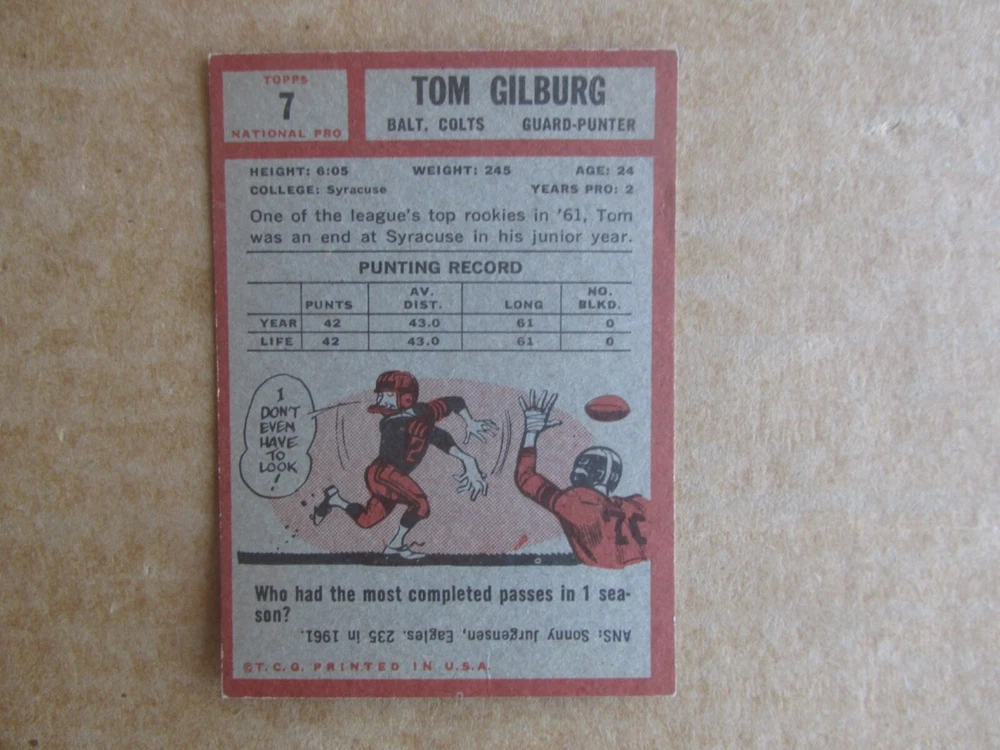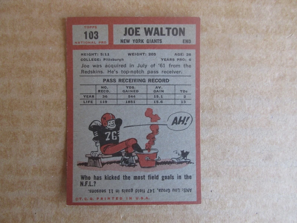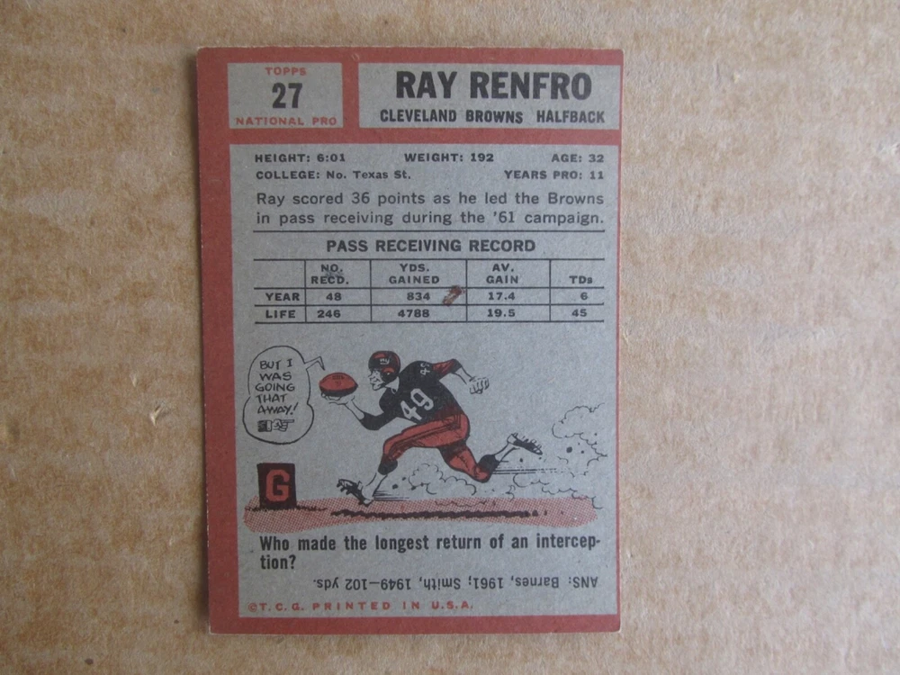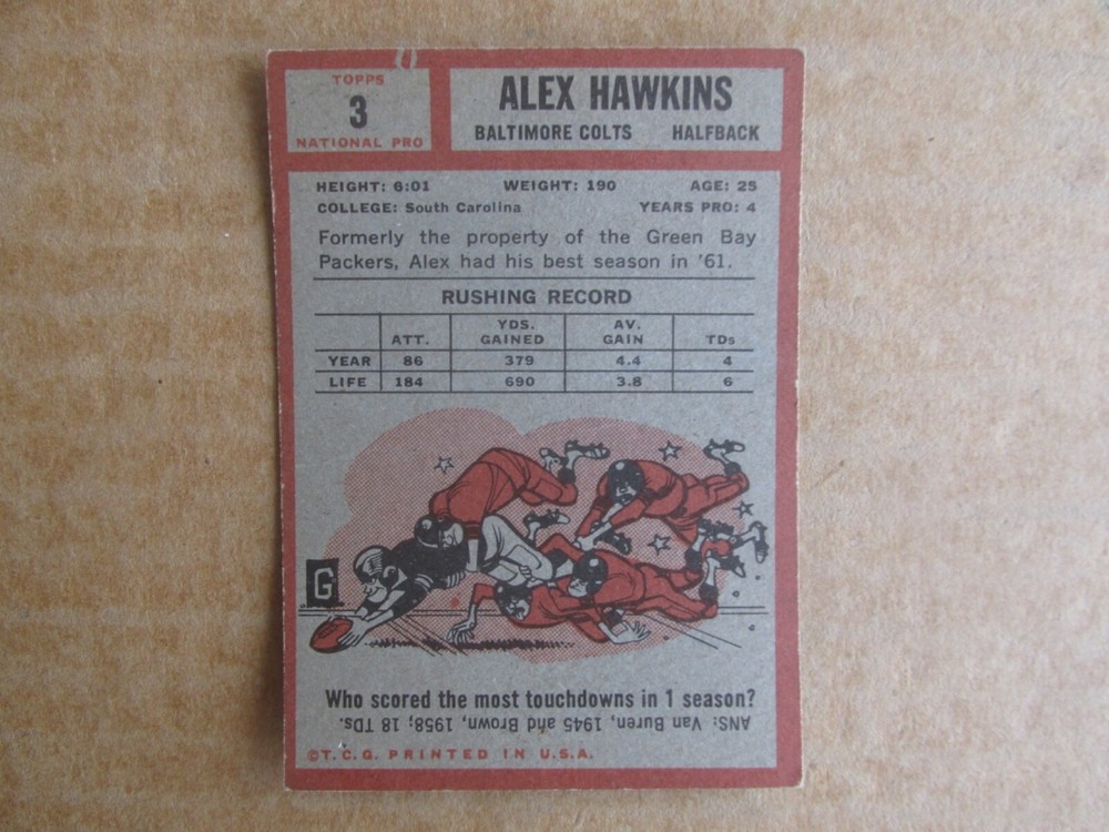 1962 TOPPS FOOTBALL CARD SINGLES COMPLETE YOUR SET PICK CHOOSE FROM CARDS IN LISTING SEE PHOTOS OF EACH CARD LISTED FOR CONDITION CARD CONDITION RANGE GOOD-EX/NRMT FREE SHIPPING
