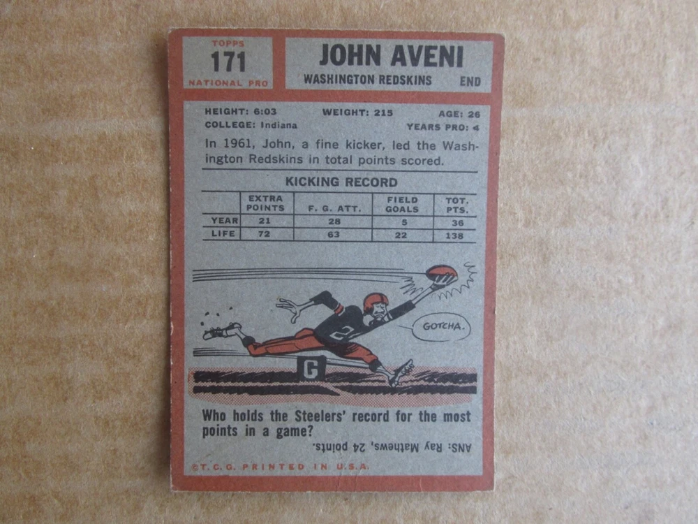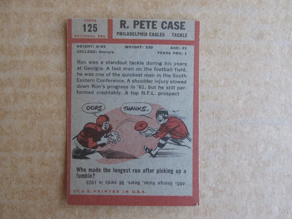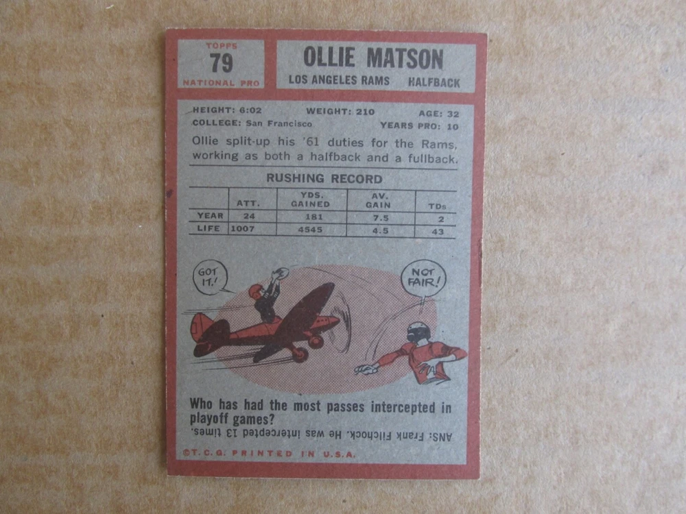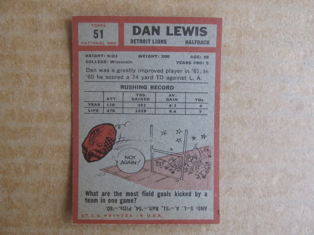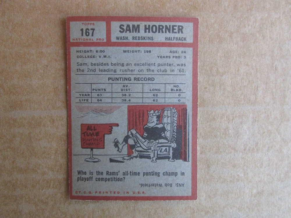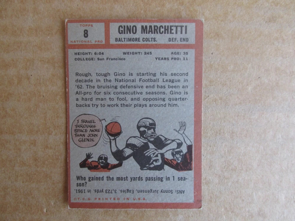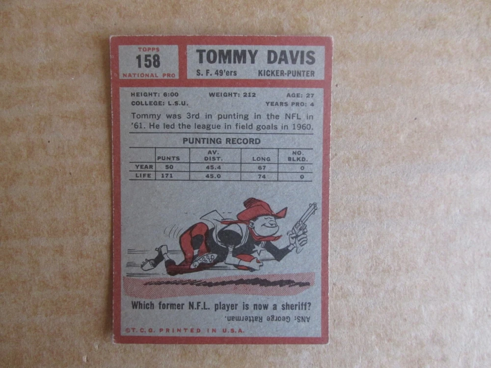 1962 TOPPS FOOTBALL CARD SINGLES COMPLETE YOUR SET PICK CHOOSE FROM CARDS IN LISTING SEE PHOTOS OF EACH CARD LISTED FOR CONDITION CARD CONDITION RANGE GOOD-EX/NRMT FREE SHIPPING