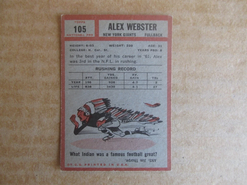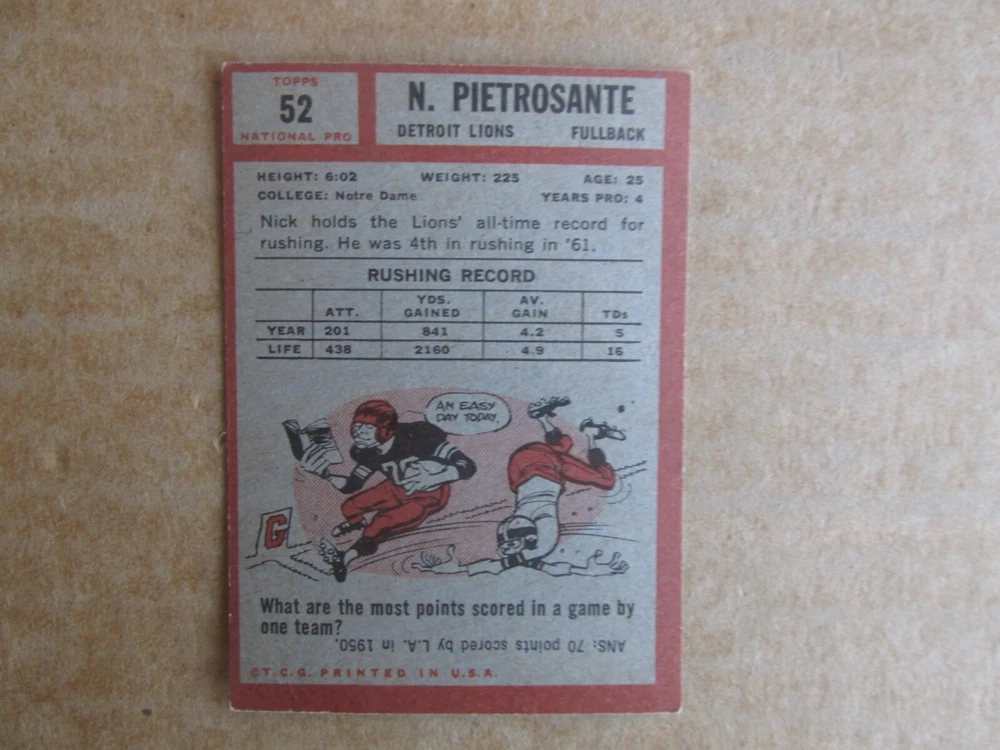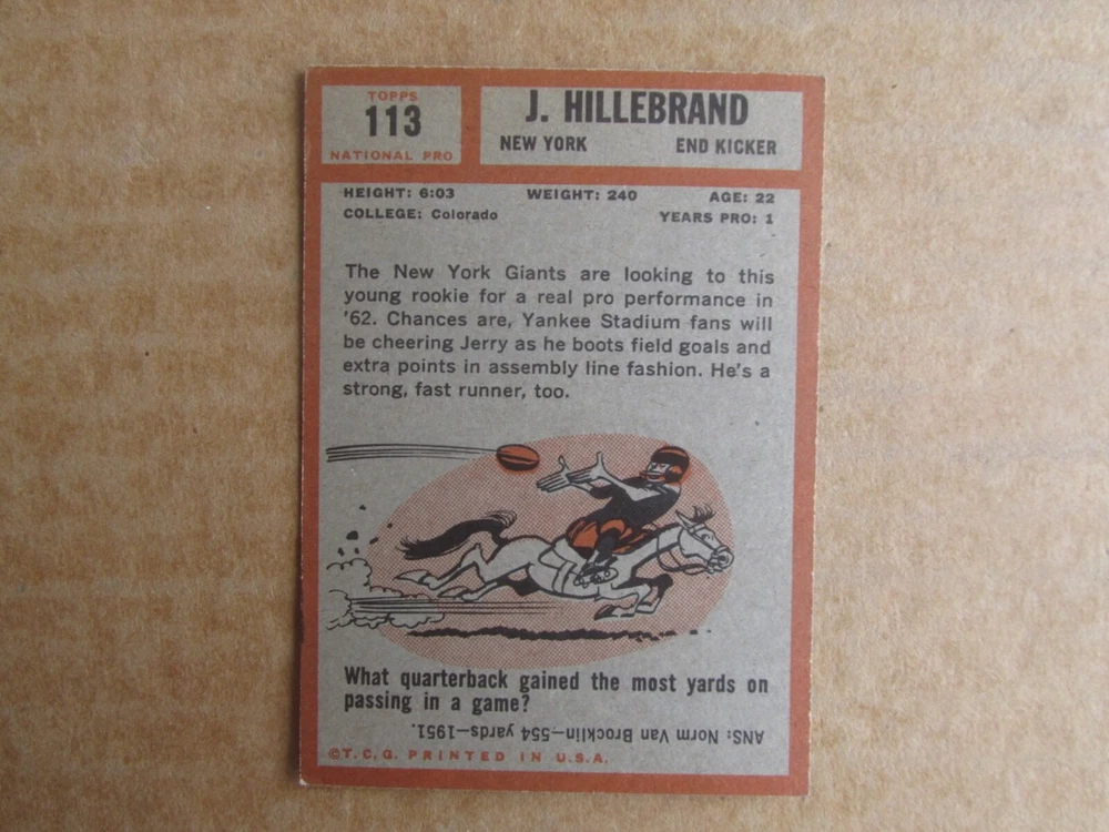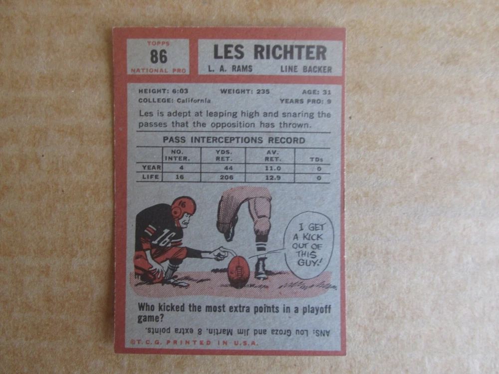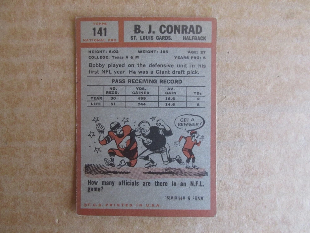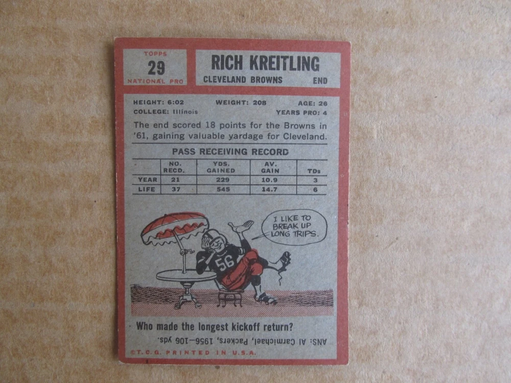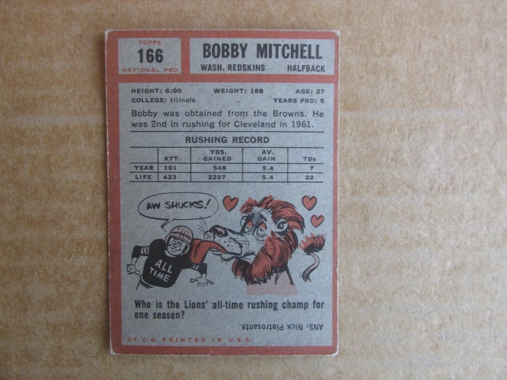 1962 TOPPS FOOTBALL CARD SINGLES COMPLETE YOUR SET PICK CHOOSE FROM CARDS IN LISTING SEE PHOTOS OF EACH CARD LISTED FOR CONDITION CARD CONDITION RANGE GOOD-EX/NRMT FREE SHIPPING