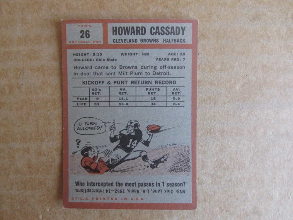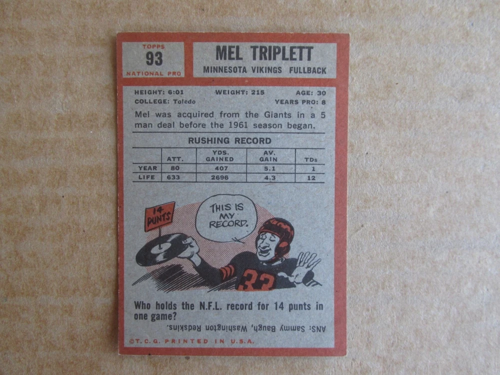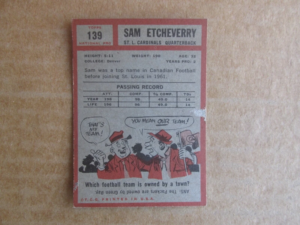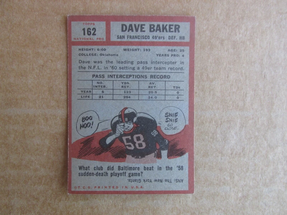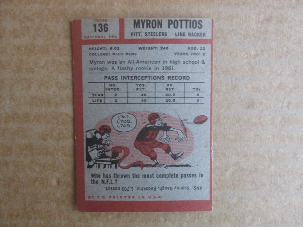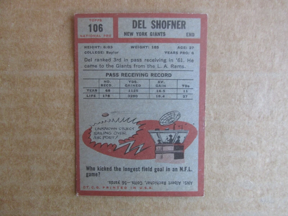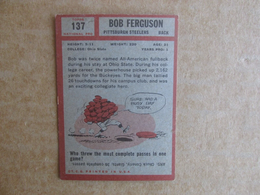 1962 TOPPS FOOTBALL CARD SINGLES COMPLETE YOUR SET PICK CHOOSE FROM CARDS IN LISTING SEE PHOTOS OF EACH CARD LISTED FOR CONDITION CARD CONDITION RANGE GOOD-EX/NRMT FREE SHIPPING