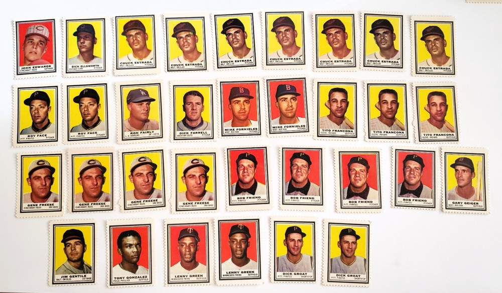 Pick your favorite 1962 Topps stamp! Or complete that set you've been putting off! All of the stamps are unused and still have factory glue. General condition is very good, but there are a few off center stamps or miscuts. All stamps are pictured so you can see condition! Shipping is $0.99 for your first stamp. Multiple quantity discounts available.