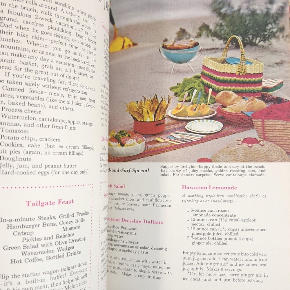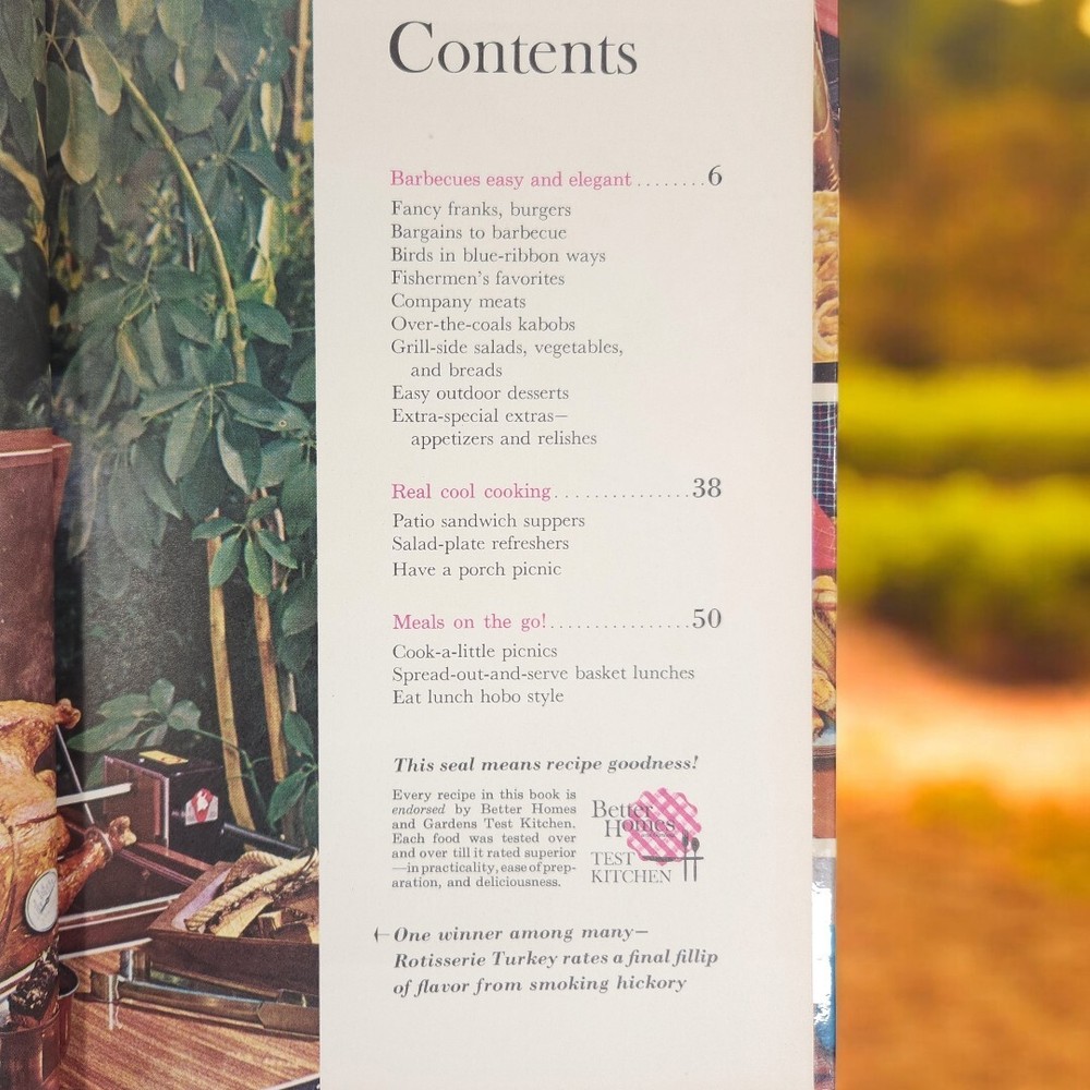 Vintage Cookbook: Barbecues & Picnics (1963) by Better Homes & Gardens Step Back in Time with This Classic Cookbook! Enjoy the flavors of the 1960s with this vintage Barbecues & Picnics cookbook from Better Homes & Gardens. Published in 1963, this hardcover edition is in excellent condition for its age. Condition: Great Condition: The book is in excellent condition with minimal signs of wear or tear. Name Inside: There is a name written inside the front cover. Shelved Most of Its Life: Appears to have been stored on a shelf for most of its existence. Book Details: Title: Barbecues & Picnics Author: Better Homes & Gardens Year: 1963 Format: Hardcover Publisher: Meredith Corporation Discover Classic Recipes and Tips Step back in time and explore the culinary delights of the 1960s with this vintage cookbook. Inside, you'll find a variety of delicious recipes for barbecues, picnics, and other outdoor gatherings. Don't miss this opportunity to add a piece of culinary history to your collection!