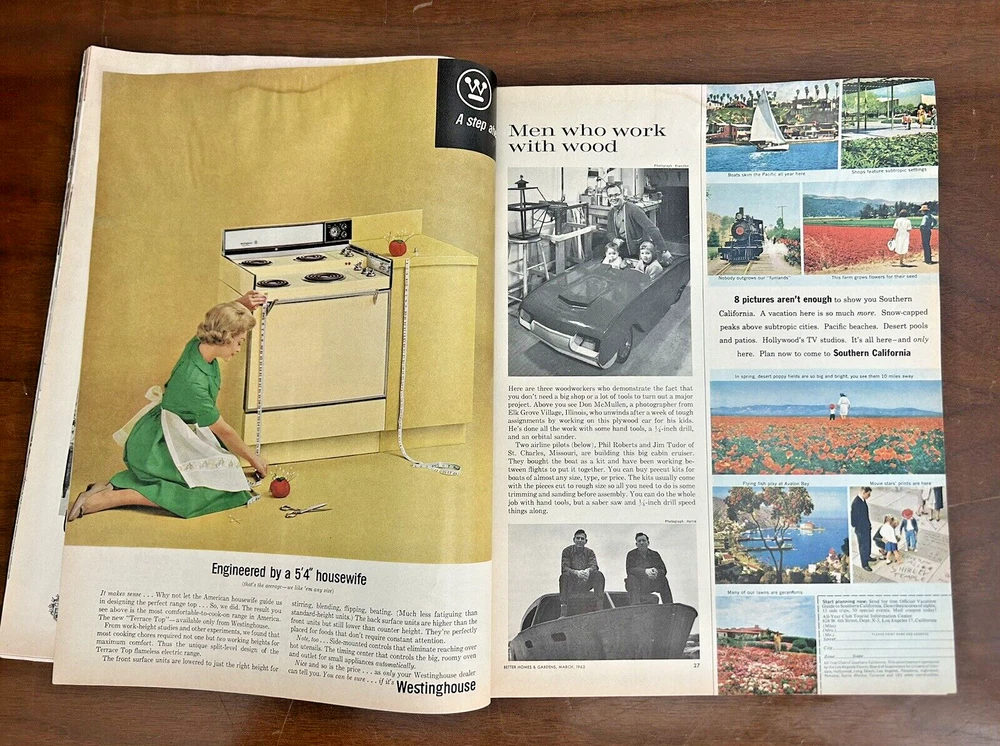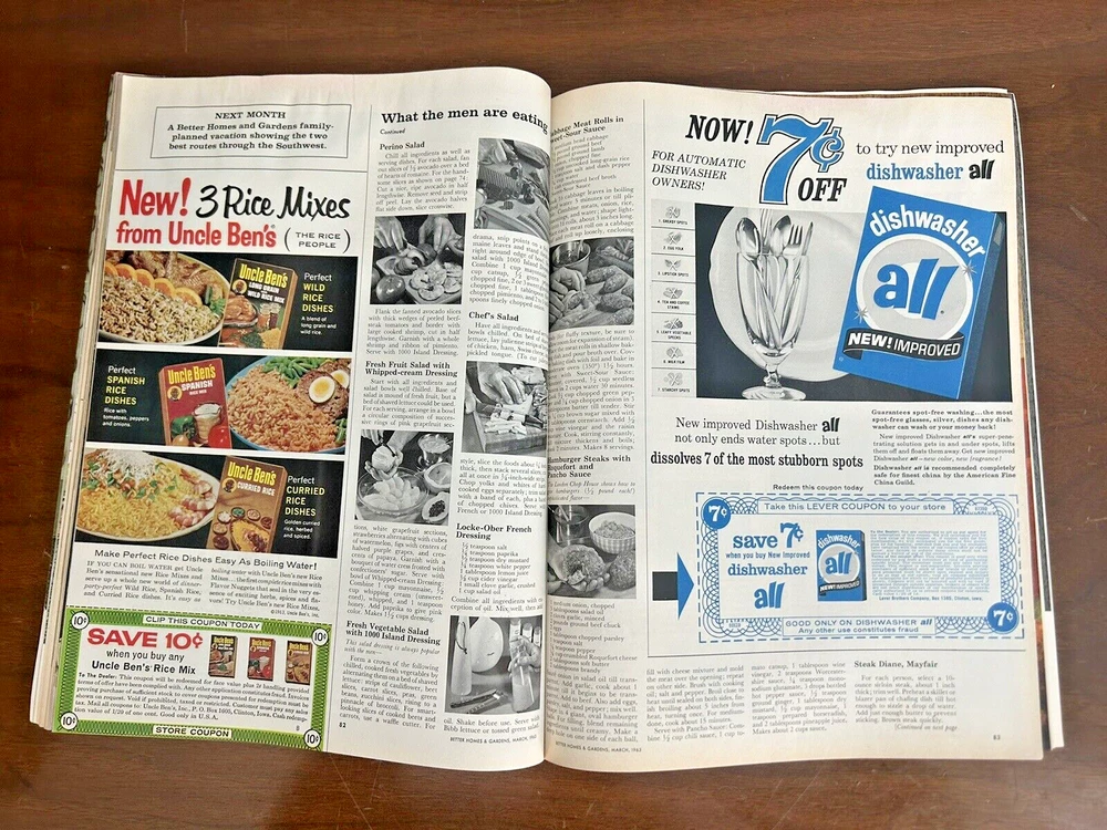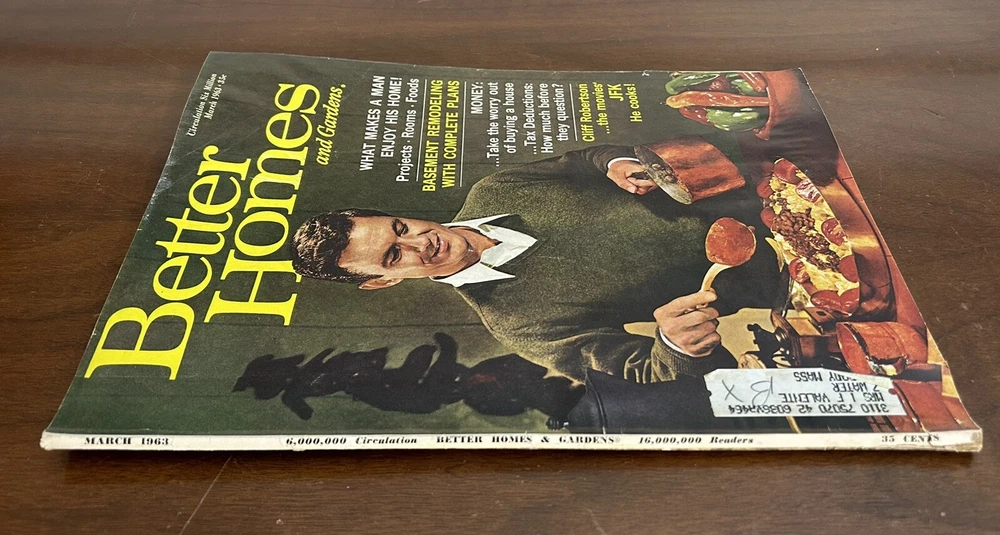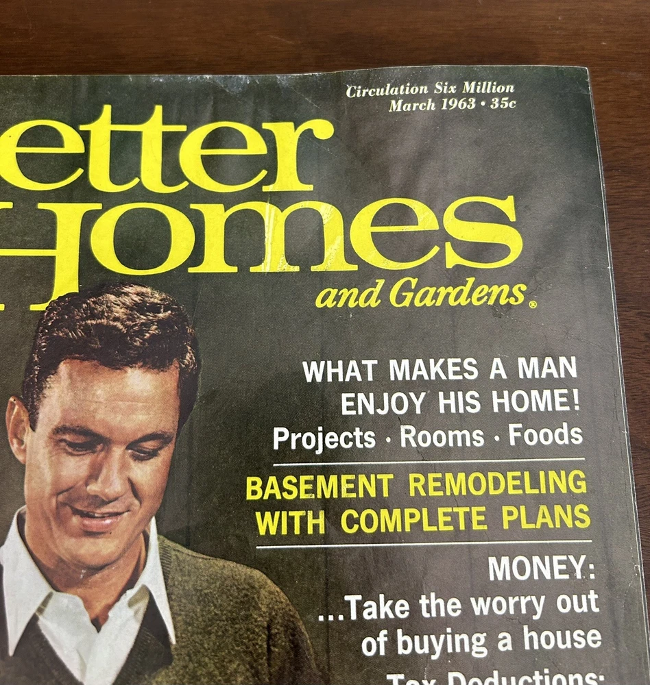 1963 March Better Homes & Gardens Magazine Vintage Ads Cliff Robertson in vintage condition. NOTE the spine has some wear, small mark on back, and there is a water mark along the top of most pages. Has some great vintage ads. See photos & message with questions.