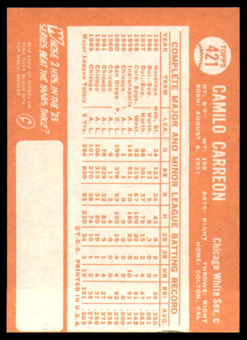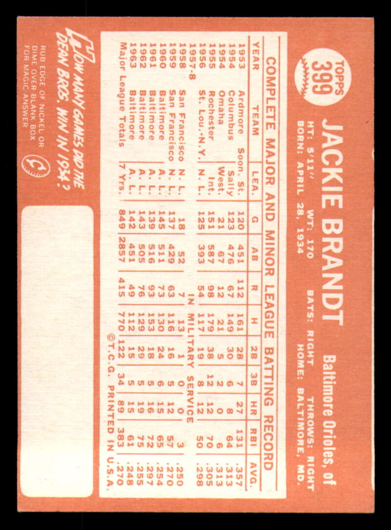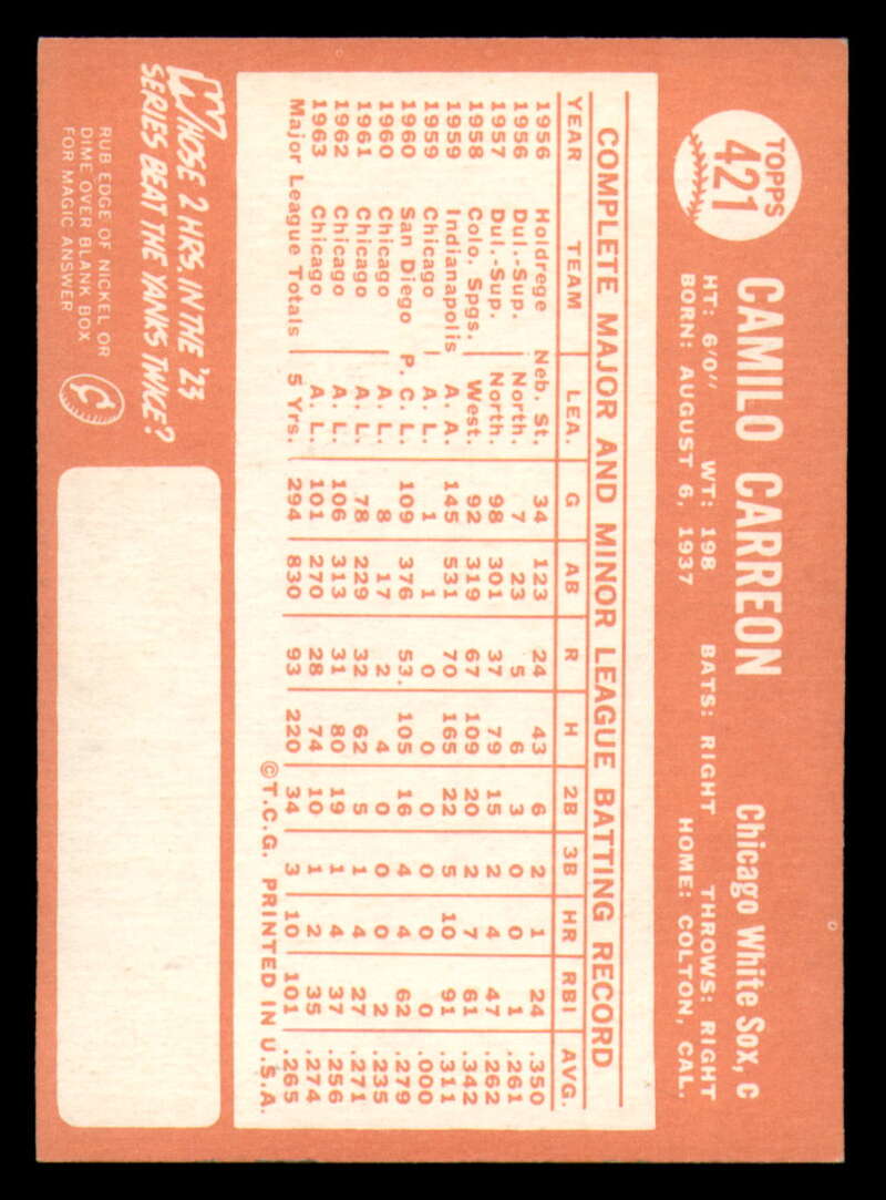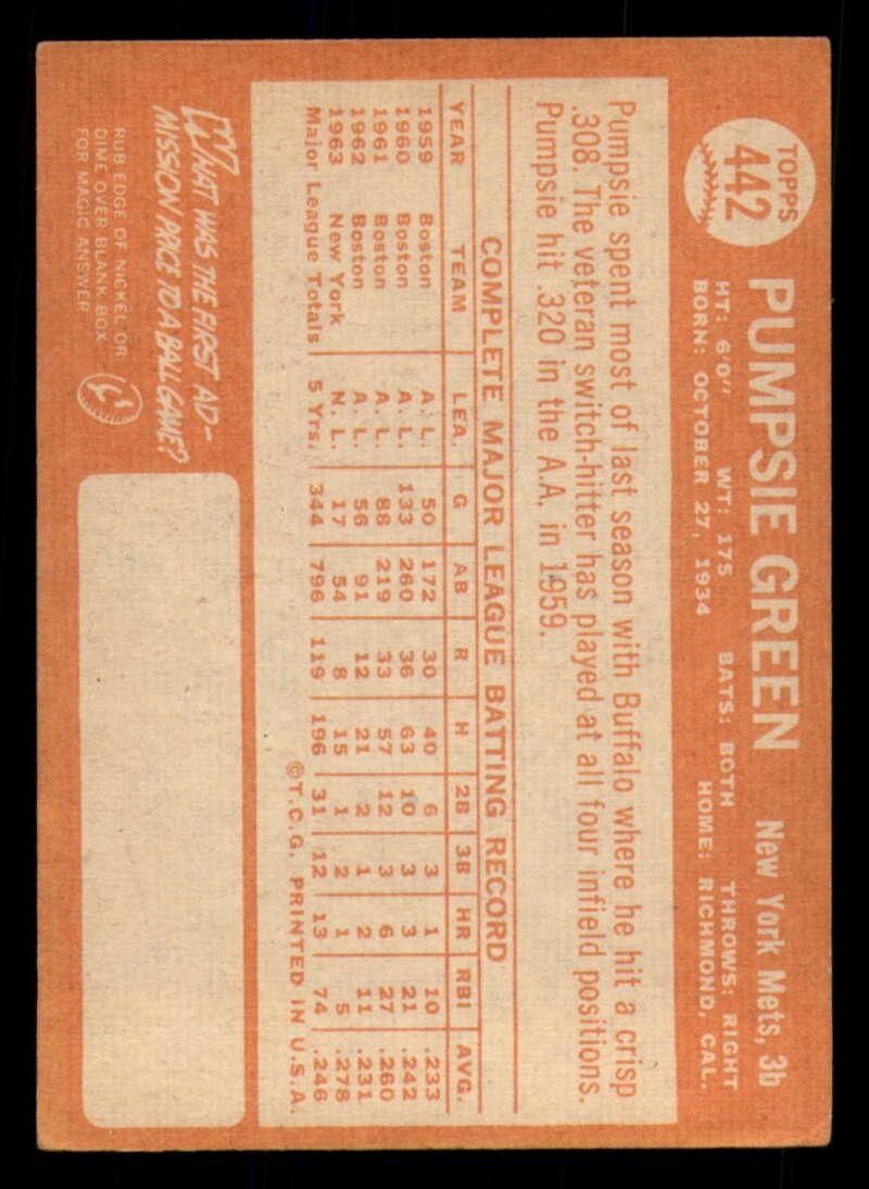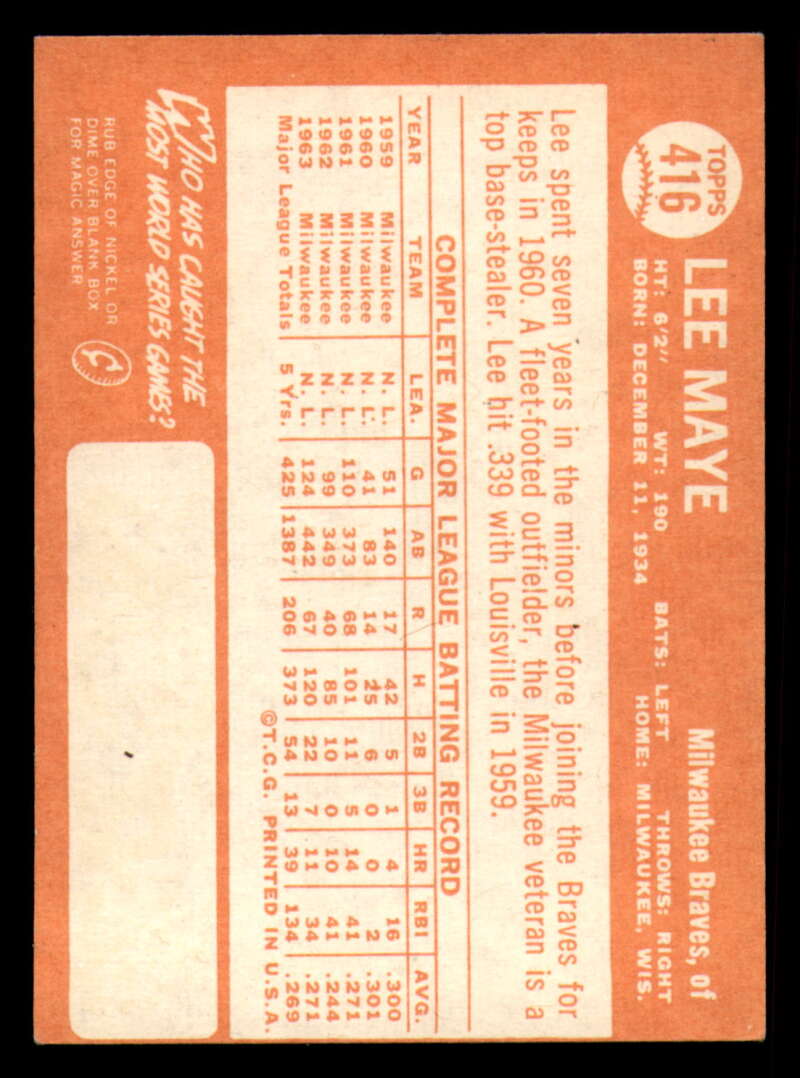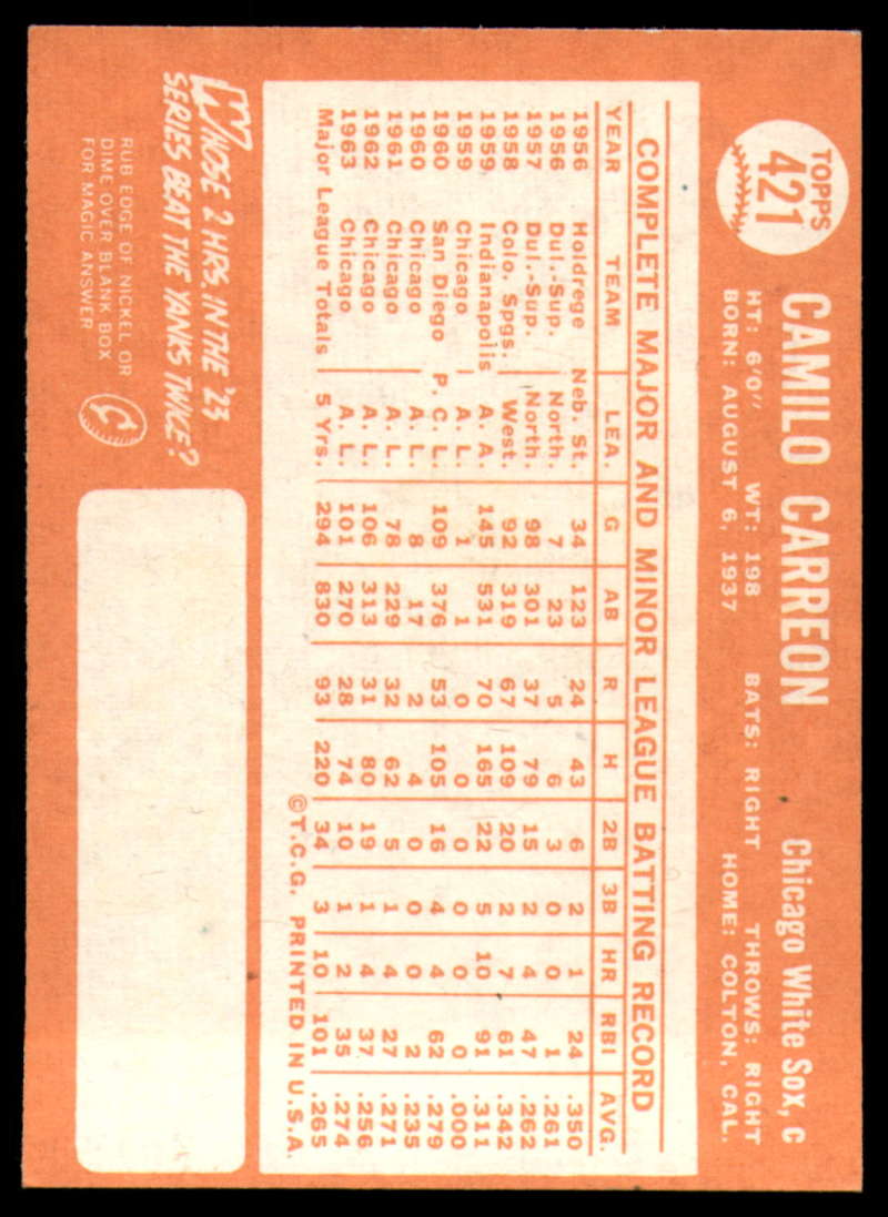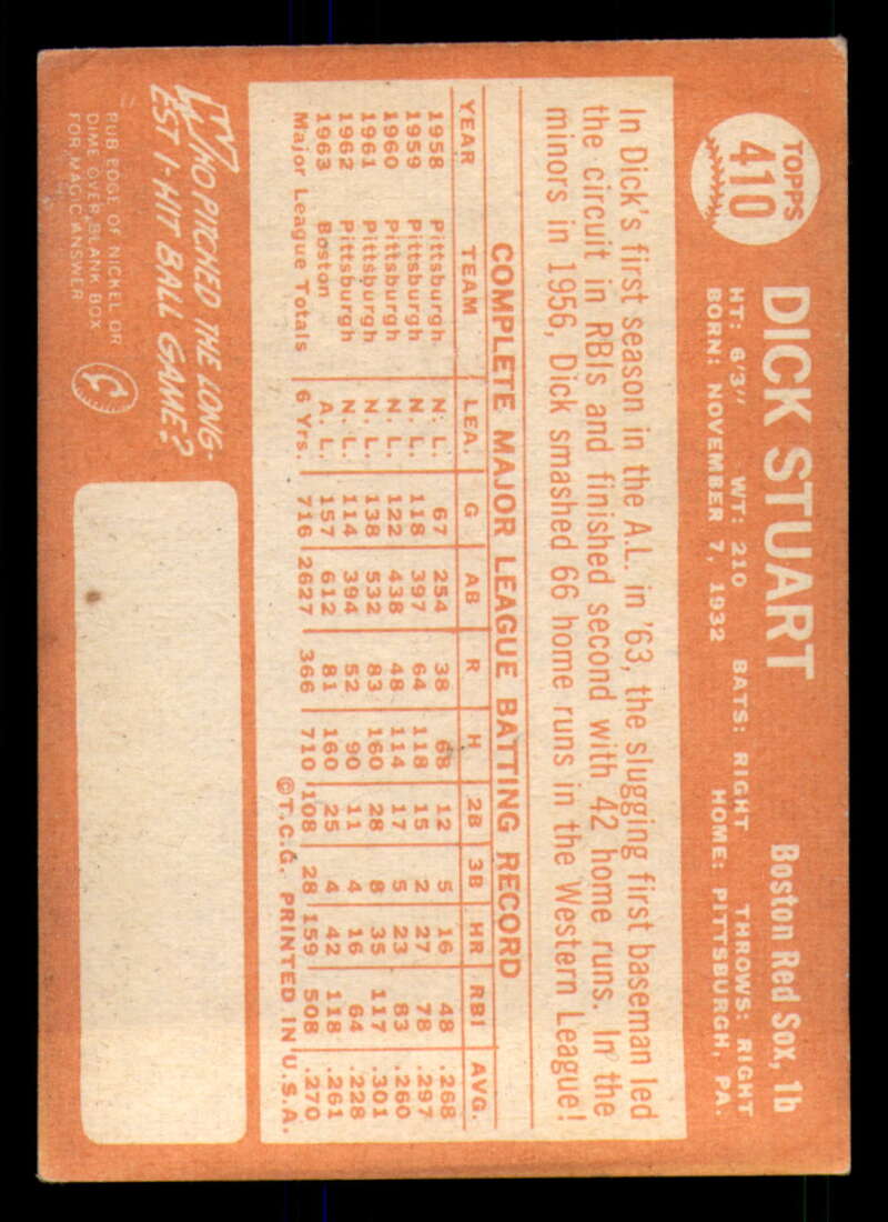 ALL MARTY'S STUFF The card in the scan is the card for sale. Each card has a high quality front and back scan of the item that you will receive. Please check the front and back pictures before buying. For combined shipping, please select all the cards that you would like from all of our many listings and have them in your shopping cart. We have a base shipping charge plus $0.05 for each additional card. Once you have made your selections, go to checkout and make one payment for the entire purchase. Multiple payments will result in multiple shipping charges. I f you have any questions, please ask . 1964 Topps Baseball #391 - #587 - Complete your set - Pick your card #391 Sam McDowell VG EX Very Good Exce Indians #391 Sam McDowell VGEX oc Indians #392 Jim Pagliaroni EX Excellent Pirates #392 Jim Pagliaroni EX++ Excellent++ Pirates #392 Jim Pagliaroni VG EX Very Good Exce Pirates (2)#392 Jim Pagliaroni VG EX Very Good Exce Pirate (3)#392 Jim Pagliaroni VG EX Very Good Exce Pirate #393 Casey Stengel Ed Kranepool NM Near Mint Mets #394 Bob Miller Poor Dodgers #394 Bob Miller VG Very Good Dodgers #394 Bob Miller VG EX Very Good Exce Dodgers #396 Dennis Bennett marked water damage Phillies #396 Dennis Bennett oc Phillies #397 Chuck Cottier VG EX Very Good Exce Senators #398 Mule Haas Dick Smith VG EX Very Good Exce Met (2)#398 Mule Haas Dick Smith VG EX Very Good Exce #399 Jackie Brandt EX++ Excellent++ Orioles #399 Jackie Brandt NM Near Mint Orioles #403 Reds Team EX Excellent Reds #404 Tony Martinez creased Indians #404 Tony Martinez EX++ Excellent++ Indians #404 Tony Martinez VG EX Very Good Exce Indians (2)#404 Tony Martinez VG EX Very Good Exce Indians #405 Ken McBride G VG Good Very Good Angels #405 Ken McBride NRMT-OC Angels #405 Ken McBride VG Very Good Angels #405 Ken McBride VG EX Very Good Exce Angels (2)#405 Ken McBride VG EX Very Good Exce Angels #406 Al Spangler VG EX Very Good Exce #410 Dick Stuart VG Very Good Red Sox #412 Ray Culp creased Phillies #412 Ray Culp stain creased Phillies #412 Ray Culp VG Very Good Phillies #413 Johnny Keane stain Cardinals #415 Tony Kubek miscut Yankees #416 Lee Maye print defect Braves #417 Don Cardwell NRMT-OC Pirates #419 Ken Harrelson miscut Athletics #420 Jim Maloney miscut Reds #420 Jim Maloney NRMT-OC Reds #420 Jim Maloney VG EX Very Good Exce Reds #421 Camilo Carreon EX Excellent White Sox #421 Camilo Carreon EX NM White Sox (2)#421 Camilo Carreon EX NM White Sox #421 Camilo Carreon EX++ Excellent++ White Sox #421 Camilo Carreon VG EX Very Good Exce White Sox #422 Jack Fisher EX NM Mets #422 Jack Fisher stain Mets #424 Dick Bertell EX++ Excellent++ Cubs #424 Dick Bertell VG EX Very Good Exce Cubs (2)#424 Dick Bertell VG EX Very Good Exce Cubs #424 Dick Bertell wax stain Cubs #426 Bob Rodgers VG EX Very Good Exce Angels #427 Don Rudolph EX Excellent Senators #427 Don Rudolph VG Very Good Senators #427 Don Rudolph VG EX Very Good Exce Senators (2)#427 Don Rudolph VG EX Very Good Exce Senators #428 Archie Skeen Pete Smith scuff Red Sox #428 Archie Skeen Pete Smith VG Very Good Red Sox #428 Archie Skeen Pete Smith VG EX Very Good Exce #430 Juan Pizarro creased White Sox #430 Juan Pizarro G VG Good Very Good White Sox #431 George Alusik creased Athletics #431 George Alusik EX NM Athletics #431 George Alusik NM Near Mint Athletics #431 George Alusik VG Very Good Athletics #432 Ruben Amaro VG EX Very Good Exce Phillies #434 Don Nottebart EX Excellent Houston Colt .45's (2)#434 Don Nottebart EX Excellent Houston Colt .4 (3)#434 Don Nottebart EX Excellent Houston Colt .4 #434 Don Nottebart EX NM Houston Colt .45's #434 Don Nottebart EX++ Excellent++ Houston Colt . #434 Don Nottebart NM Near Mint Houston Colt .45's #434 Don Nottebart VG EX Very Good Exce Houston Co (2)#434 Don Nottebart VG EX Very Good Exce Houston #436 Charlie Neal creased Reds (2)#436 Charlie Neal creased Reds #436 Charlie Neal NM Near Mint Reds #436 Charlie Neal stain Reds #437 Ed Bailey VG Very Good Braves #439 Harvey Haddix EX Excellent Orioles #440 Roberto Clemente VG EX Very Good Exce Pirates #441 Bob Duliba EX oc Angels #441 Bob Duliba NM Near Mint Angels #441 Bob Duliba NM+ Angels #441 Bob Duliba VG Very Good Angels #441 Bob Duliba VG EX Very Good Exce Angels #442 Pumpsie Green VG Very Good Mets #443 Chuck Dressen creased Tigers #443 Chuck Dressen VG Very Good Tigers #447 Ted Bowsfield Fair Athletics #447 Ted Bowsfield VG Very Good Athletics #448 Cookie Rojas EX Excellent Phillies #448 Cookie Rojas VG EX Very Good Exce Phillies #449 Deron Johnson VG EX Very Good Exce Reds #451 Joe Amalfitano EX Excellent Cubs #453 Frank Baumann VG EX Very Good Exce White Sox #454 Tommie Aaron print defect Braves #456 Wes Parker John Werhas VG Very Good Dodgers #457 Jesse Gonder marked Mets #457 Jesse Gonder VG Very Good Mets (2)#457 Jesse Gonder VG Very Good Mets #457 Jesse Gonder VG EX Very Good Exce Mets #458 Ralph Terry VG EX Very Good Exce Yankees #459 Pete Charton Dalton Jones VG EX Very Good Exc (2)#459 Pete Charton Dalton Jones VG EX Very Good (3)#459 Pete Charton Dalton Jones VG EX Very Good #46 Ed Brinkman scratched stain Senators #462 Birdie Tebbetts VG EX Very Good Exce Indians (2)#462 Birdie Tebbetts VG EX Very Good Exce India #464 Dallas Green VG EX Very Good Exce Phillies (2)#464 Dallas Green VG EX Very Good Exce Phillies #466 Dick Green Aurelio Monteagudo EX Excellent At #466 Dick Green Aurelio Monteagudo VG EX Very Good #467 Bob Aspromonte VG Very Good #469 Fred Norman Sterling Slaughter EX+ Cubs #469 Fred Norman Sterling Slaughter VG EX Very Goo (2)#469 Fred Norman Sterling Slaughter VG EX Very #472 Vern Law miscut Pirates #473 Orioles Team paper loss creased Orioles #474 Larry Sherry scratched scuff Tigers #475 Ed Charles VG EX Very Good Exce Athletics #476 Rico Carty Dick Kelley miscut Braves #476 Rico Carty Dick Kelley VG EX Very Good Exce B #478 Dick Howser creased Indians #478 Dick Howser VG EX Very Good Exce Indians #479 Dave Bakenhaster Johnny Lewis miscut Cardinal (2