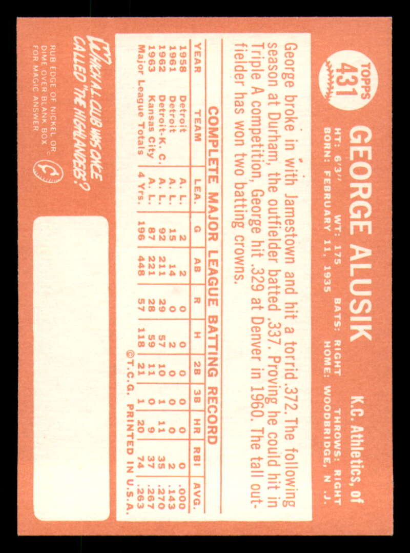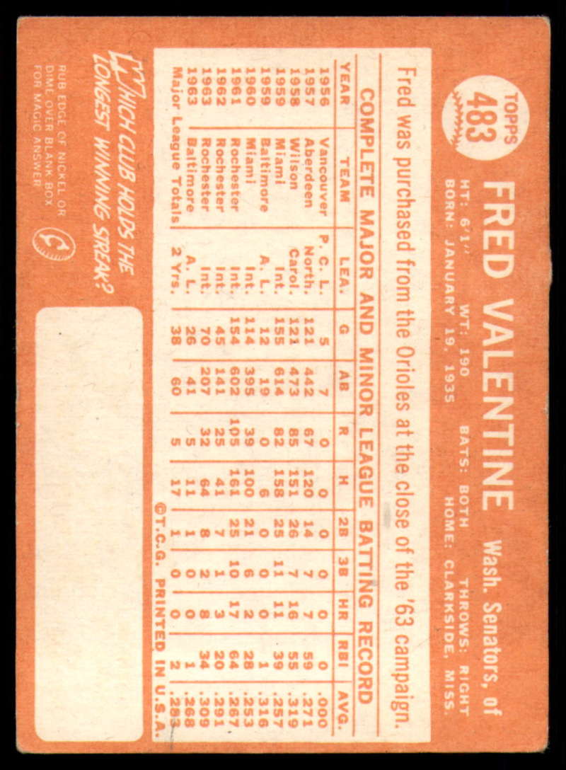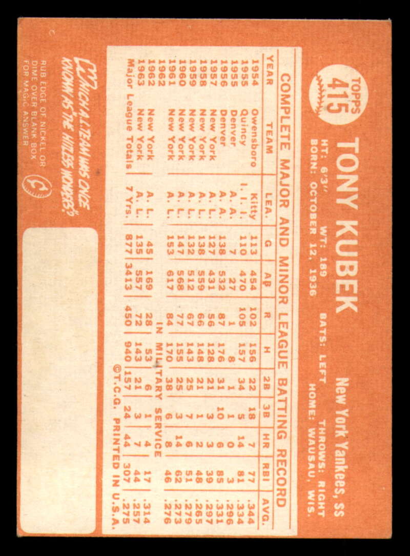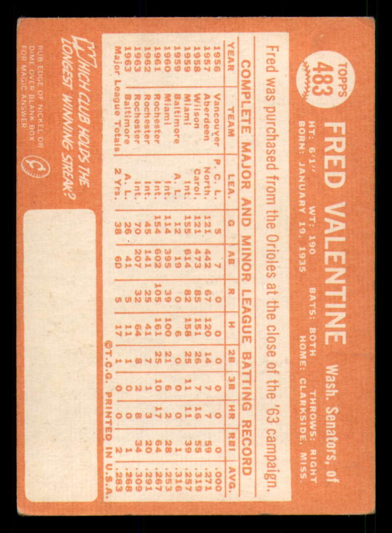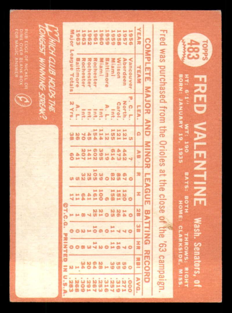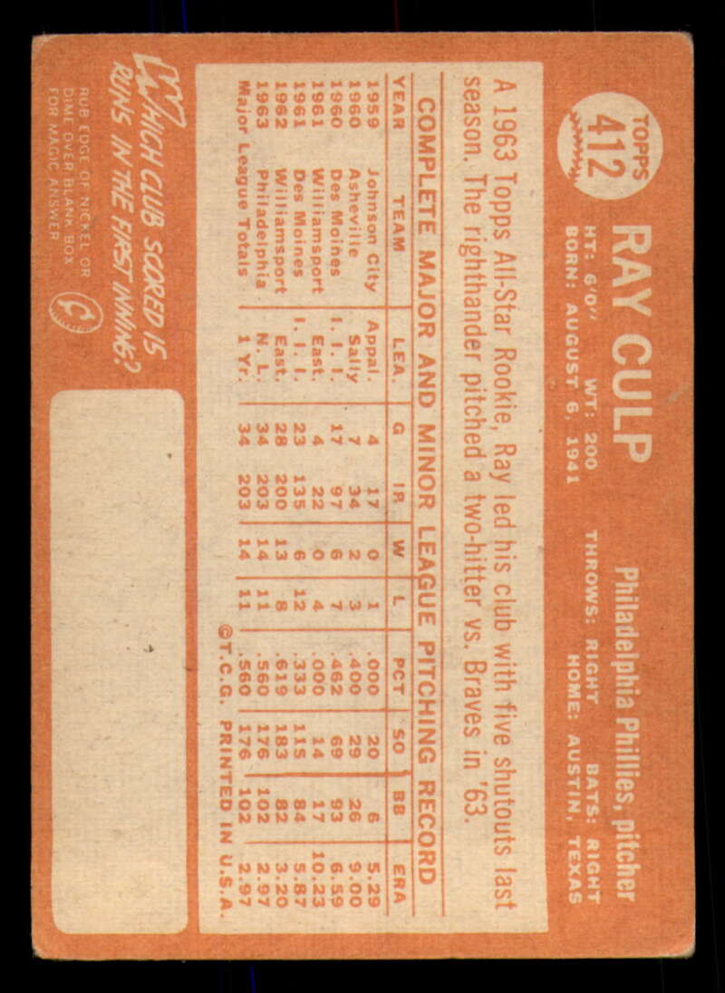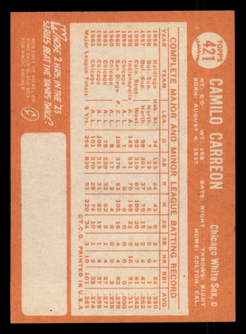 ALL MARTY'S STUFF The card in the scan is the card for sale. Each card has a high quality front and back scan of the item that you will receive. Please check the front and back pictures before buying. For combined shipping, please select all the cards that you would like from all of our many listings and have them in your shopping cart. We have a base shipping charge plus $0.05 for each additional card. Once you have made your selections, go to checkout and make one payment for the entire purchase. Multiple payments will result in multiple shipping charges. I f you have any questions, please ask . 1964 Topps Baseball #391 - #587 - Complete your set - Pick your card #391 Sam McDowell VG EX Very Good Exce Indians #391 Sam McDowell VGEX oc Indians #392 Jim Pagliaroni EX Excellent Pirates #392 Jim Pagliaroni EX++ Excellent++ Pirates #392 Jim Pagliaroni VG EX Very Good Exce Pirates (2)#392 Jim Pagliaroni VG EX Very Good Exce Pirate (3)#392 Jim Pagliaroni VG EX Very Good Exce Pirate #393 Casey Stengel Ed Kranepool NM Near Mint Mets #394 Bob Miller Poor Dodgers #394 Bob Miller VG Very Good Dodgers #394 Bob Miller VG EX Very Good Exce Dodgers #396 Dennis Bennett marked water damage Phillies #396 Dennis Bennett oc Phillies #397 Chuck Cottier VG EX Very Good Exce Senators #398 Mule Haas Dick Smith VG EX Very Good Exce Met (2)#398 Mule Haas Dick Smith VG EX Very Good Exce #399 Jackie Brandt EX++ Excellent++ Orioles #399 Jackie Brandt NM Near Mint Orioles #403 Reds Team EX Excellent Reds #404 Tony Martinez creased Indians #404 Tony Martinez EX++ Excellent++ Indians #404 Tony Martinez VG EX Very Good Exce Indians (2)#404 Tony Martinez VG EX Very Good Exce Indians #405 Ken McBride G VG Good Very Good Angels #405 Ken McBride NRMT-OC Angels #405 Ken McBride VG Very Good Angels #405 Ken McBride VG EX Very Good Exce Angels (2)#405 Ken McBride VG EX Very Good Exce Angels #406 Al Spangler VG EX Very Good Exce #410 Dick Stuart VG Very Good Red Sox #412 Ray Culp creased Phillies #412 Ray Culp stain creased Phillies #412 Ray Culp VG Very Good Phillies #413 Johnny Keane stain Cardinals #415 Tony Kubek miscut Yankees #416 Lee Maye print defect Braves #417 Don Cardwell NRMT-OC Pirates #419 Ken Harrelson miscut Athletics #420 Jim Maloney miscut Reds #420 Jim Maloney NRMT-OC Reds #420 Jim Maloney VG EX Very Good Exce Reds #421 Camilo Carreon EX Excellent White Sox #421 Camilo Carreon EX NM White Sox (2)#421 Camilo Carreon EX NM White Sox #421 Camilo Carreon EX++ Excellent++ White Sox #421 Camilo Carreon VG EX Very Good Exce White Sox #422 Jack Fisher EX NM Mets #422 Jack Fisher stain Mets #424 Dick Bertell EX++ Excellent++ Cubs #424 Dick Bertell VG EX Very Good Exce Cubs (2)#424 Dick Bertell VG EX Very Good Exce Cubs #424 Dick Bertell wax stain Cubs #426 Bob Rodgers VG EX Very Good Exce Angels #427 Don Rudolph EX Excellent Senators #427 Don Rudolph VG Very Good Senators #427 Don Rudolph VG EX Very Good Exce Senators (2)#427 Don Rudolph VG EX Very Good Exce Senators #428 Archie Skeen Pete Smith scuff Red Sox #428 Archie Skeen Pete Smith VG Very Good Red Sox #428 Archie Skeen Pete Smith VG EX Very Good Exce #430 Juan Pizarro creased White Sox #430 Juan Pizarro G VG Good Very Good White Sox #431 George Alusik creased Athletics #431 George Alusik EX NM Athletics #431 George Alusik NM Near Mint Athletics #431 George Alusik VG Very Good Athletics #432 Ruben Amaro VG EX Very Good Exce Phillies #434 Don Nottebart EX Excellent Houston Colt .45's (2)#434 Don Nottebart EX Excellent Houston Colt .4 (3)#434 Don Nottebart EX Excellent Houston Colt .4 #434 Don Nottebart EX NM Houston Colt .45's #434 Don Nottebart EX++ Excellent++ Houston Colt . #434 Don Nottebart NM Near Mint Houston Colt .45's #434 Don Nottebart VG EX Very Good Exce Houston Co (2)#434 Don Nottebart VG EX Very Good Exce Houston #436 Charlie Neal creased Reds (2)#436 Charlie Neal creased Reds #436 Charlie Neal NM Near Mint Reds #436 Charlie Neal stain Reds #437 Ed Bailey VG Very Good Braves #439 Harvey Haddix EX Excellent Orioles #440 Roberto Clemente VG EX Very Good Exce Pirates #441 Bob Duliba EX oc Angels #441 Bob Duliba NM Near Mint Angels #441 Bob Duliba NM+ Angels #441 Bob Duliba VG Very Good Angels #441 Bob Duliba VG EX Very Good Exce Angels #442 Pumpsie Green VG Very Good Mets #443 Chuck Dressen creased Tigers #443 Chuck Dressen VG Very Good Tigers #447 Ted Bowsfield Fair Athletics #447 Ted Bowsfield VG Very Good Athletics #448 Cookie Rojas EX Excellent Phillies #448 Cookie Rojas VG EX Very Good Exce Phillies #449 Deron Johnson VG EX Very Good Exce Reds #451 Joe Amalfitano EX Excellent Cubs #453 Frank Baumann VG EX Very Good Exce White Sox #454 Tommie Aaron print defect Braves #456 Wes Parker John Werhas VG Very Good Dodgers #457 Jesse Gonder marked Mets #457 Jesse Gonder VG Very Good Mets (2)#457 Jesse Gonder VG Very Good Mets #457 Jesse Gonder VG EX Very Good Exce Mets #458 Ralph Terry VG EX Very Good Exce Yankees #459 Pete Charton Dalton Jones VG EX Very Good Exc (2)#459 Pete Charton Dalton Jones VG EX Very Good (3)#459 Pete Charton Dalton Jones VG EX Very Good #46 Ed Brinkman scratched stain Senators #462 Birdie Tebbetts VG EX Very Good Exce Indians (2)#462 Birdie Tebbetts VG EX Very Good Exce India #464 Dallas Green VG EX Very Good Exce Phillies (2)#464 Dallas Green VG EX Very Good Exce Phillies #466 Dick Green Aurelio Monteagudo EX Excellent At #466 Dick Green Aurelio Monteagudo VG EX Very Good #467 Bob Aspromonte VG Very Good #469 Fred Norman Sterling Slaughter EX+ Cubs #469 Fred Norman Sterling Slaughter VG EX Very Goo (2)#469 Fred Norman Sterling Slaughter VG EX Very #472 Vern Law miscut Pirates #473 Orioles Team paper loss creased Orioles #474 Larry Sherry scratched scuff Tigers #475 Ed Charles VG EX Very Good Exce Athletics #476 Rico Carty Dick Kelley miscut Braves #476 Rico Carty Dick Kelley VG EX Very Good Exce B #478 Dick Howser creased Indians #478 Dick Howser VG EX Very Good Exce Indians #479 Dave Bakenhaster Johnny Lewis miscut Cardinal (2