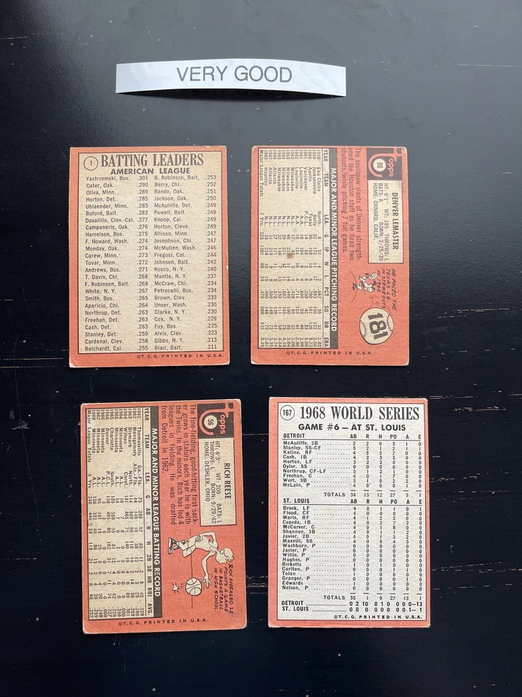 These 1969 Topps baseball cards are an awesome way to complete your set! The selection is great, and the cards arrive in good condition (ranging from poor to near-mint as described). The seller offers fair pricing, discounts for bulk orders, and ships securely with tracking. Perfect for collectors filling gaps in their vintage sets—highly recommend!