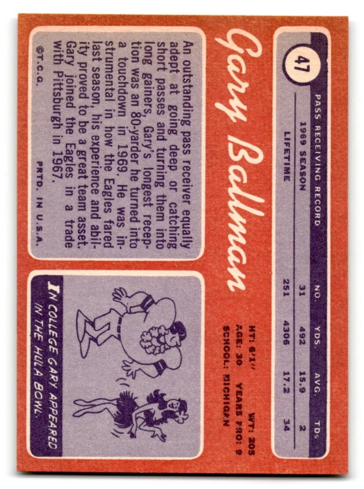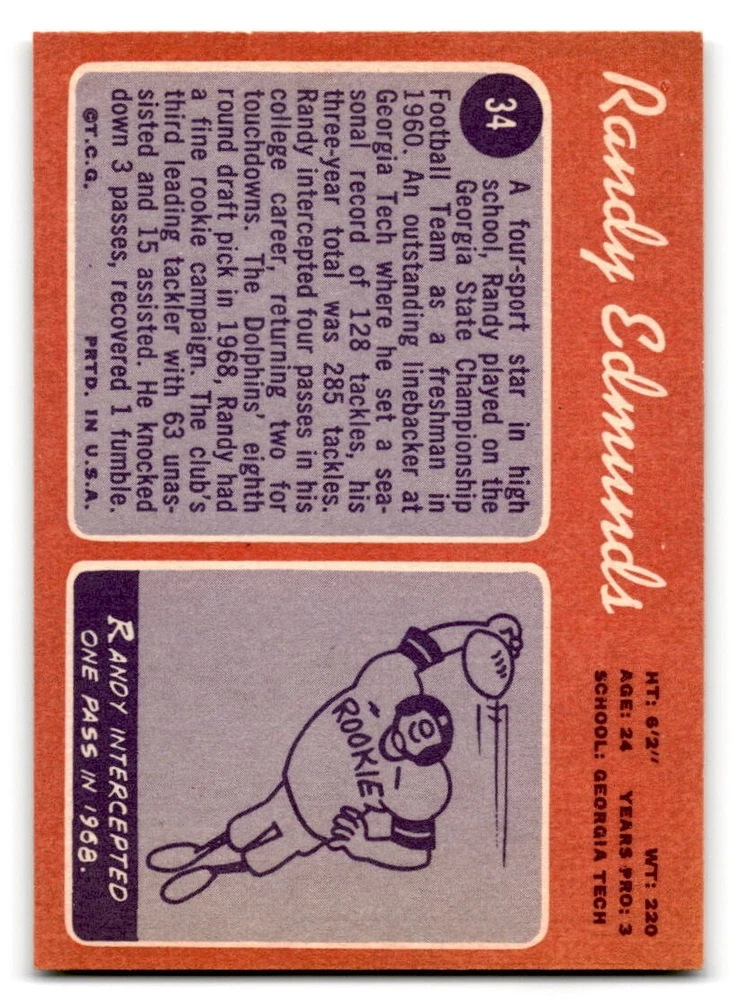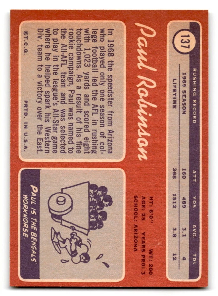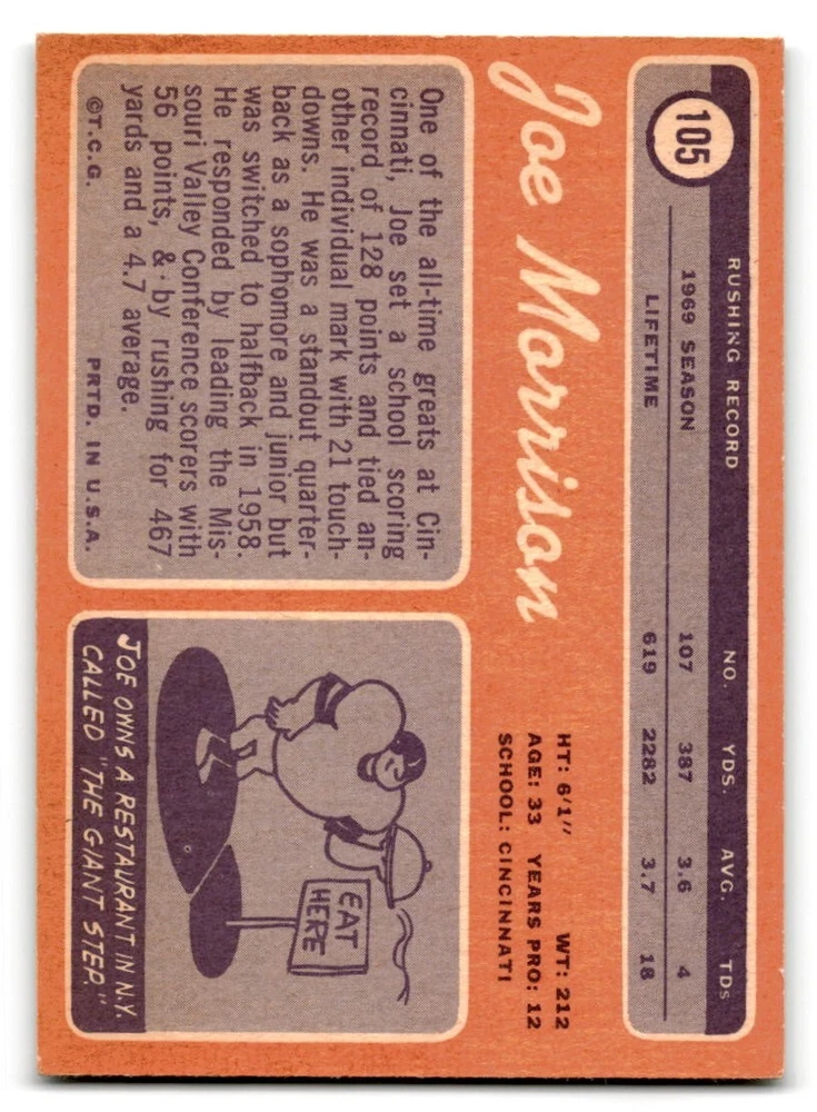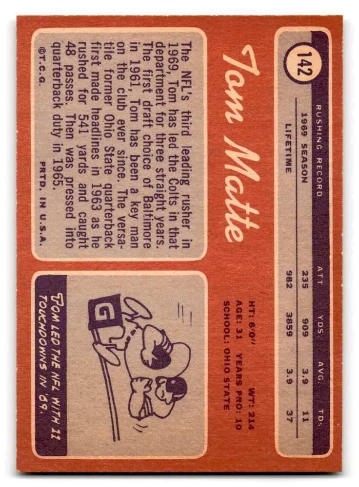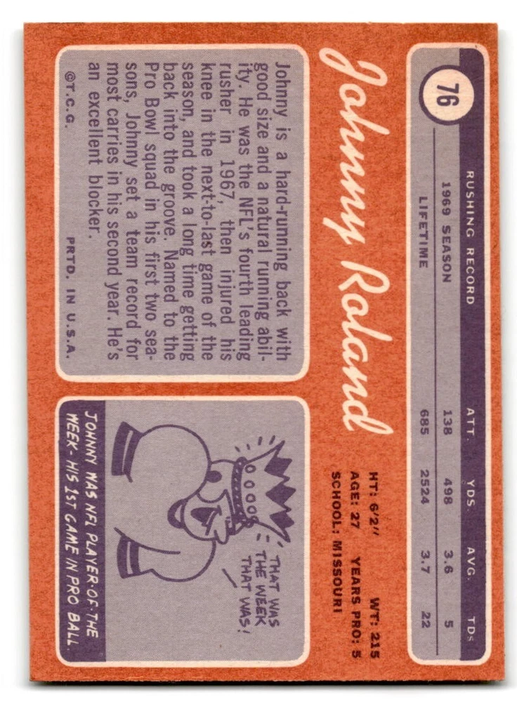 Hello, This listing is for single cards from the 1970 Topps Football Set. The cards are in EX to EX/MT unless there is a grade next to the name. I also have noted if the card has wax on the card (front of the card, none of the cards have wax stains on the back). I have generically graded all wax cards as a VG. If there is a card in VG with no notes saying there is wax, then there is damage to the card. The card in the picture is the card you will receive! Grading: NM = 7 EX/MT = 6 EX = 5 VG/EX = 4 VG = 3 G = 2 Shipping: 1st card costs $1.00 using eBay Standard Envelope and .50cents for each additional card. If you buy 7 cards or more, the shipping cost is $4 for Ground Advantage (just check the boxes for Ground Advantage in the check out and no matter how many cards you are buying the cost will be $4 max! When buying 7 cards, they will be shipped in a padded envelope or box. (Ground Advantage or Priority Mail for larger orders) The last thing I am trying to do is make a profit off of Shipping. When using eBay Standard Envelope, I will put up to 2 cards in 1 top loader to ship. Unfortunately that is the max I can put in a top loader because of the thickness of these cards. I can fit 3 top loaders in one started letter sized envelope. If you have any questions about shipping please don't hesitate to ask.