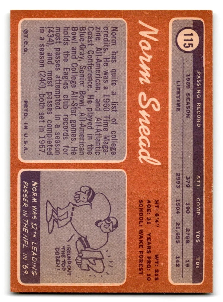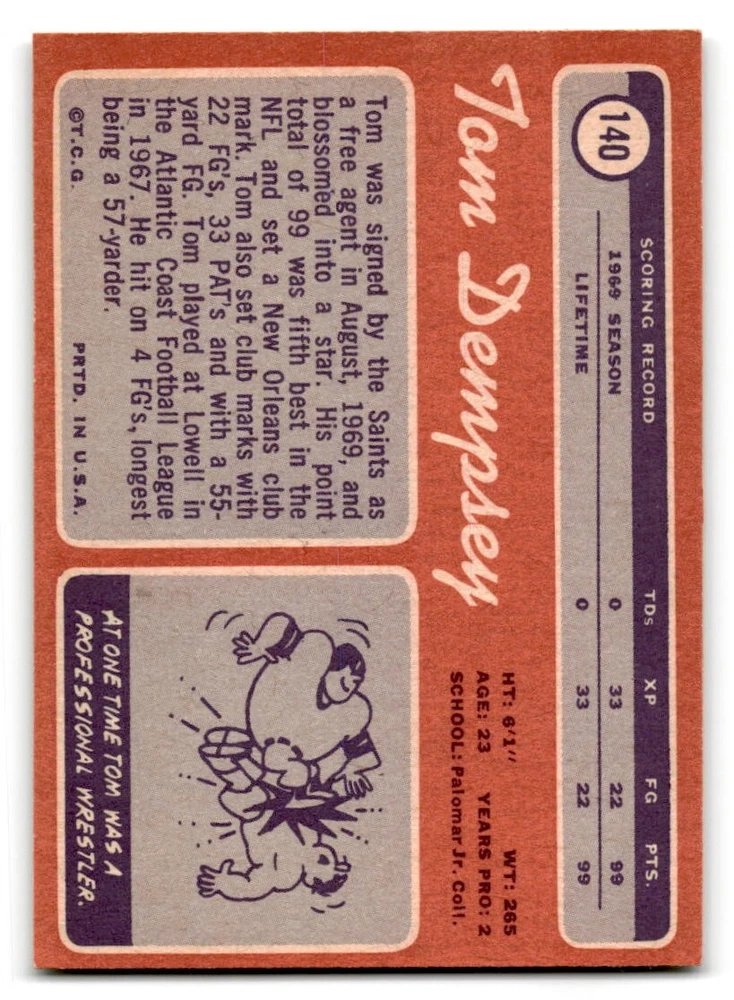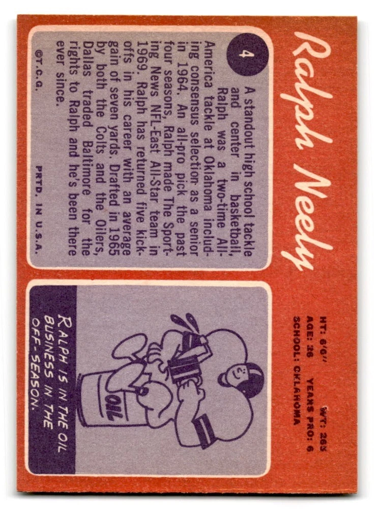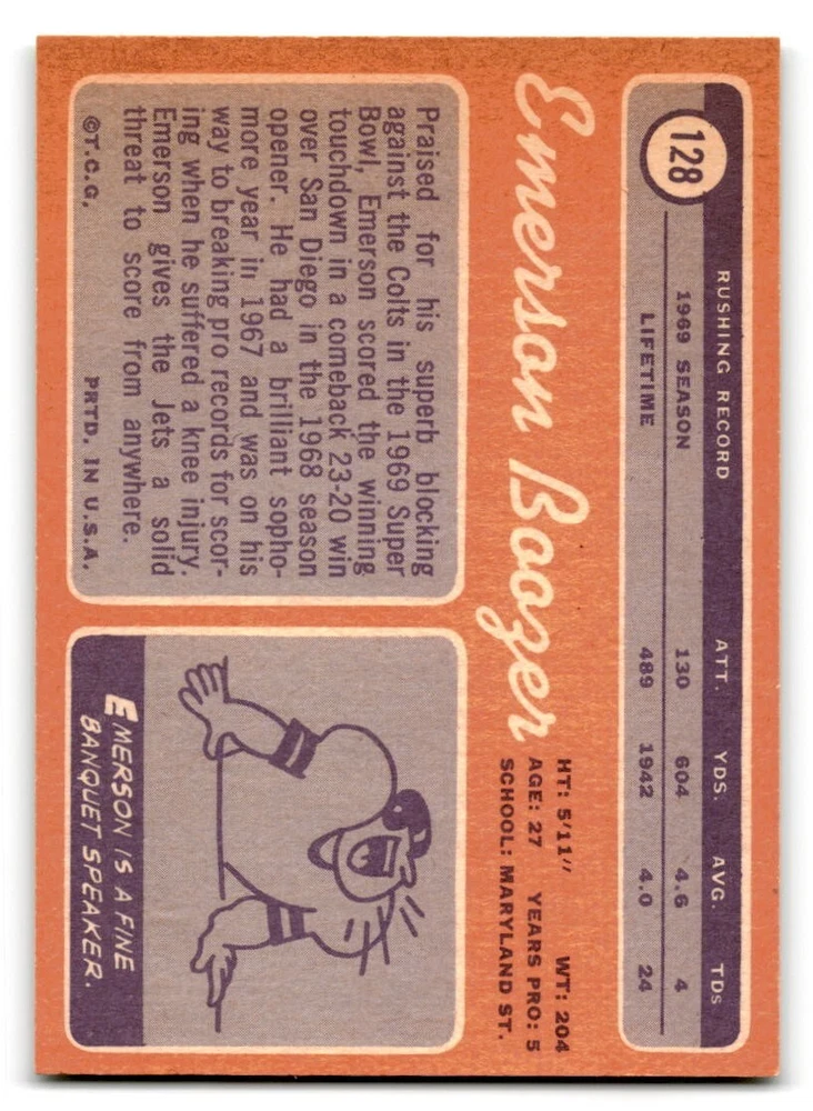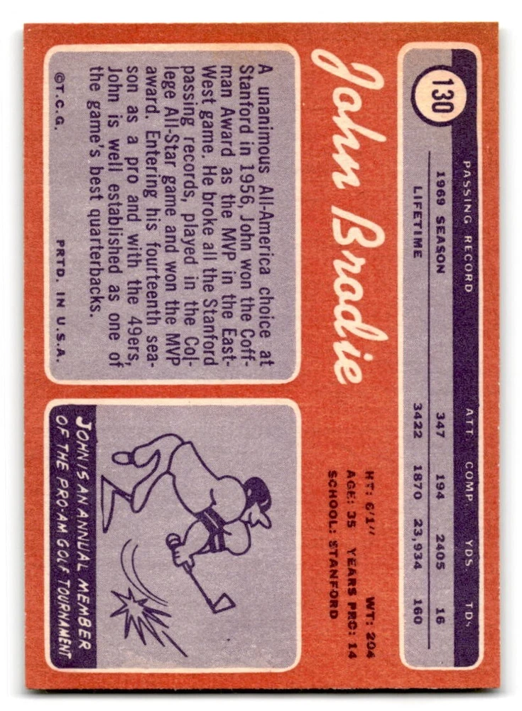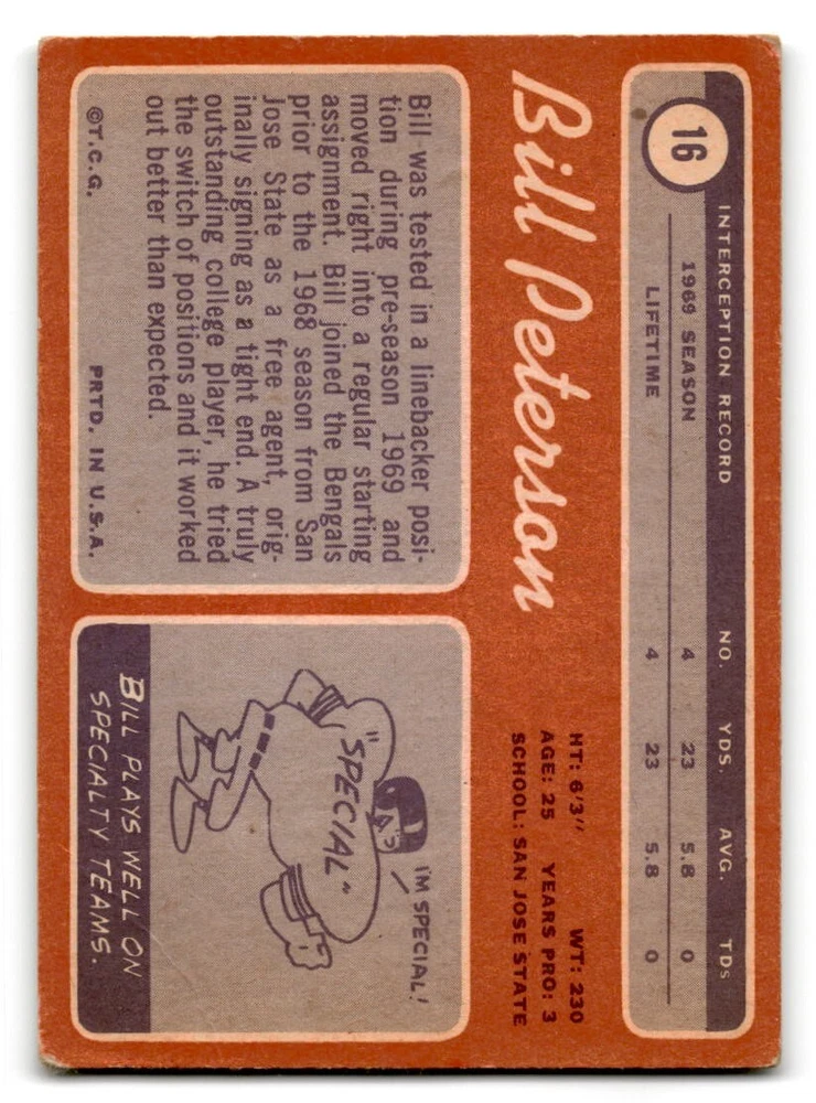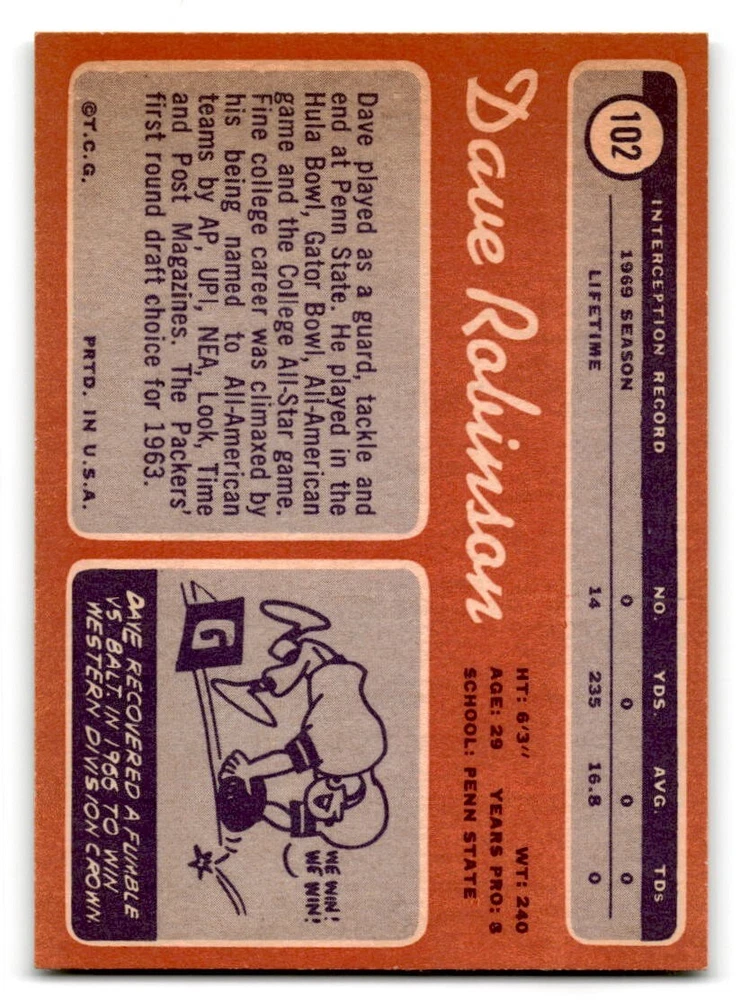 Hello, This listing is for single cards from the 1970 Topps Football Set. The cards are in EX to EX/MT unless there is a grade next to the name. I also have noted if the card has wax on the card (front of the card, none of the cards have wax stains on the back). I have generically graded all wax cards as a VG. If there is a card in VG with no notes saying there is wax, then there is damage to the card. The card in the picture is the card you will receive! Grading: NM = 7 EX/MT = 6 EX = 5 VG/EX = 4 VG = 3 G = 2 Shipping: 1st card costs $1.00 using eBay Standard Envelope and .50cents for each additional card. If you buy 7 cards or more, the shipping cost is $4 for Ground Advantage (just check the boxes for Ground Advantage in the check out and no matter how many cards you are buying the cost will be $4 max! When buying 7 cards, they will be shipped in a padded envelope or box. (Ground Advantage or Priority Mail for larger orders) The last thing I am trying to do is make a profit off of Shipping. When using eBay Standard Envelope, I will put up to 2 cards in 1 top loader to ship. Unfortunately that is the max I can put in a top loader because of the thickness of these cards. I can fit 3 top loaders in one started letter sized envelope. If you have any questions about shipping please don't hesitate to ask.