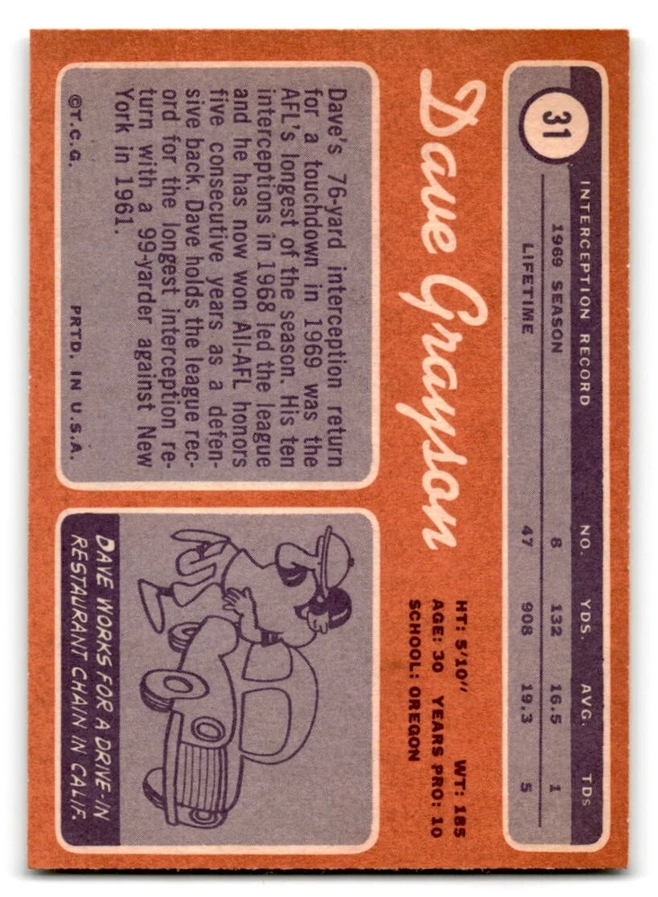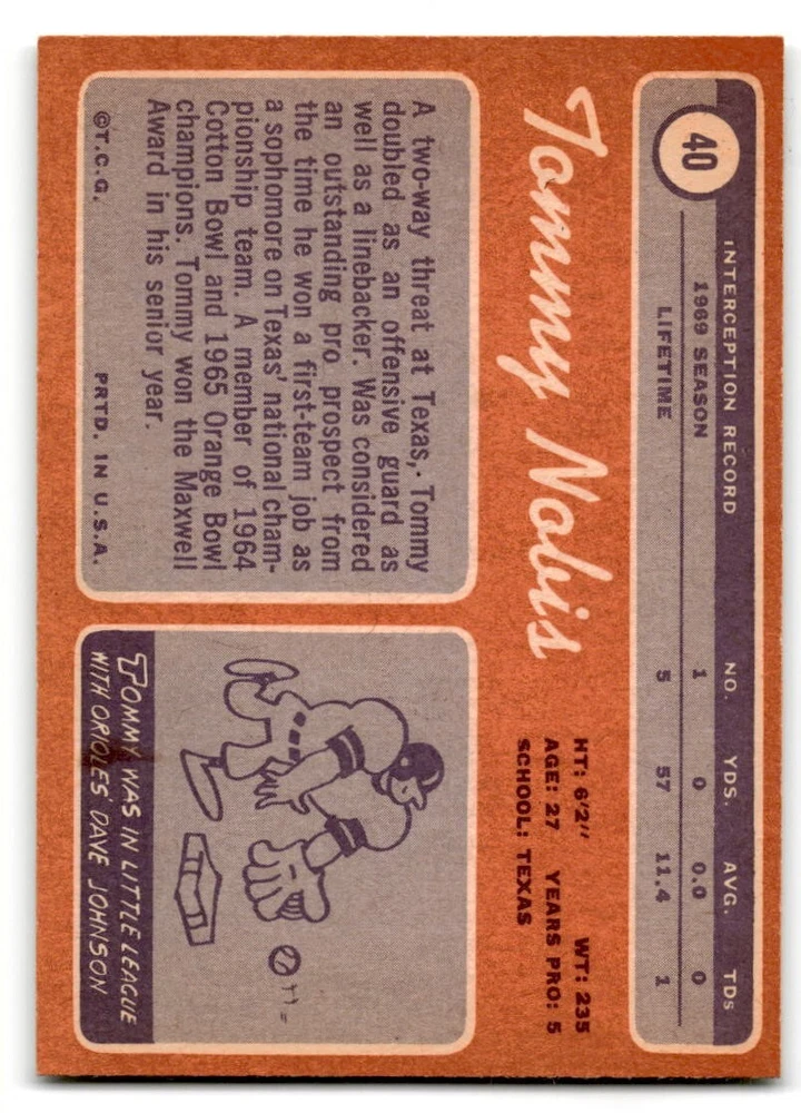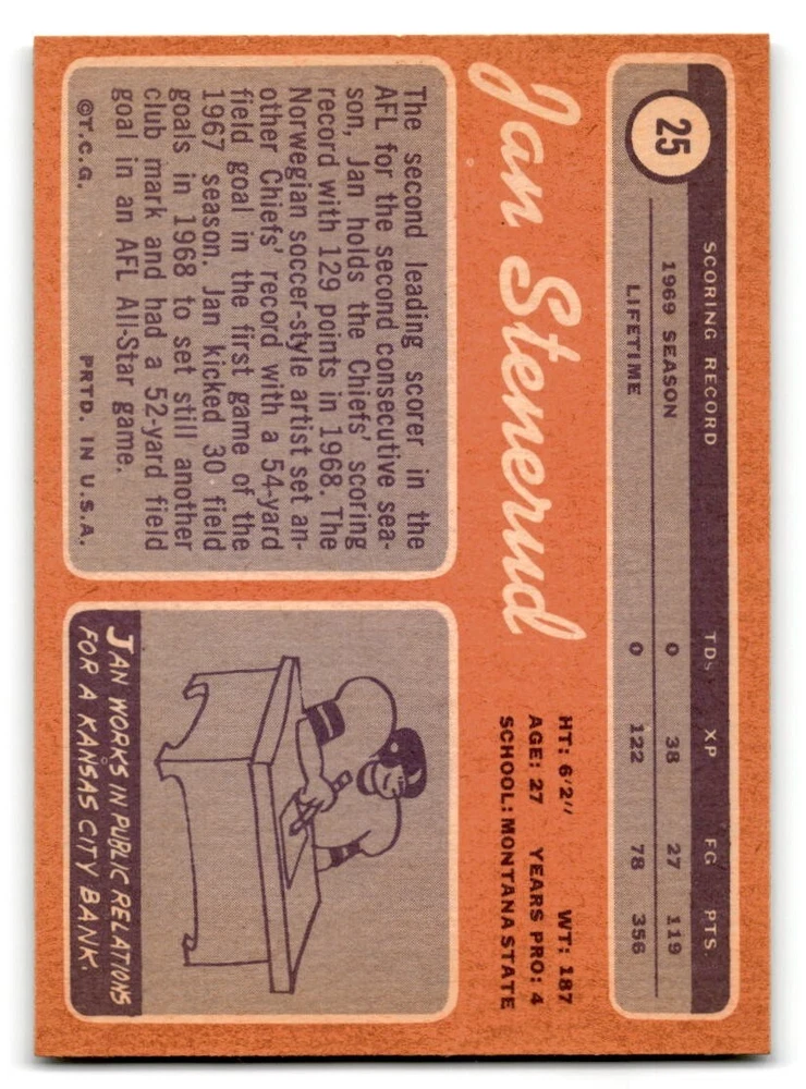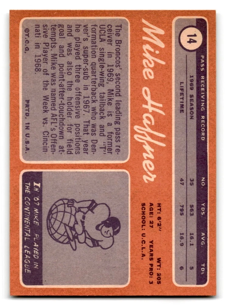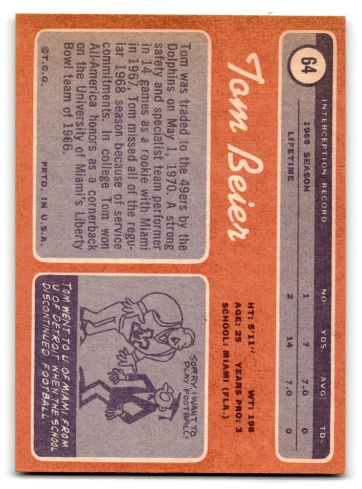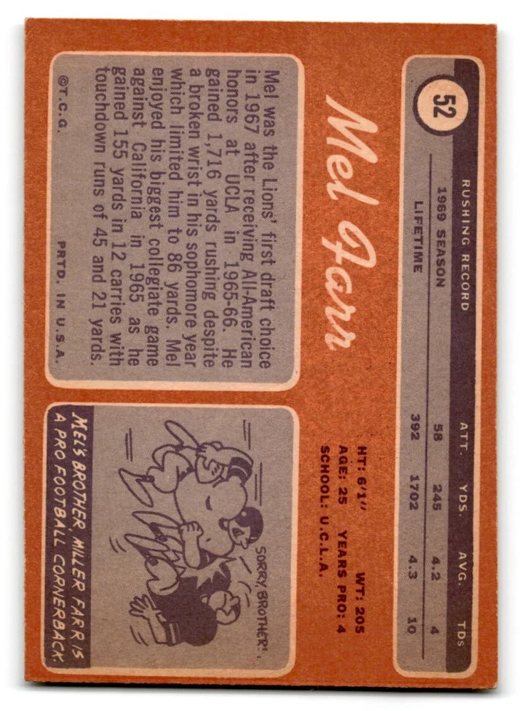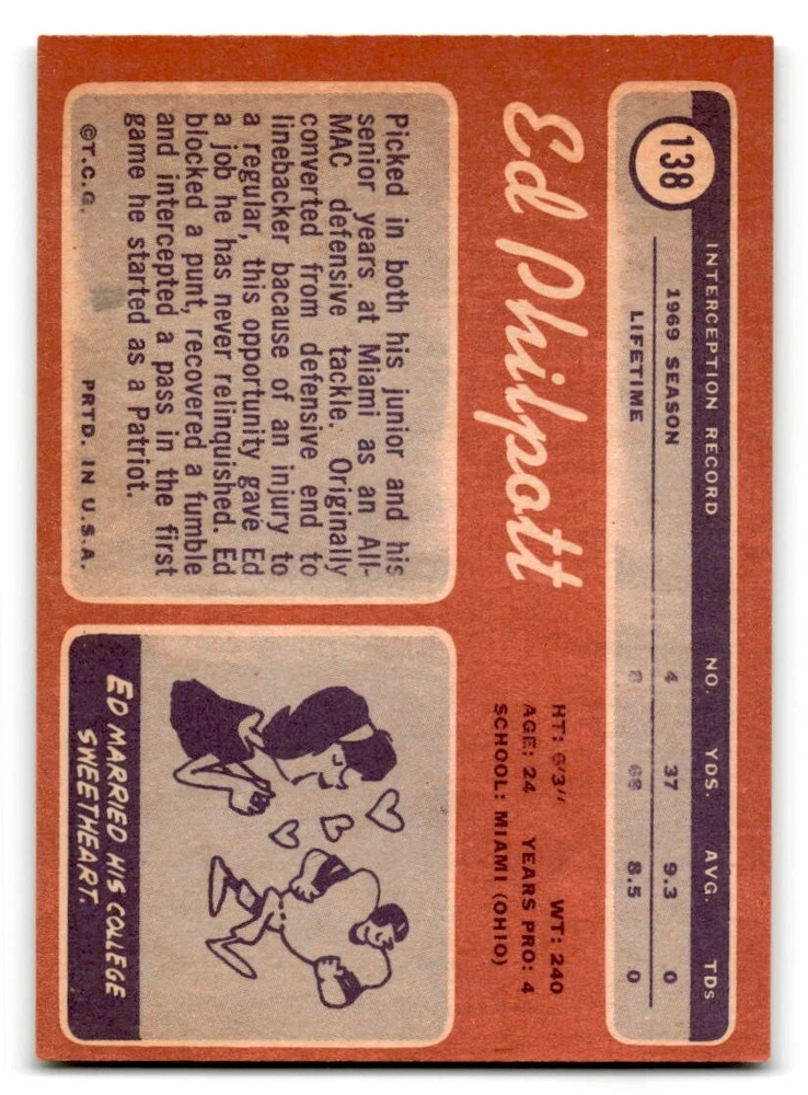 Hello, This listing is for single cards from the 1970 Topps Football Set. The cards are in EX to EX/MT unless there is a grade next to the name. I also have noted if the card has wax on the card (front of the card, none of the cards have wax stains on the back). I have generically graded all wax cards as a VG. If there is a card in VG with no notes saying there is wax, then there is damage to the card. The card in the picture is the card you will receive! Grading: NM = 7 EX/MT = 6 EX = 5 VG/EX = 4 VG = 3 G = 2 Shipping: 1st card costs $1.00 using eBay Standard Envelope and .50cents for each additional card. If you buy 7 cards or more, the shipping cost is $4 for Ground Advantage (just check the boxes for Ground Advantage in the check out and no matter how many cards you are buying the cost will be $4 max! When buying 7 cards, they will be shipped in a padded envelope or box. (Ground Advantage or Priority Mail for larger orders) The last thing I am trying to do is make a profit off of Shipping. When using eBay Standard Envelope, I will put up to 2 cards in 1 top loader to ship. Unfortunately that is the max I can put in a top loader because of the thickness of these cards. I can fit 3 top loaders in one started letter sized envelope. If you have any questions about shipping please don't hesitate to ask.