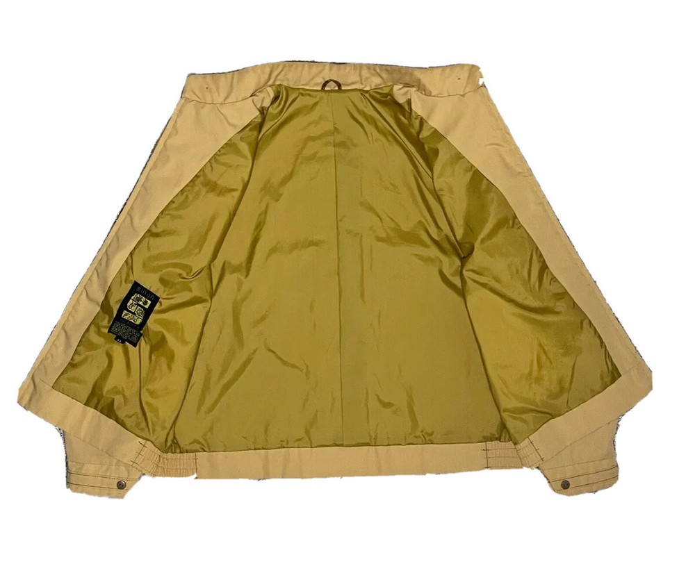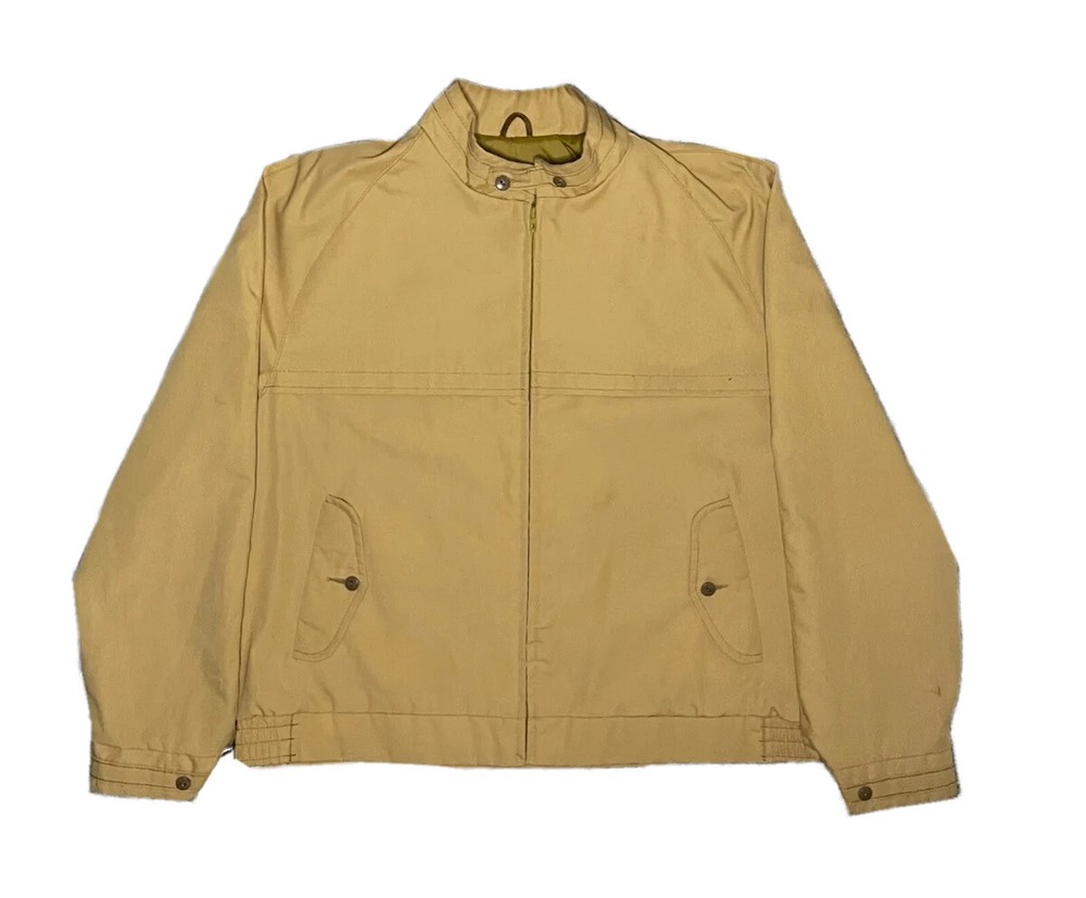 Amazing, short-style jacket with button pockets and chin strap. This garment offers a unique, 70's cafe/moto vibe. Excellent used condition - no major flaws. Freshly dry cleaned after picturing, and the few small blemishes on the backside have faded significantly. Measurements, as follows (laid flat): - Chest: 25" - Length: 24.5" - Shoulders: 22" - Sleeve: 24" - Hem: 23"