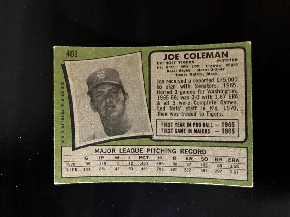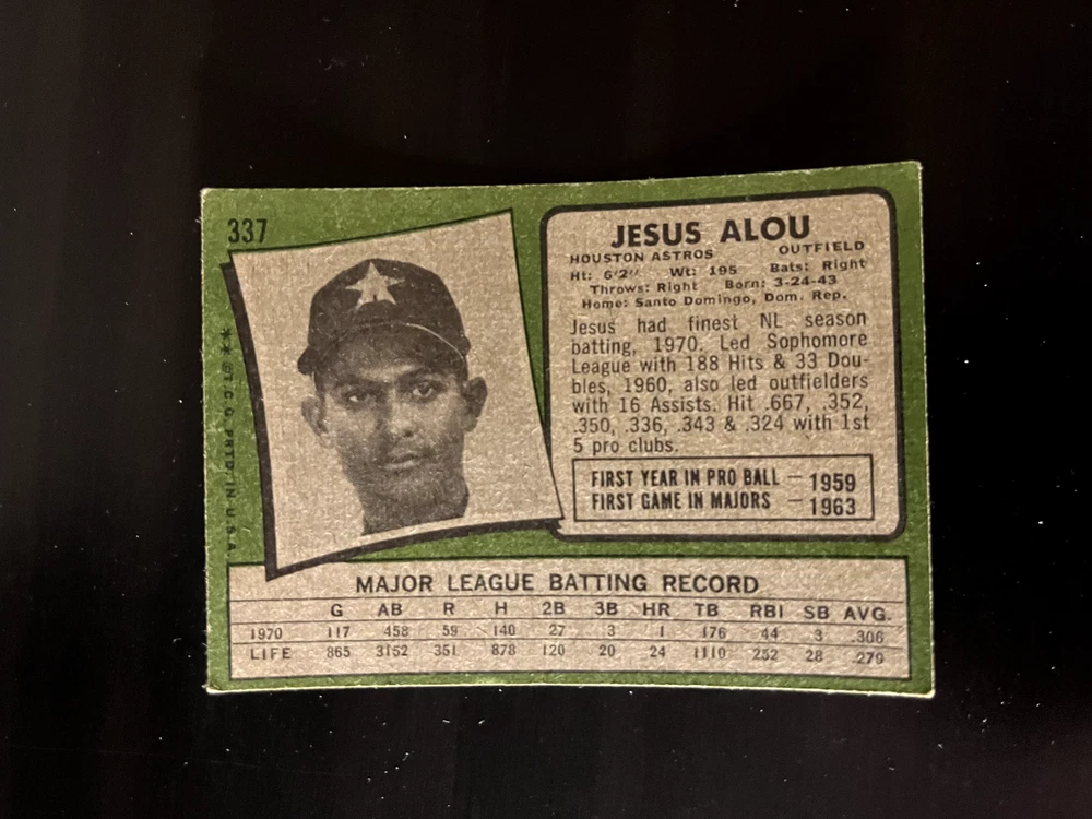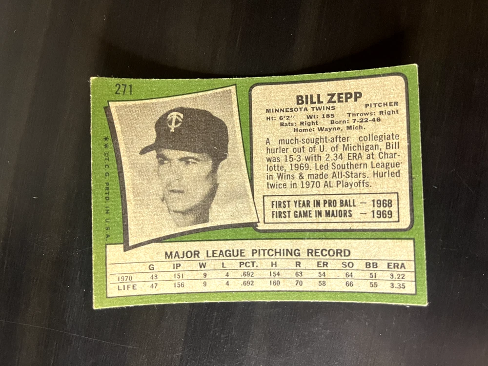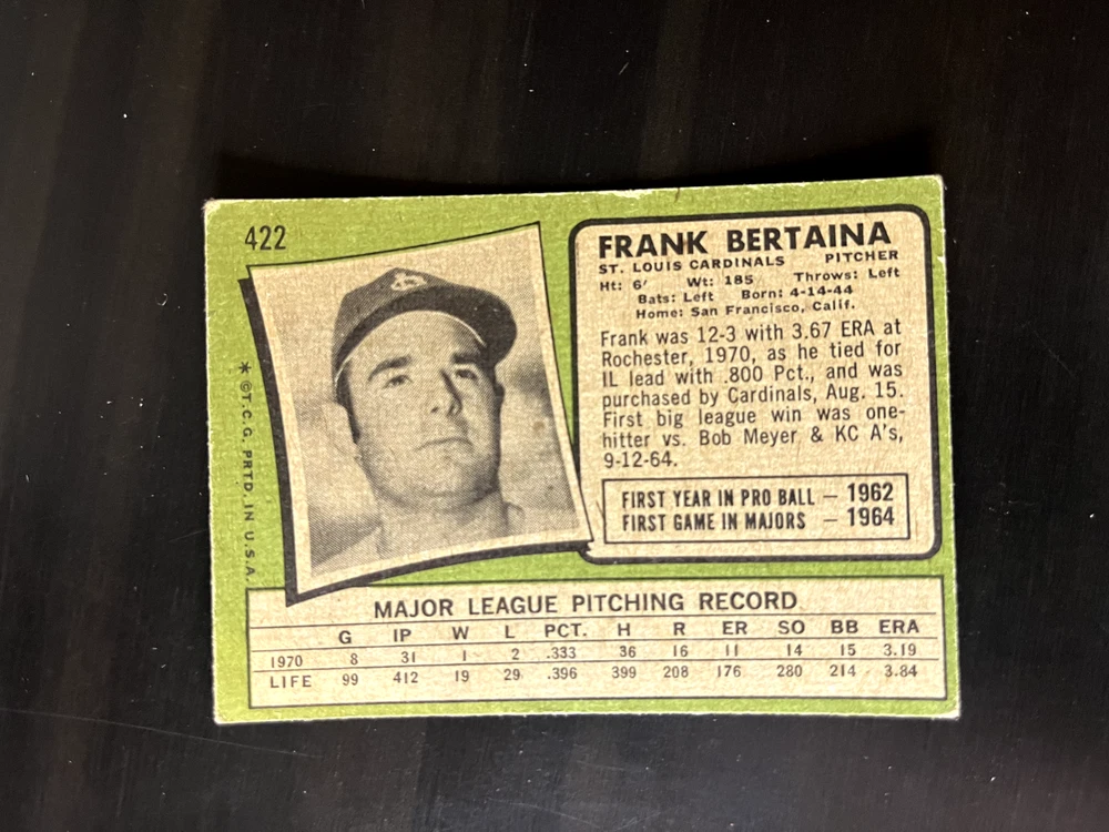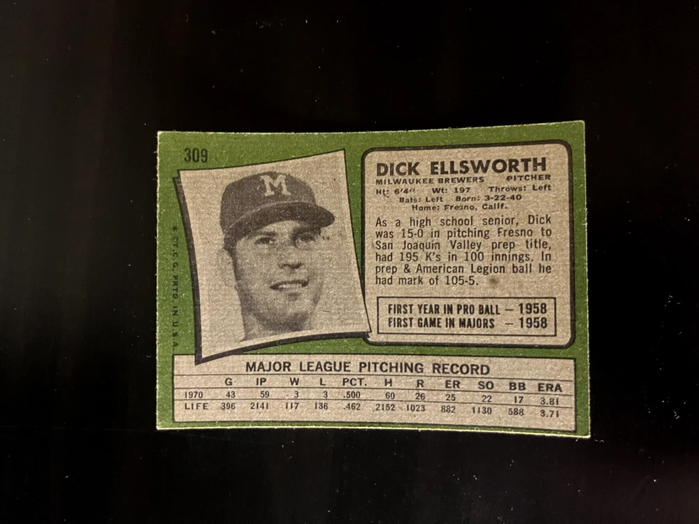 1971 Topps You-Pick Complete-Your-Set. Cards are generally in very good to excellent condition unless otherwise noted. Please see scans. Cards in scans are the cards you will receive. Bulk discounts available. Up to 10% off. I have separate listings for Low Numbers, Semi-High, and High Numbers. I combine shipping. Combined Shipping Policy: I can usually combine shipping at no extra cost. I can ship up to 8 low-price cards through USPS with tracking (about $1.25). For orders of more than 8 cards or higher value cards (above $20), I can ship with USPS Ground Advantage with tracking (about $5). I will reimburse extra shipping charges after purchase. Any questions, please inquire.