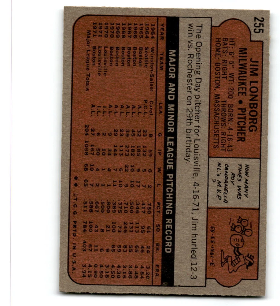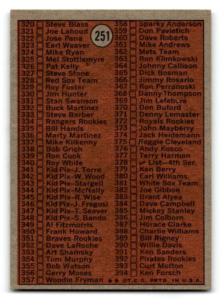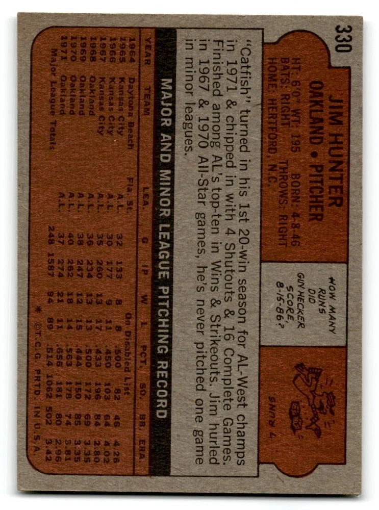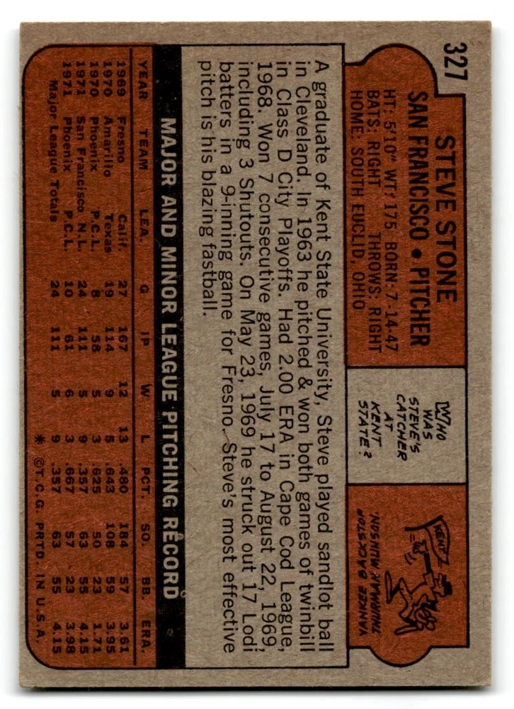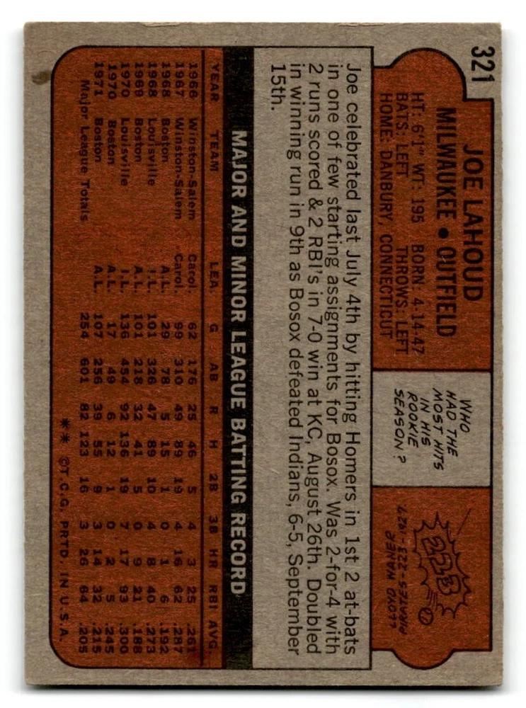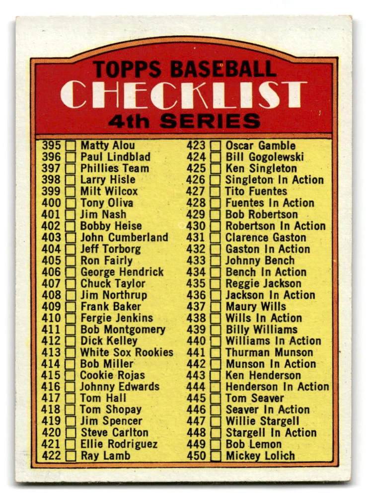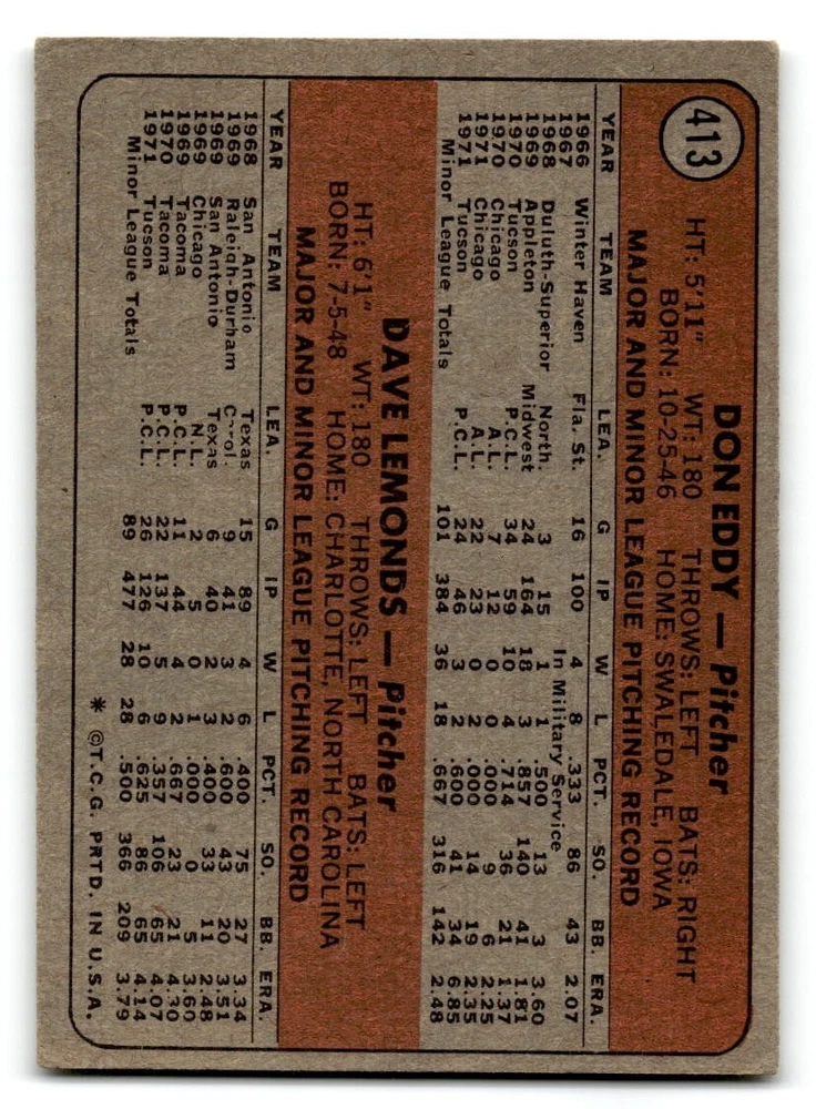 Hello, This listing is for single cards from the 1972 Topps Baseball Set. The cards are in EX/MT to NM unless there is a grade next to the name. I also have noted if the card has wax on the card (front of the card, none of the cards have wax stains on the back). I have generically graded all wax cards as a VG. If there is a card in VG with no notes saying there is wax, then there is damage to the card. The card in the picture is the card you will receive! There are lots of pictures with lines on the cards, that is from my scanner. There are no lines on any of the cards!! Grading: NM = 7 EX/MT = 6 EX = 5 VG/EX = 4 VG = 3 G = 2 Shipping: 1st card costs $1.00 using eBay Standard Envelope and .50cents for each additional card. If you buy 7 cards or more, the shipping cost is $4 for Ground Advantage (just check the boxes for Ground Advantage in the check out and no matter how many cards you are buying the cost will be $4 max! When buying 7 cards, they will be shipped in a padded envelope or box. (Ground Advantage or Priority Mail for larger orders) The last thing I am trying to do is make a profit off of Shipping. When using eBay Standard Envelope, I will put up to 2 cards in 1 top loader to ship. Unfortunately that is the max I can put in a top loader because of the thickness of these cards. I can fit 3 top loaders in one started letter sized envelope. If you have any questions about shipping please don't hesitate to ask.