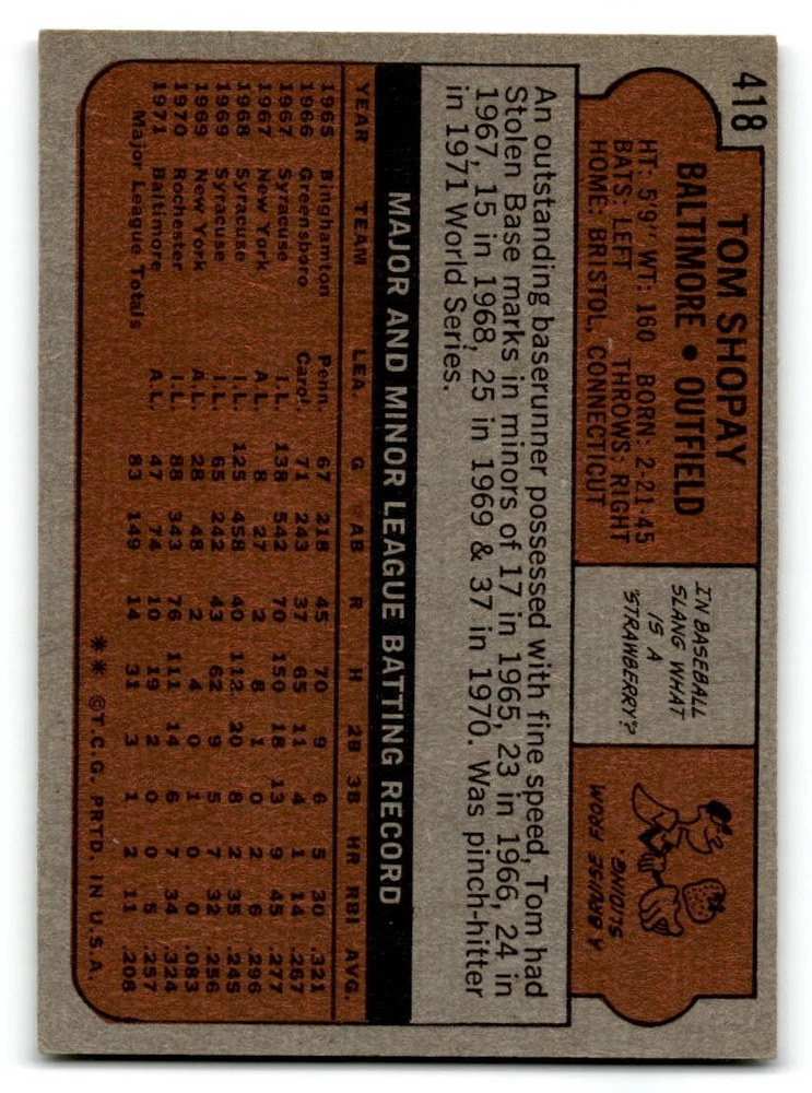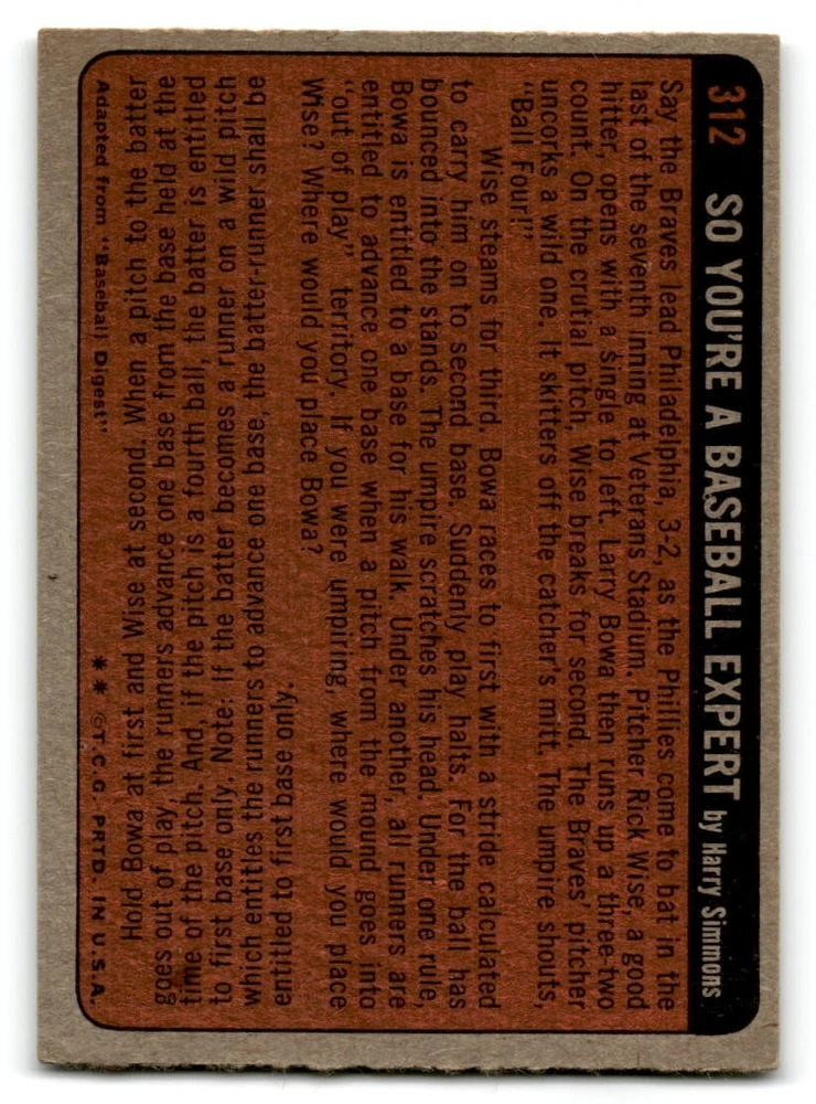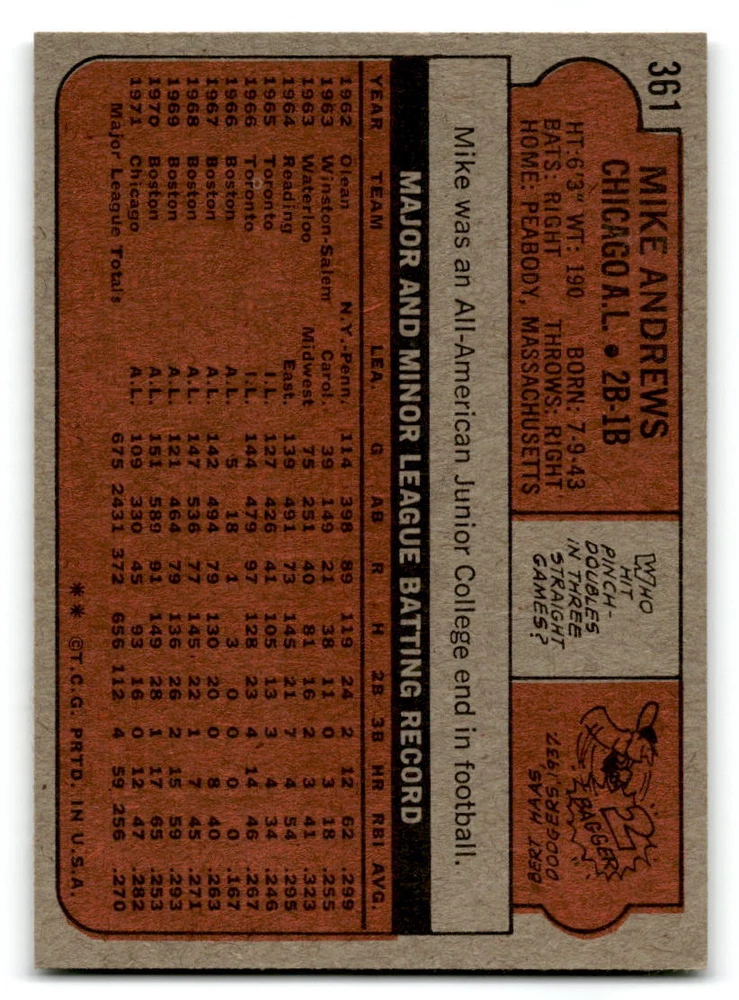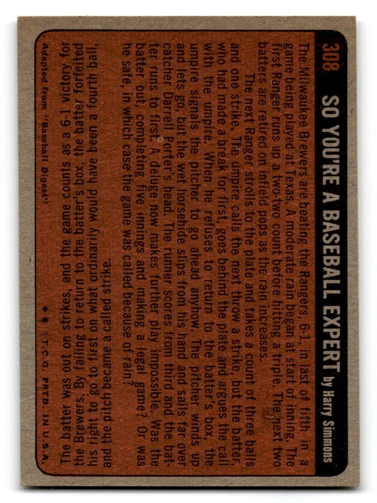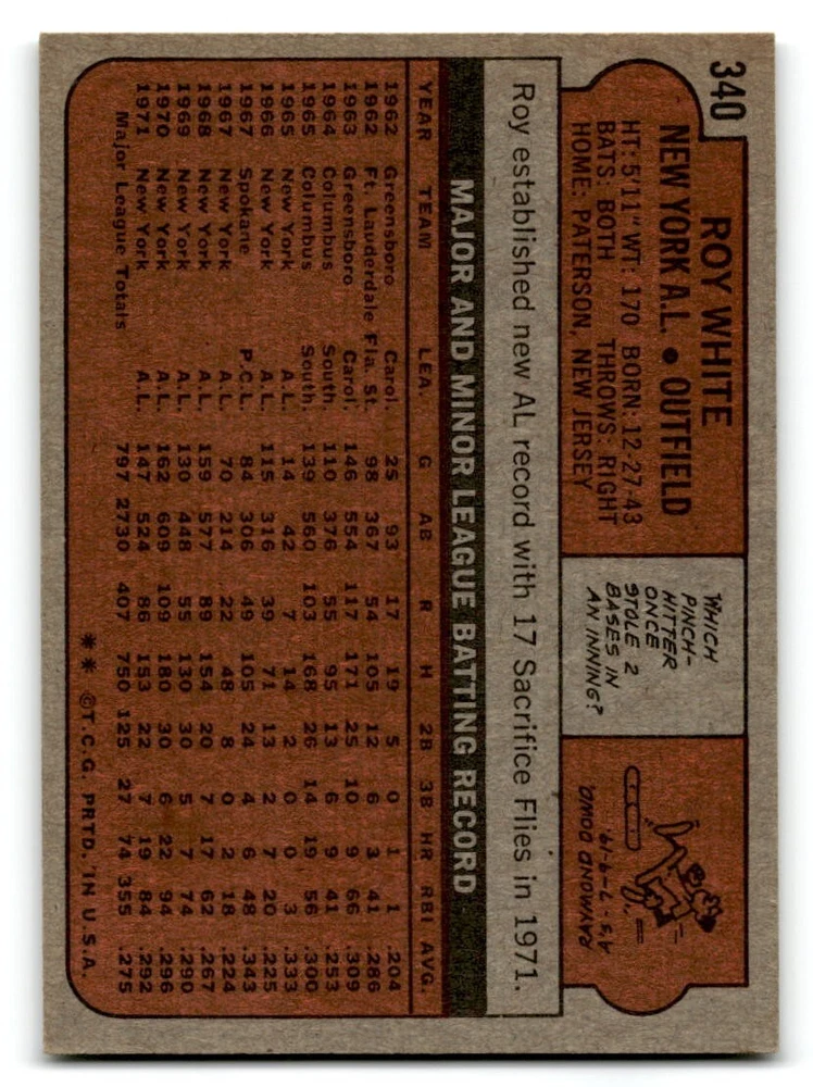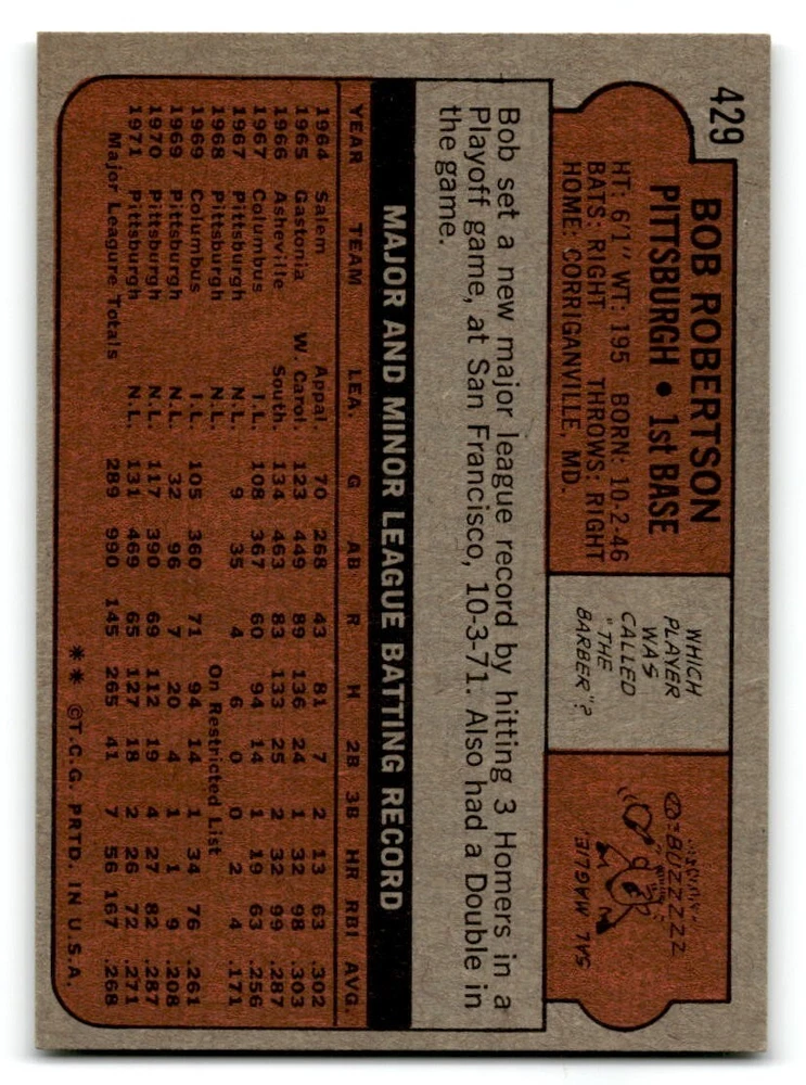 Hello, This listing is for single cards from the 1972 Topps Baseball Set. The cards are in EX/MT to NM unless there is a grade next to the name. I also have noted if the card has wax on the card (front of the card, none of the cards have wax stains on the back). I have generically graded all wax cards as a VG. If there is a card in VG with no notes saying there is wax, then there is damage to the card. The card in the picture is the card you will receive! There are lots of pictures with lines on the cards, that is from my scanner. There are no lines on any of the cards!! Grading: NM = 7 EX/MT = 6 EX = 5 VG/EX = 4 VG = 3 G = 2 Shipping: 1st card costs $1.00 using eBay Standard Envelope and .50cents for each additional card. If you buy 7 cards or more, the shipping cost is $4 for Ground Advantage (just check the boxes for Ground Advantage in the check out and no matter how many cards you are buying the cost will be $4 max! When buying 7 cards, they will be shipped in a padded envelope or box. (Ground Advantage or Priority Mail for larger orders) The last thing I am trying to do is make a profit off of Shipping. When using eBay Standard Envelope, I will put up to 2 cards in 1 top loader to ship. Unfortunately that is the max I can put in a top loader because of the thickness of these cards. I can fit 3 top loaders in one started letter sized envelope. If you have any questions about shipping please don't hesitate to ask.