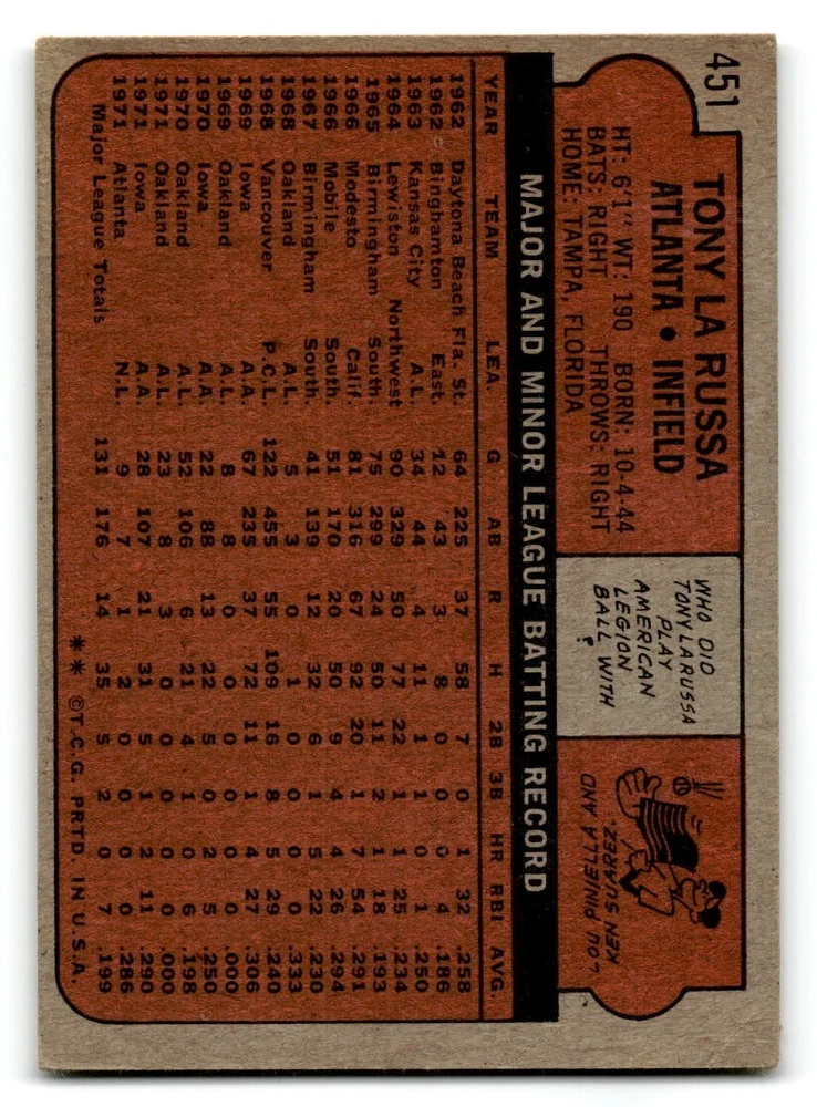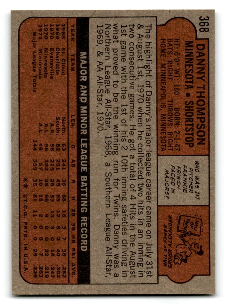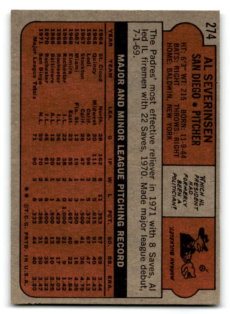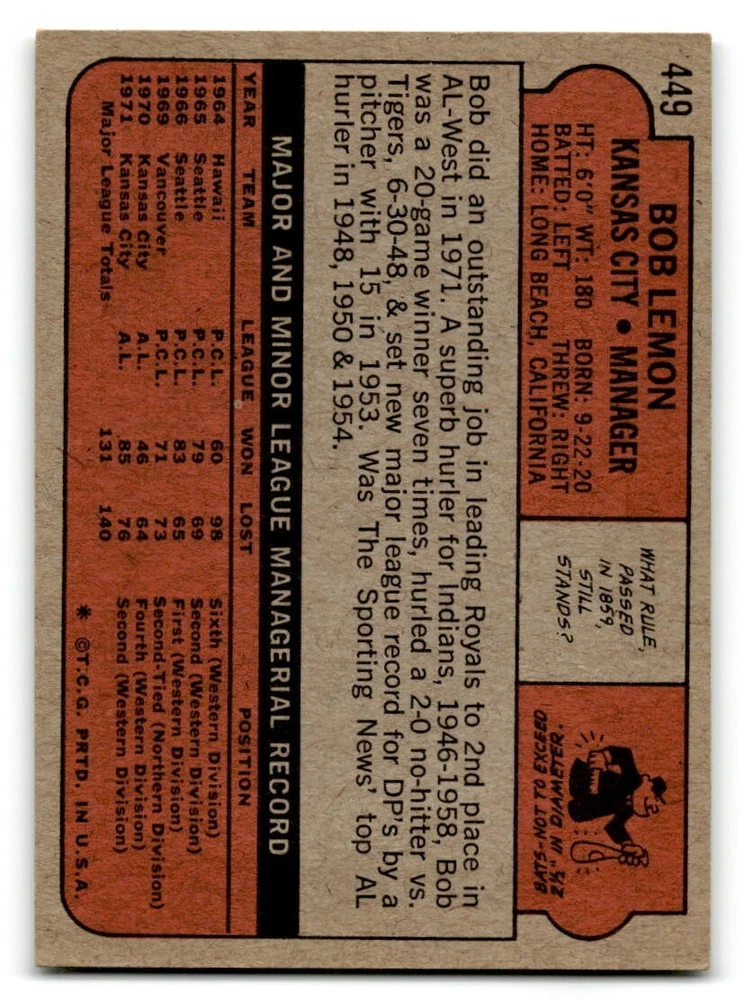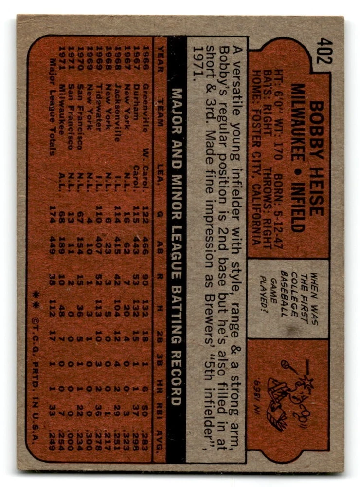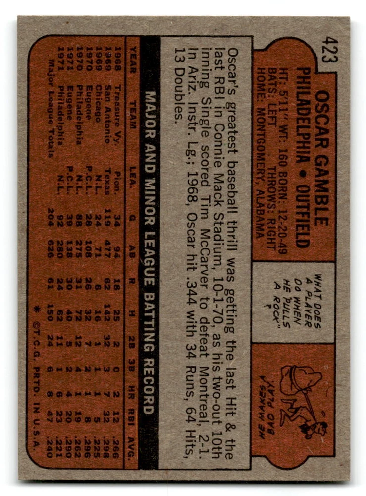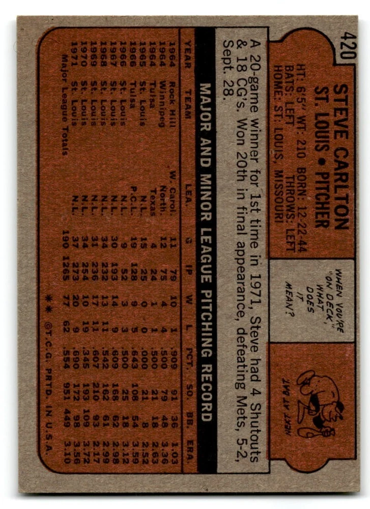 Hello, This listing is for single cards from the 1972 Topps Baseball Set. The cards are in EX/MT to NM unless there is a grade next to the name. I also have noted if the card has wax on the card (front of the card, none of the cards have wax stains on the back). I have generically graded all wax cards as a VG. If there is a card in VG with no notes saying there is wax, then there is damage to the card. The card in the picture is the card you will receive! There are lots of pictures with lines on the cards, that is from my scanner. There are no lines on any of the cards!! Grading: NM = 7 EX/MT = 6 EX = 5 VG/EX = 4 VG = 3 G = 2 Shipping: 1st card costs $1.00 using eBay Standard Envelope and .50cents for each additional card. If you buy 7 cards or more, the shipping cost is $4 for Ground Advantage (just check the boxes for Ground Advantage in the check out and no matter how many cards you are buying the cost will be $4 max! When buying 7 cards, they will be shipped in a padded envelope or box. (Ground Advantage or Priority Mail for larger orders) The last thing I am trying to do is make a profit off of Shipping. When using eBay Standard Envelope, I will put up to 2 cards in 1 top loader to ship. Unfortunately that is the max I can put in a top loader because of the thickness of these cards. I can fit 3 top loaders in one started letter sized envelope. If you have any questions about shipping please don't hesitate to ask.