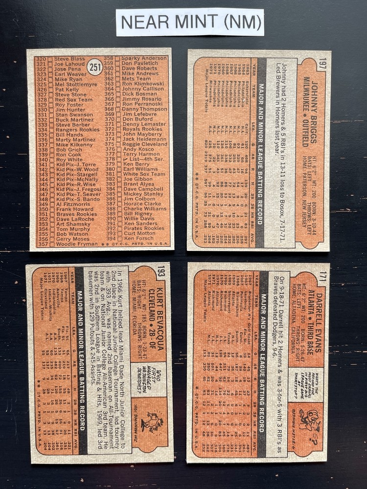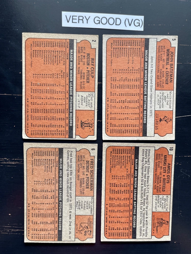 Found the perfect cards to fill gaps in my 1972 Topps set! Seller offers fair prices, and the P-NM condition is accurate—some minor wear but overall great vintage quality. Love being able to handpick what I need, and combined shipping saves money. Well-packed and arrived safely. Highly recommend for any collector finishing their set!