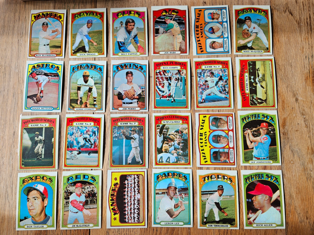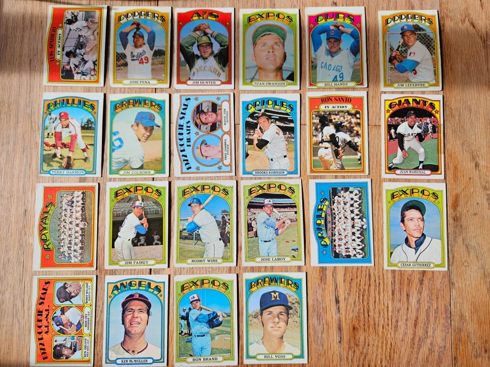 These vintage 1972 Topps baseball cards are a fantastic find for any collector! The set includes a mix of All-Stars and Hall of Famers, all in solid condition for their age. While not mint, they’re a steal compared to pricier graded options. The detailed photos let you pick exactly what you want—great for completing your collection without breaking the bank. A must-have for fans of classic baseball nostalgia!