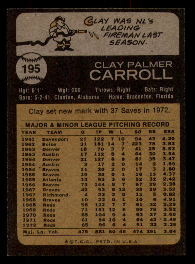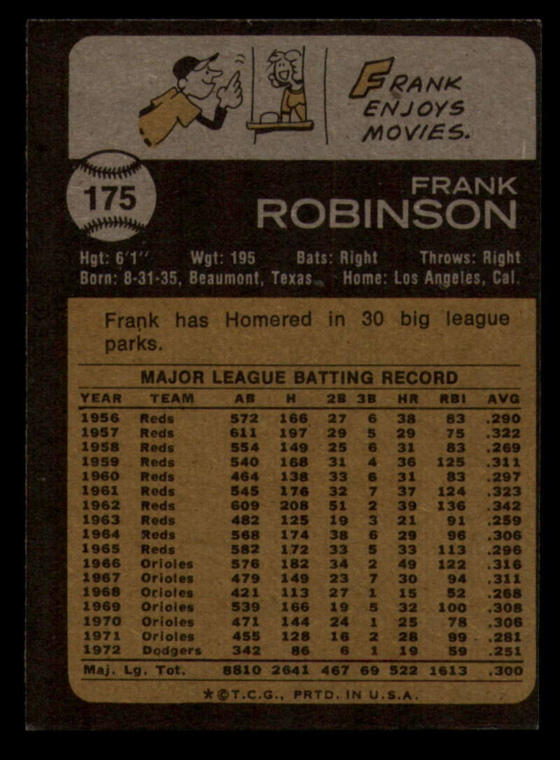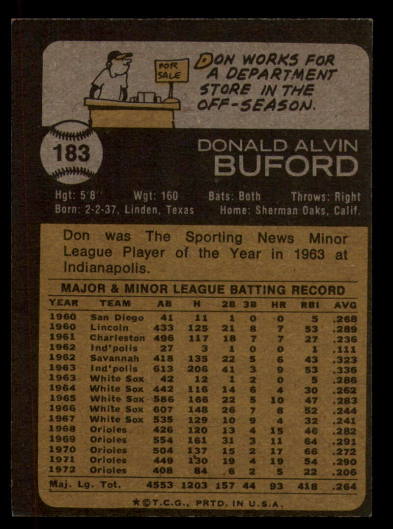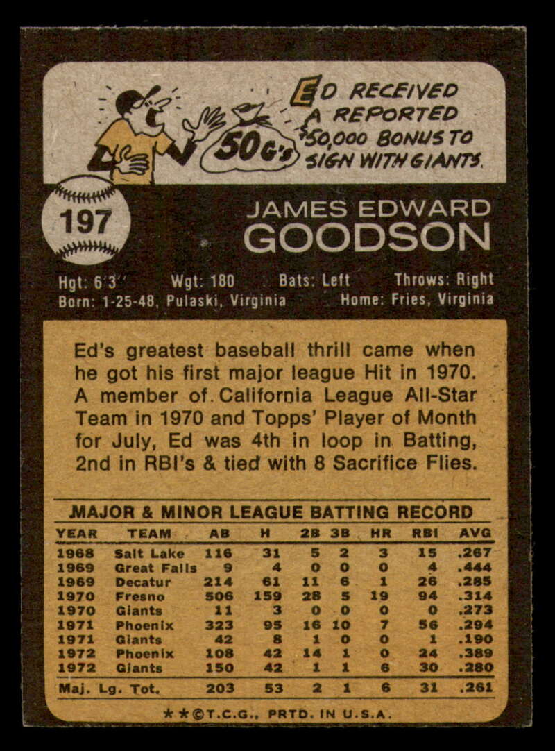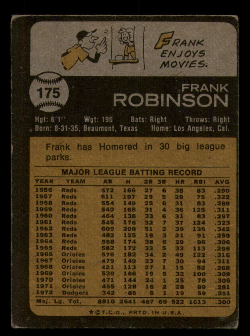 ALL MARTY'S STUFF The card in the scan is the card for sale. Each card has a high quality front and back scan of the item that you will receive. Please check the front and back pictures before buying. For combined shipping, please select all the cards that you would like from all of our many listings and have them in your shopping cart. We have a base shipping charge plus $0.05 for each additional card. Once you have made your selections, go to checkout and make one payment for the entire purchase. Multiple payments will result in multiple shipping charges. I f you have any questions, please ask . 1973 Topps Baseball #151 to #200 - Complete your set - Pick your card #151 Wes Parker G Good Dodgers #151 Wes Parker VG EX Very Good Exce Dodgers #151 Wes Parker creased Dodgers (2)#151 Wes Parker VG EX Very Good Exce Dodgers (3)#151 Wes Parker VG EX Very Good Exce Dodgers #152 Dave May EXNM oc Brewers #152 Dave May EX Excellent Brewers #152 Dave May VG Very Good Brewers #152 Dave May NM Near Mint Brewers #152 Dave May VG EX Very Good Exce Brewers #153 Al Hrabosky creased Cardinals #153 Al Hrabosky VG EX Very Good Exce Cardinals (2)#153 Al Hrabosky creased Cardinals (3)#153 Al Hrabosky creased Cardinals #153 Al Hrabosky Print spots Cardinals #154 Jeff Torborg NM Near Mint Angels #154 Jeff Torborg EX Excellent Angels #154 Jeff Torborg NM-MT Angels (2)#154 Jeff Torborg EX NM Angels #154 Jeff Torborg EX NM Angels #155 Sal Bando VG Very Good Athletics #155 Sal Bando VG EX Very Good Exce Athletics #155 Sal Bando creased Athletics #155 Sal Bando G VG Good Very Good Athletics (2)#155 Sal Bando VG Very Good Athletics (2)#156 Cesar Geronimo creased Reds #156 Cesar Geronimo G VG Good Very Good Reds #156 Cesar Geronimo EX NM Reds #156 Cesar Geronimo creased Reds #156 Cesar Geronimo creased Reds .. #157 Denny Riddleberger VG Very Good Indians #157 Denny Riddleberger EX+ oc Indians #157 Denny Riddleberger NMMT oc Indians (2)#157 Denny Riddleberger EX Excellent Indians #157 Denny Riddleberger EX Excellent Indians #158 Astros Team VG Very Good Astros #158 Astros Team VG EX Very Good Exce Astros (2)#158 Astros Team VG EX Very Good Exce Astros (2)#158 Astros Team EX Excellent Astros #158 Astros Team EX Excellent Astros #159 Cito Gaston VG EX Very Good Exce Padres #159 Cito Gaston EX Excellent Padres (2)#159 Cito Gaston VG EX Very Good Exce Padres (3)#159 Cito Gaston VG EX Very Good Exce Padres #159 Cito Gaston EX NM Padres #160 Jim Palmer Fair Orioles (2)#160 Jim Palmer Fair Orioles #160 Jim Palmer missing corner Orioles #160 Jim Palmer EX Excellent Orioles #160 Jim Palmer VG EX Very Good Exce Orioles #161 Ted Martinez VG EX Very Good Exce Mets #161 Ted Martinez EX Excellent Mets (2)#161 Ted Martinez EX Excellent Mets #161 Ted Martinez NM Near Mint Mets #161 Ted Martinez NM+ Mets #162 Pete Broberg VG EX Very Good Exce Rangers #162 Pete Broberg EX NM Rangers #162 Pete Broberg creased Rangers (2)#162 Pete Broberg VG EX Very Good Exce Rangers #162 Pete Broberg NM+ Rangers #163 Vic Davalillo NM Near Mint Pirates (2)#163 Vic Davalillo NM Near Mint Pirates (2)#163 Vic Davalillo EX Excellent Pirates #163 Vic Davalillo EX Excellent Pirates #163 Vic Davalillo VG EX Very Good Exce Pirates #164 Monty Montgomery creased Royals #164 Monty Montgomery EX NM Royals #164 Monty Montgomery VG EX Very Good Exce Royals (2)#164 Monty Montgomery EX Excellent Royals #164 Monty Montgomery EX Excellent Royals #165 Luis Aparicio NRMT-OC Red Sox (2)#165 Luis Aparicio NM Near Mint Red Sox #165 Luis Aparicio NM Near Mint Red Sox #165 Luis Aparicio VG EX Very Good Exce Red Sox (2)#165 Luis Aparicio VG EX Very Good Exce Red Sox #166 Terry Harmon EX Excellent Phillies #166 Terry Harmon miscut back Phillies #166 Terry Harmon VG EX Very Good Exce Phillies #166 Terry Harmon EX NM Phillies #166 Terry Harmon NM Near Mint Phillies #167 Steve Stone EX Excellent Giants (2)#167 Steve Stone EX NM Giants (2)#167 Steve Stone VG EX Very Good Exce Giants #167 Steve Stone EX NM Giants #167 Steve Stone VG EX Very Good Exce Giants #168 Jim Northrup NM Near Mint Tigers .. (2)#168 Jim Northrup NM Near Mint Tigers #168 Jim Northrup EX NM Tigers #168 Jim Northrup VG EX Very Good Exce Tigers #168 Jim Northrup NM Near Mint Tigers #169 Ron Schueler NM Near Mint Braves #169 Ron Schueler NM Near Mint Braves .. #169 Ron Schueler EX++ Excellent++ Braves #169 Ron Schueler EX NM Braves #169 Ron Schueler NM+ Braves #170 Harmon Killebrew creased Twins #170 Harmon Killebrew EX Excellent Twins #170 Harmon Killebrew EX NM Twins #170 Harmon Killebrew VG EX Very Good Exce Twins #170 Harmon Killebrew creased Twins .. #171 Bernie Carbo VG EX Very Good Exce Cardinals #171 Bernie Carbo EX Excellent Cardinals #171 Bernie Carbo G Good Cardinals (2)#171 Bernie Carbo VG EX Very Good Exce Cardinal #171 Bernie Carbo off-centered Cardinals #172 Steve Kline EX Excellent Yankees #172 Steve Kline EX+ oc Yankees #172 Steve Kline NM Near Mint Yankees #172 Steve Kline VG EX Very Good Exce Yankees (2)#172 Steve Kline VG EX Very Good Exce Yankees #173 Hal Breeden EX NM Expos #173 Hal Breeden NM Near Mint Expos #173 Hal Breeden EX Excellent Expos #173 Hal Breeden VG EX Very Good Exce Expos #173 Hal Breeden off-centered Expos #174 Rich Gossage VG EX Very Good Exce White Sox #174 Rich Gossage EX Excellent White Sox #174 Rich Gossage off-centered White Sox #174 Rich Gossage VG Very Good White Sox #174 Rich Gossage NRMT-OC White Sox #174 Rich Gossage miscut back White Sox #175 Frank Robinson creased Angels #175 Frank Robinson off-centered Angels #175 Frank Robinson miscut Angels #175 Frank Robinson EX+ Angels #175 Frank Robinson EX+ oc Angels #176 Chuck Taylor NM Near Mint Brewers #176 Chuck Taylor EX NM Brewers (2)#176 Chuck Taylor NM Near Mint Brewers #176 Chuck Taylor VG EX Very Good Exce Brewers #176 Chuck Taylor NRMT oc Brewers (2)#177 Bill Plummer EX Excellent Reds #177 Bill Plummer EX NM Reds #177 Bill Plummer VG EX Very Good Exce Reds #177 Bill Plummer creased Reds #177 Bill Plummer EX Excellent