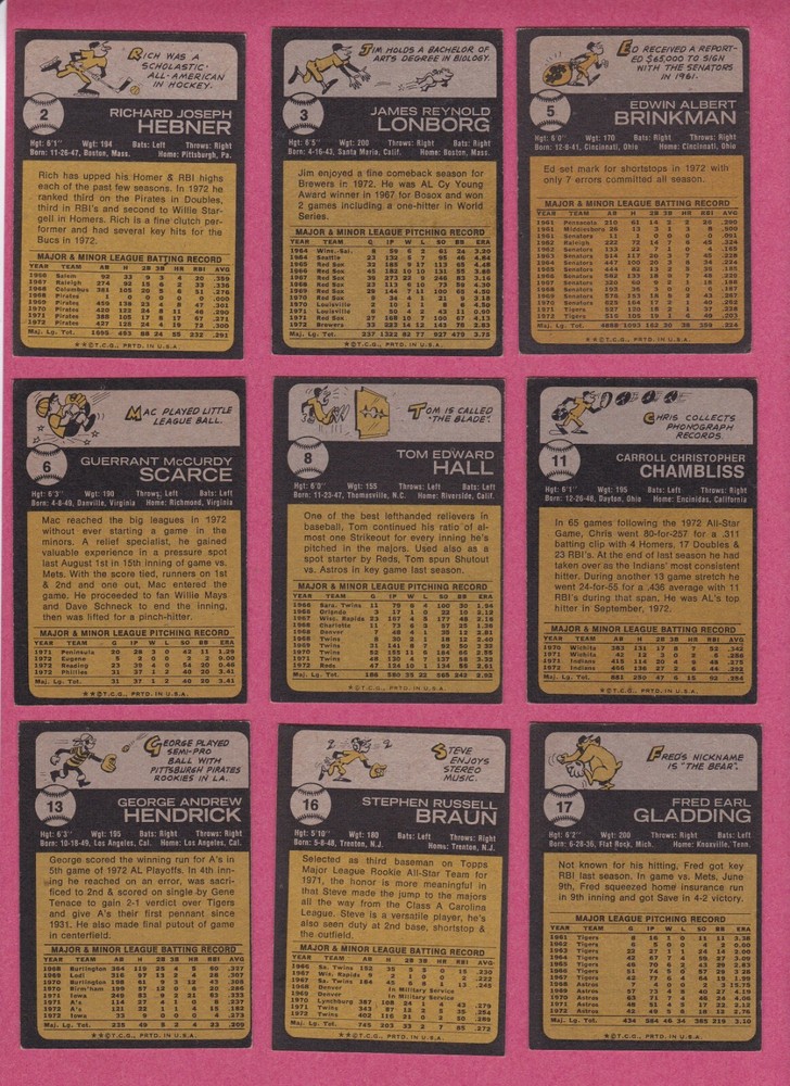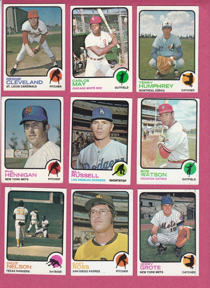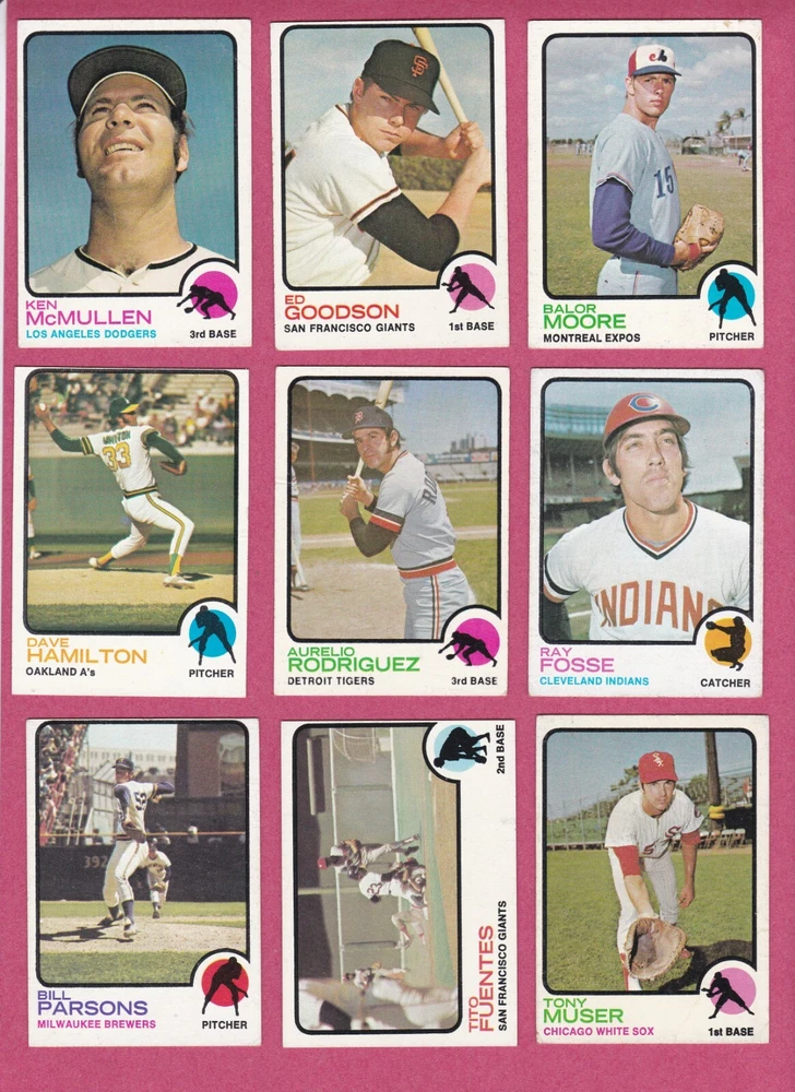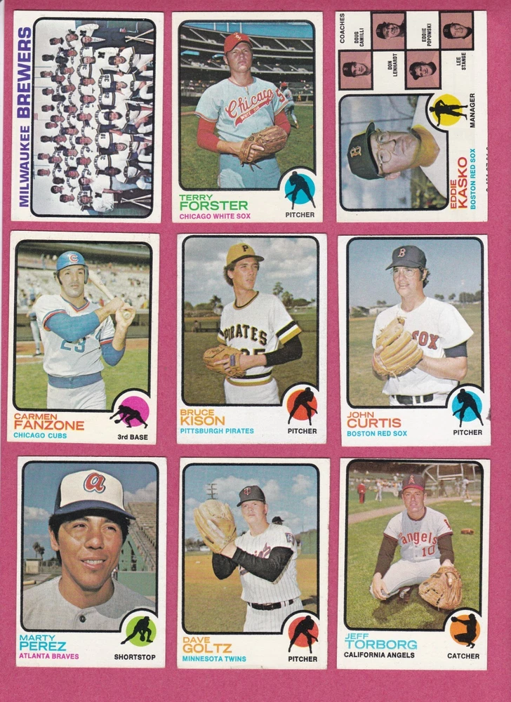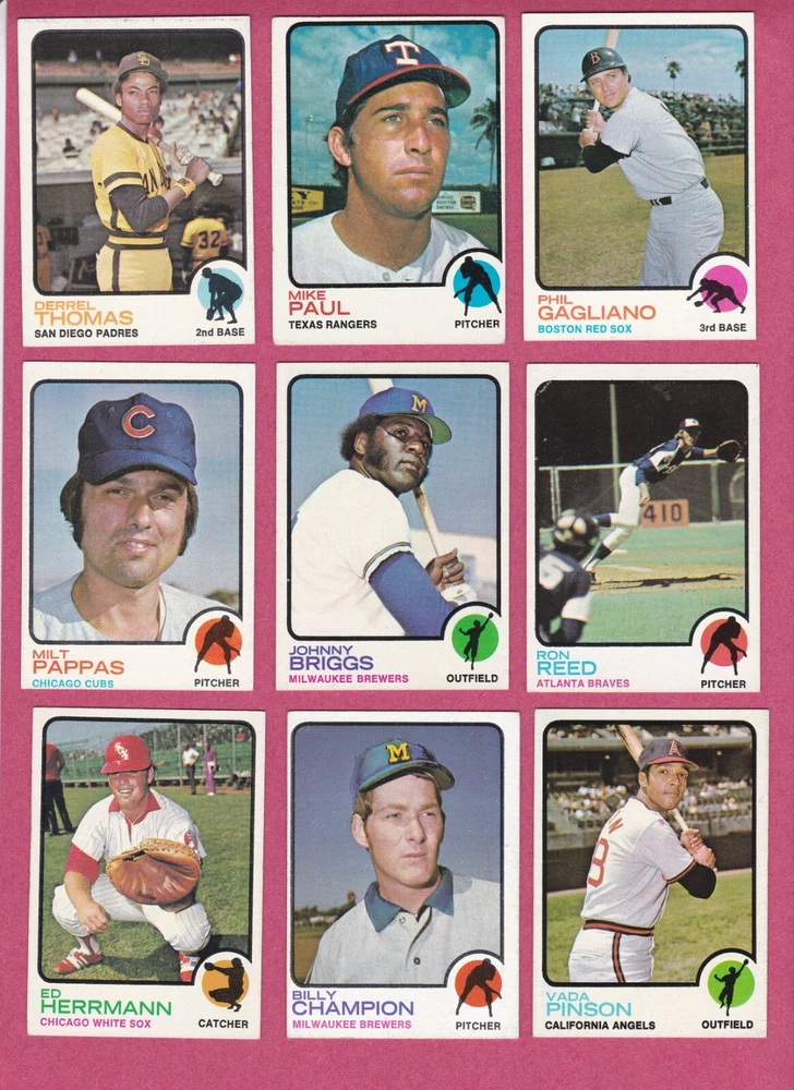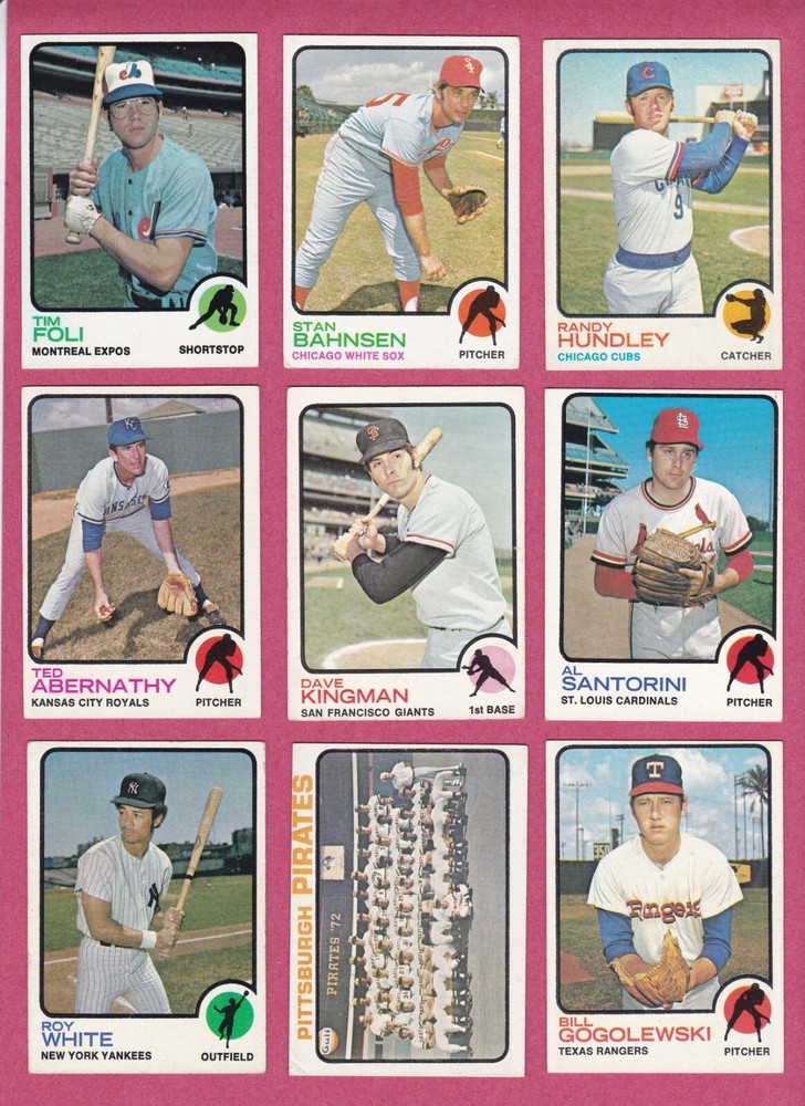 1973 Topps baseball common cards in EX to EXMT condition. Photos are of the actual cards for sale. Backs are not shown in photos but there are no creases, bends or writing on either side of the cards. Shipping is $0.50 for the first card and an extra $.20 per card for subsequent cards. If you purchase more than one card from this listing in the same eBay order , there is a 33% discount on all of these cards (67 cents each instead of $1 each).