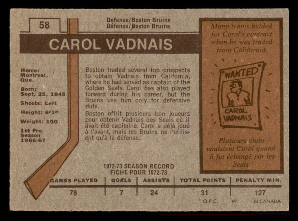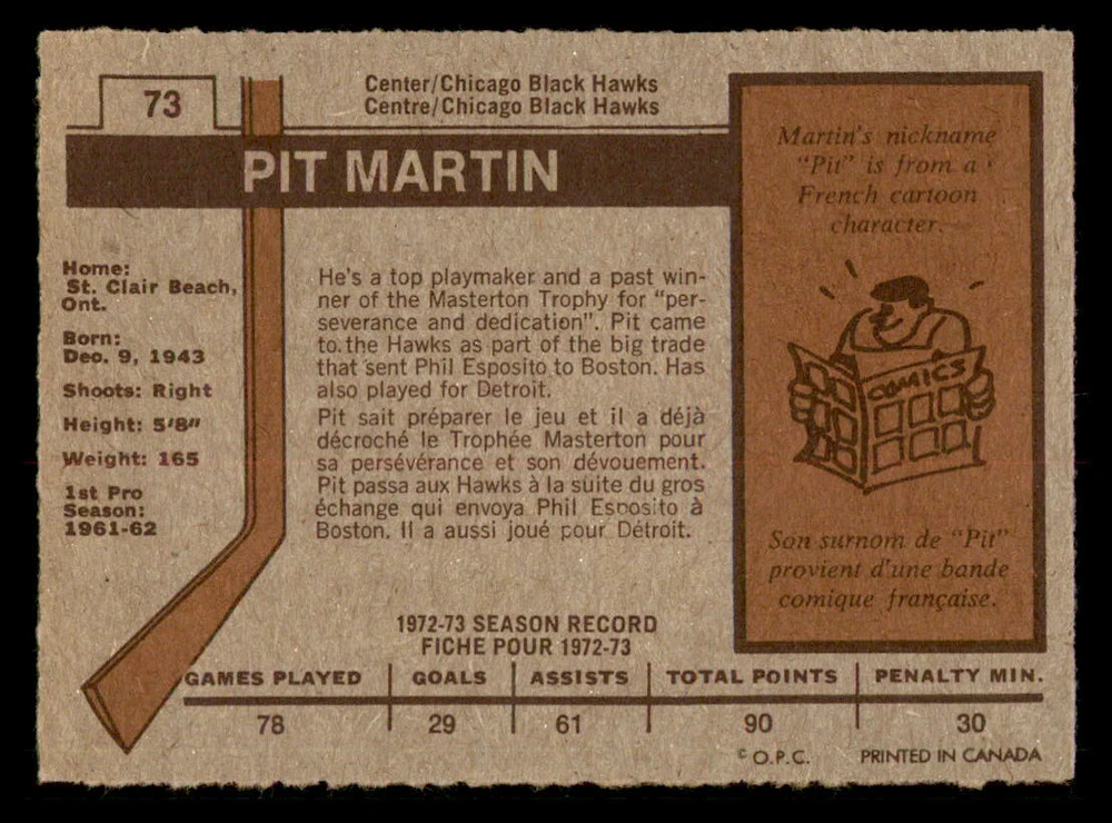 1973-74 OPC (DARK BACKS ONLY) ''COMPLETE/REFRESH YOUR SET'' TO MY NON-PROFESSIONAL OPINION, ALL CARDS IN THIS LISTING ARE MID GRADE ''VG+TO EX+'' ... NO CREASES ISSUES ARE SPECIFIED AND PRICED ACCORDINGLY COMBINE SHIPPING IS ONLY $0.25 CA FOR EACH ADDITIONAL CARD YOU PURCHASE AT ONE TIME FROM ANY OF MY LISTINGS. PLESE WAIT TO PAY TO BE INVOICED PROPERLY IF YOU ARE BUYING FROM MORE THEN ONE LISTING. BUY WITH CONFIDENCE, 100% RATING !!! DONT HESITATE TO ASK FOR MORE PICTURES IF YOU DESIRE. THANK YOU FOR CONSIDERING ....... VIRTUS COLLECTIBLES