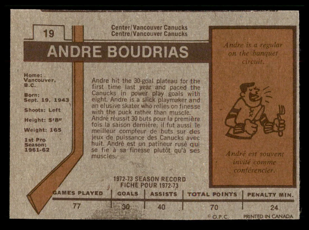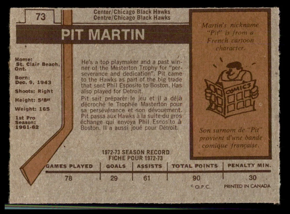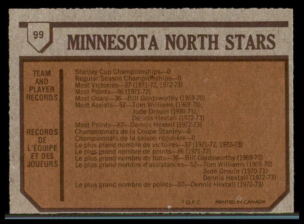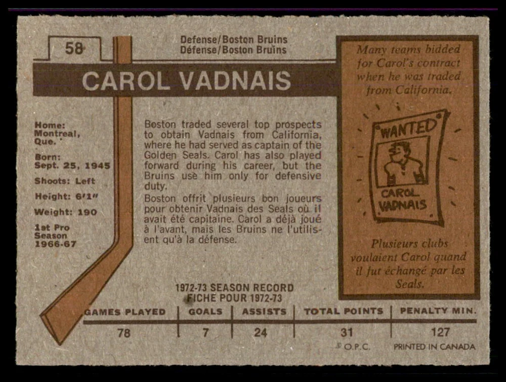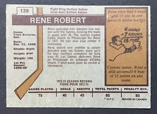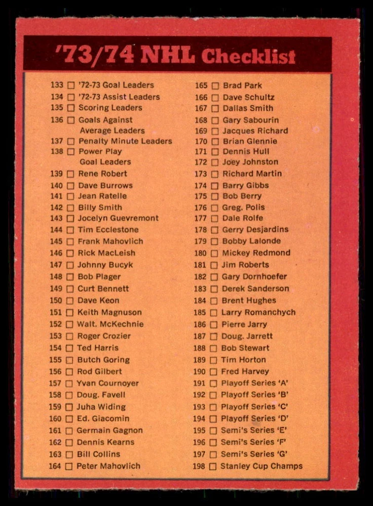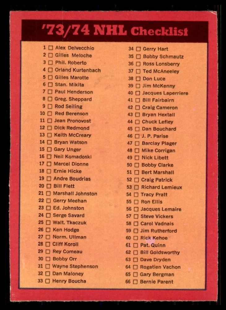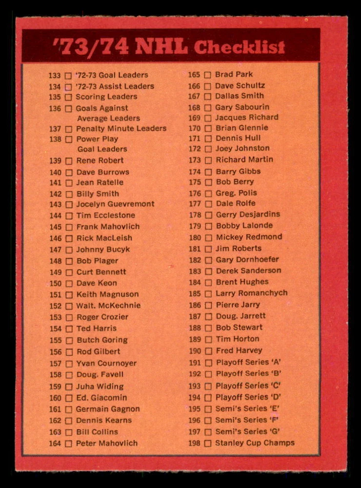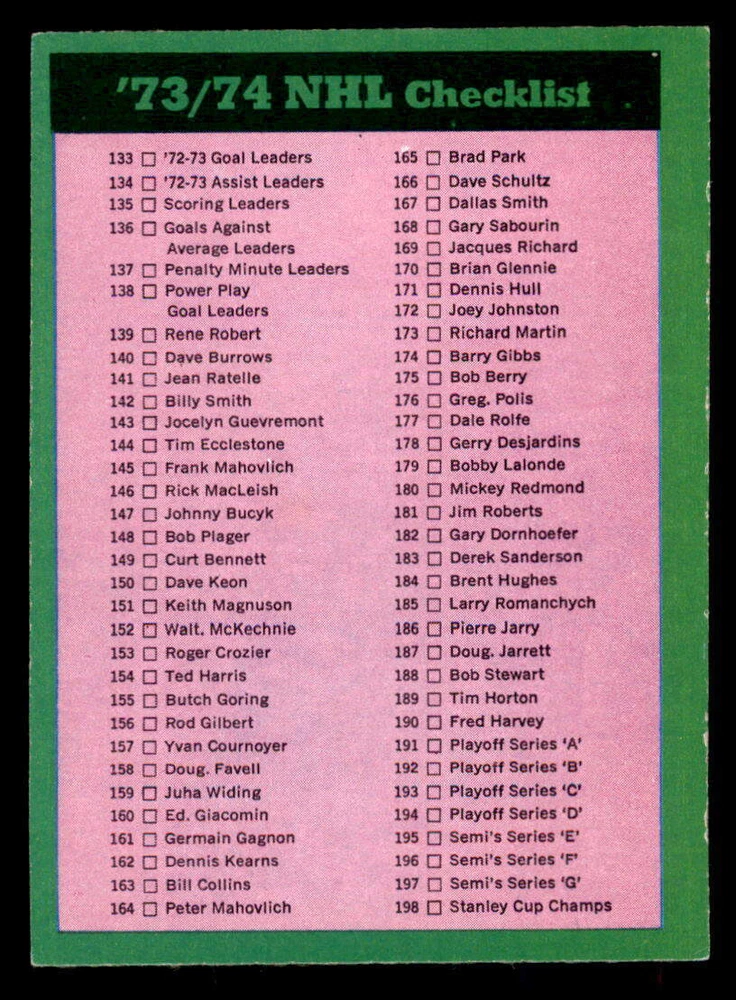1973-74 OPC ''REFRESH/COMPLETE YOUR SET'' ... EVERY CARDS IN THIS LISTING HAVE ''DARK BACKS'' ! TO MY NON PROFESSIONAL OPINION, ALL CARDS ARE: ''NRMT+ OR EVEN BETTER WITH GREAT CENTERING'' COMBINE SHIPPING IS ONLY $0.25 CA FOR EACH ADDITIONAL CARD YOU PURCHASE AT ONE TIME FROM ANY OF MY LISTINGS. PLESE WAIT TO PAY AND BE INVOICED PROPERLY IF YOU ARE BUYING FROM MORE THEN ONE LISTING. BUY WITH CONFIDENCE, 100% RATING !!! DONT HESITATE TO ASK FOR MORE PICTURES IF YOU DESIRE. THANK YOU FOR CONSIDERING ....... VIRTUS COLLECTIBLES