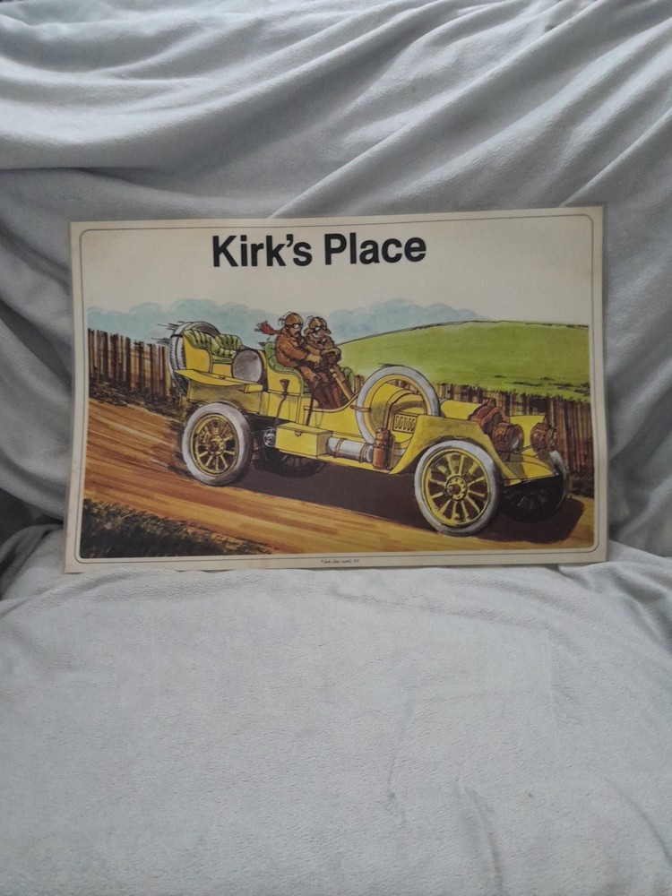This retro-inspired vinyl placemat is a must-have for car lovers and collectors! The bold 1974 Carter Riches design adds serious vintage charm to any man cave or dining setup. Super durable and easy to clean, it’s perfect for everyday use or displaying as cool decor. The vibrant colors and unique Kirk’s Place branding make it a conversation starter at meals. Love how it combines nostalgia with practicality—great gift idea for auto enthusiasts!