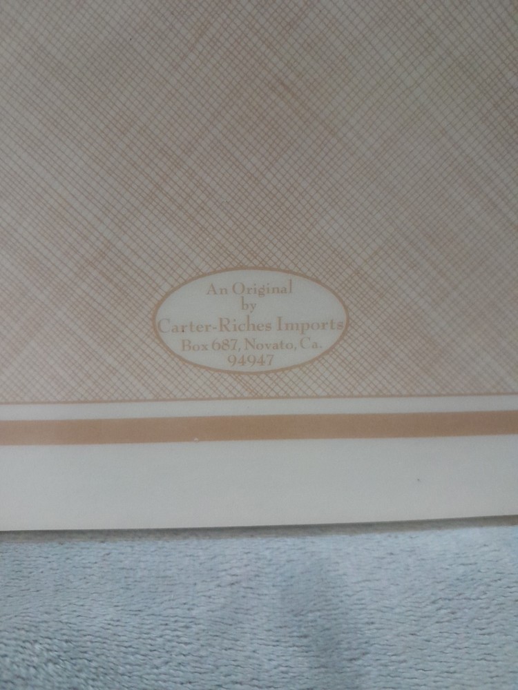 The 1974 Carter Riches Imports Vinyl Placemat featuring a car pattern and Kirk's Place theme is a personalized and unique addition to any man cave or kitchen decor. Made of durable vinyl material, this rectangular placemat showcases a multicolor design that complements various occasions. Designed in the United States, this placemat requires hand wash only for care and maintenance. Perfect for car enthusiasts and those looking to add a touch of personality to their dining area, this one-of-a-kind item is sure to stand out and make a statement. I strive for 100% customer satisfaction. Please look carefully at the photos to verify the condition of the item. If you have any questions, please contact me prior to purchasing. I will try to resolve any problems that you may have with your purchase. Please contact me before leaving anything less than 5-Star Feedback on eBay. When you leave positive feedback for me, it lets me know you are satisfied with your purchase. Once I know you are satisfied with your purchase, I will gladly leave positive feedback for you as well. Small Business Mission: Thank you for supporting our small business! We strive to minimize our environmental footprint. We do so by reusing shipping material including boxes, newspaper, Styrofoam, etc. Our packages may not look the prettiest when they arrive, but you can be assured that your item is packed safely and securely while being environmentally friendly :)
