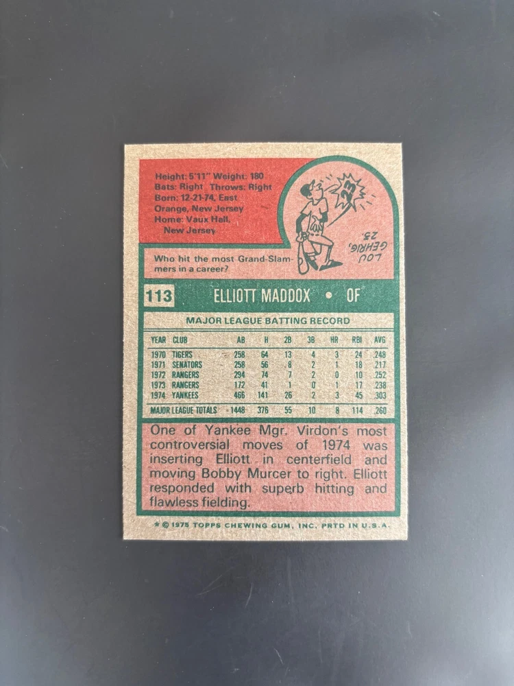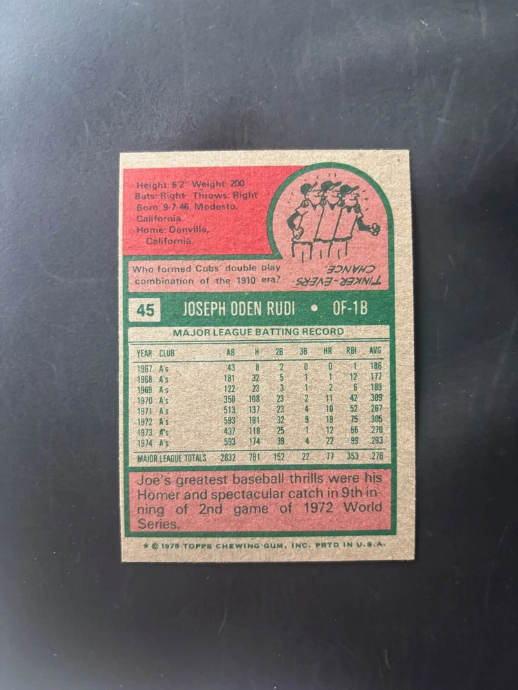 1975 Topps Most Valuable Players Rookies Leaders HOF Baseball Cards Pick A Player Singles - Card #1-180 Complete your Set (FLAT SHIP $.70) Finish off your set or add your favorite player/team to your collection! You will receive the exact card in the picture! Cards range in quality (Please see scans and prices) NO CREASED CARDS ~ Any stains or wrinkles have extra photos ~ Shipped with USPS First Class in a protective card saver or top loader with penny sleeve / Multiple cards purchased over $50 in value will be shipped in a bubble wrap manila package (ALL CARDS Flat $.70 SHIPPING per listing) ~Buy as many cards as you need and I will cover the rest of the shipping costs~ ~ Please check out my other listings for more 1975 Topps cards ~ Thank You!