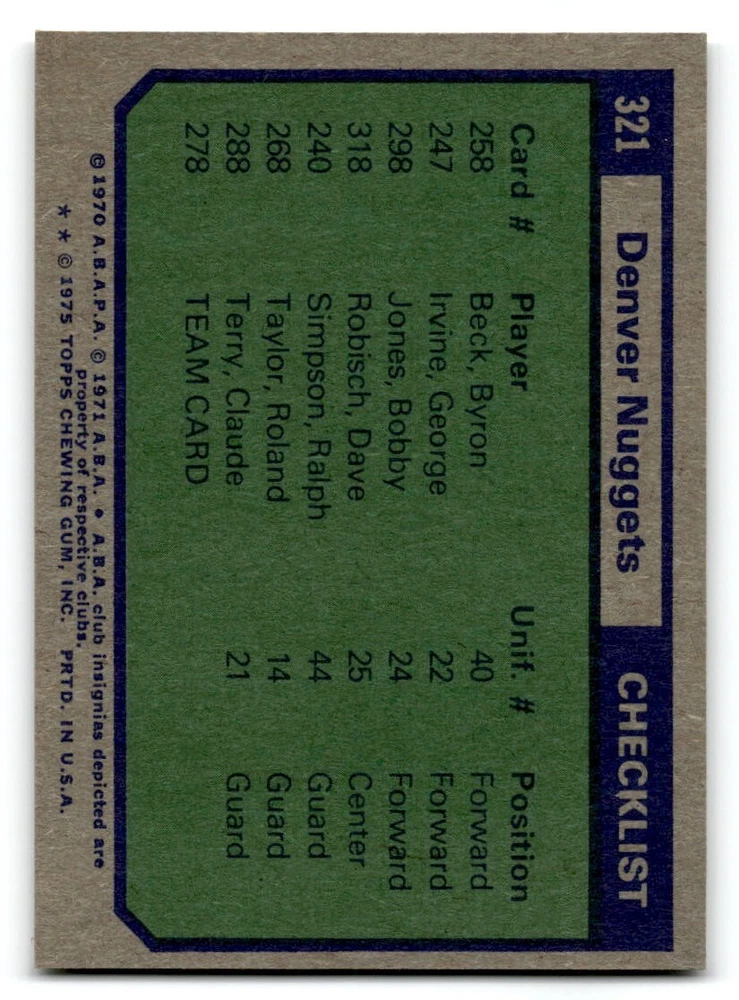 Hello, This listing is for single cards from the 1975-76 Topps Basketball set. ALL cards are in EX/MT to NM condition. If you are not sure what EX/MT to NM means, that is a 6 or 7 out of 10. Some cards could be NM or a 8 out of 10. Please understand that the cards will not be a PSA 10. The cards in the picture are the actual card you will receive. Please look at the card in the picture carefully to determine if you feel the card is in the condition I am stating in the listing. Shipping: 1st card costs $1.00 using eBay Standard Envelope and .50cents for each additional card. If you buy 7 cards or more, the shipping cost is $4 for Ground Advantage (just check the boxes for Ground Advantage in the check out and no matter how many cards you are buying the cost will be $4 max! When buying 7 cards, they will be shipped in a padded envelope or box with Top Loaders. (Ground Advantage or Priority Mail for larger orders) The last thing I am trying to do is make a profit off of Shipping. When using eBay Standard Envelope, I will put up to 2 cards in 1 top loader to ship. Unfortunately that is the max I can put in a top loader because of the thickness of these cards. I can fit 3 top loaders in one started letter sized envelope. If you have any questions about shipping please don't hesitate to ask.