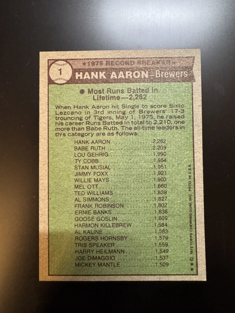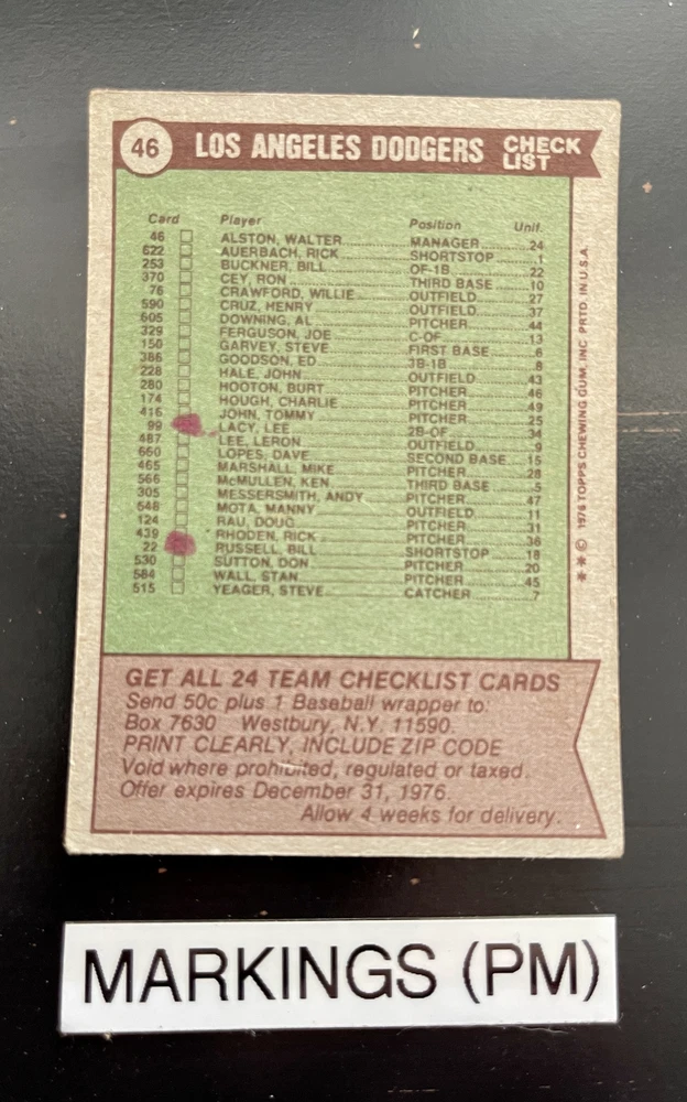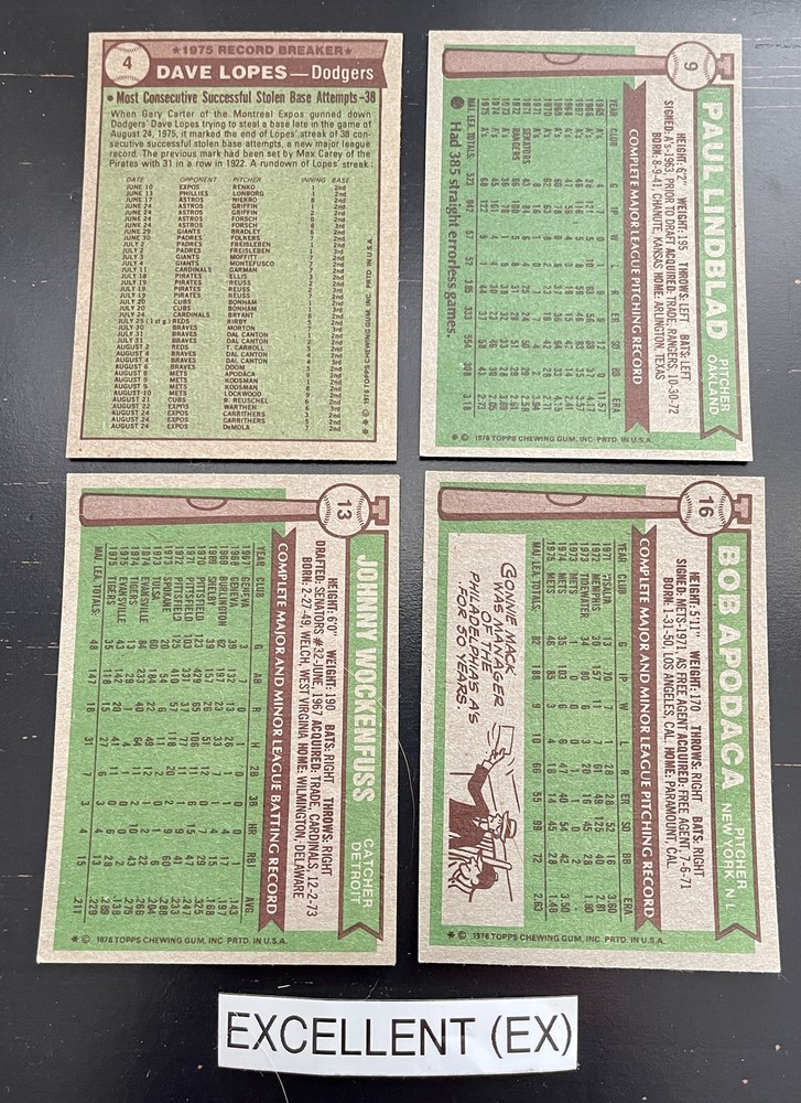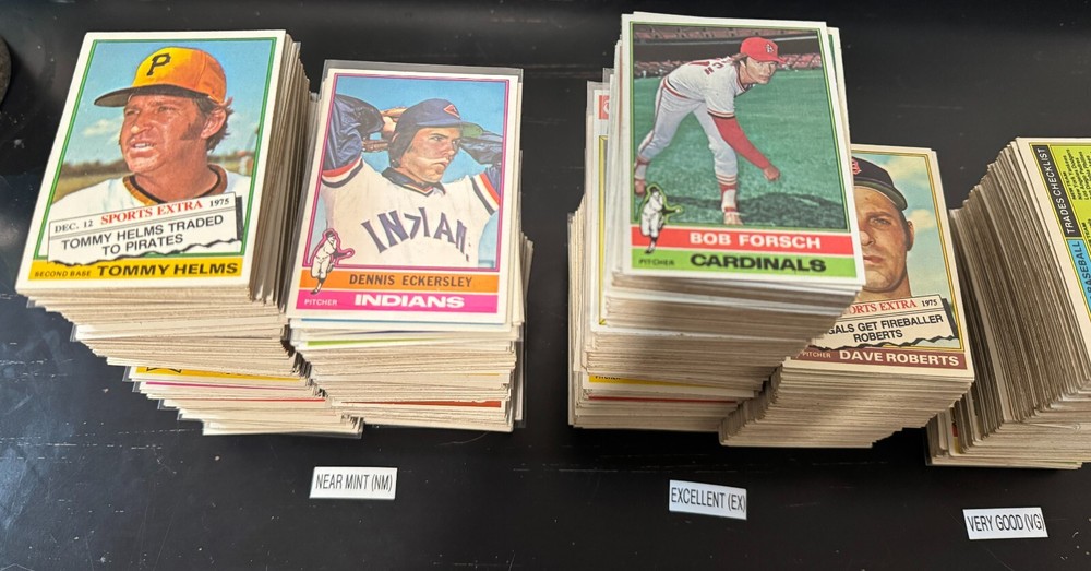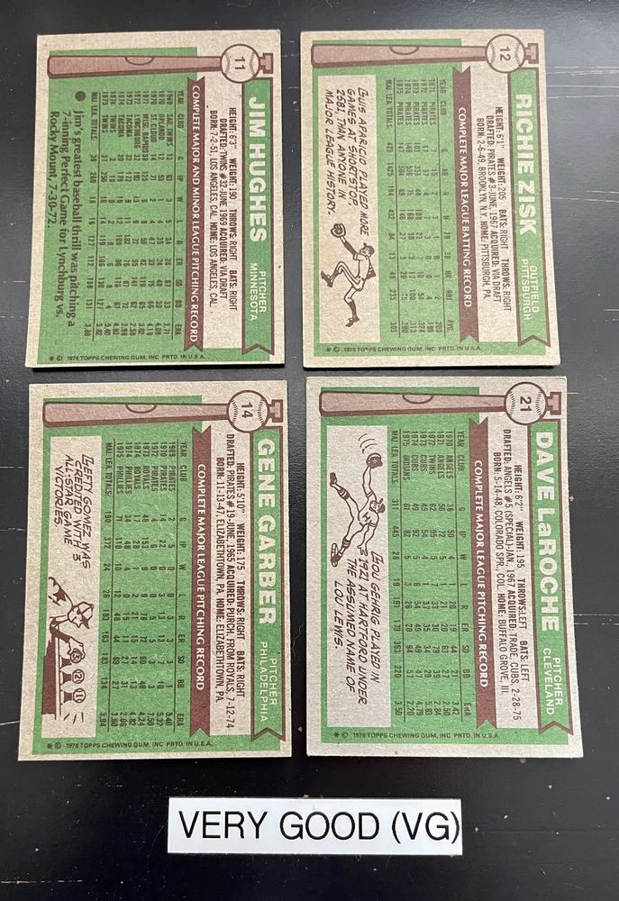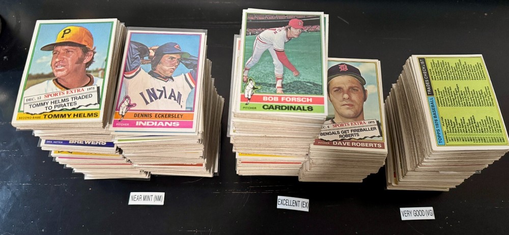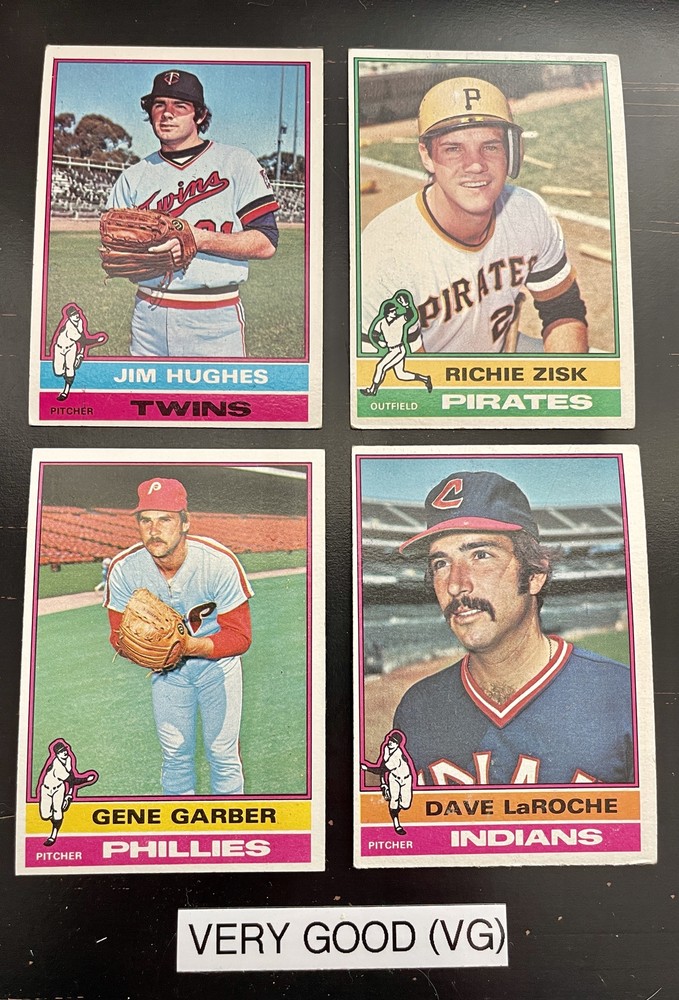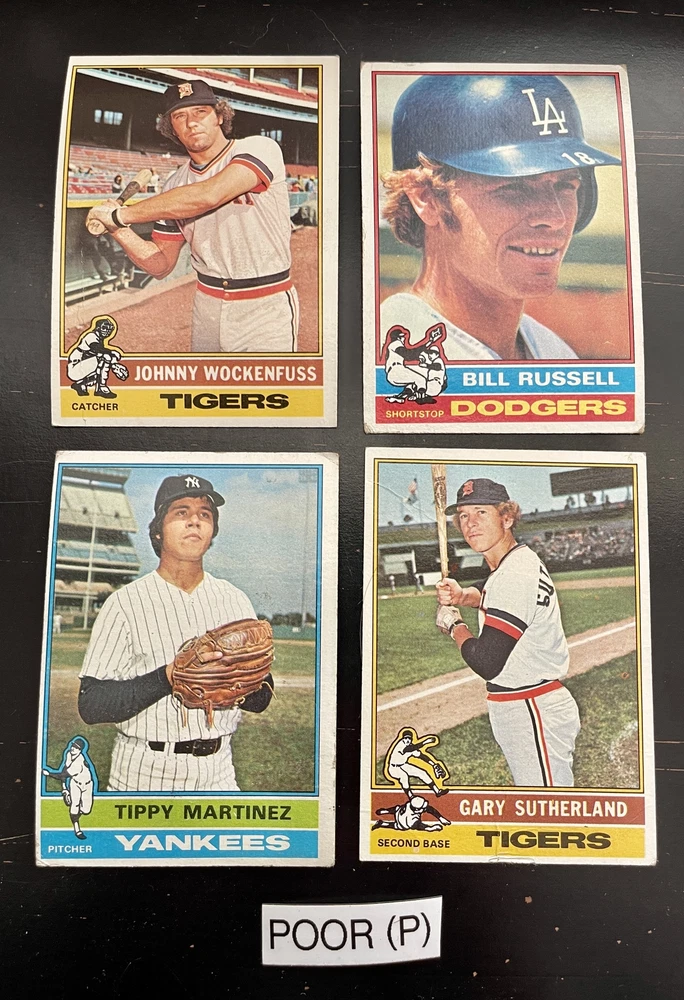 Complete Your Card Set 1976 Topps Baseball Cards 1-150 & Traded (P-NM) - You Pick - Complete Your Set Description 1976 Topps Baseball Cards 1-150 & Traded (P-NM) - You Pick - Complete Your Set Choose the cards from this listing to complete your set. Please see destails below about card conditions, discounts, combined shipping, packaging, and tracking. Cards available in this set include: Base Cards Inserts: Traded Please see the separate listing(s) for the other cards in this same set: 1976 Topps Baseball Cards 1-150 & Traded (P-NM) - You Pick - Complete Your Set 1976 Topps Baseball Cards 151-275 & Traded (P-NM) - You Pick - Complete Your Set 1976 Topps Baseball Cards 276-375 & Traded (P-NM) - You Pick - Complete Your Set 1976 Topps Baseball Cards 376-475 & Traded (P-NM) - You Pick - Complete Your Set 1976 Topps Baseball Cards 476-575 & Traded (P-NM) - You Pick - Complete Your Set 1976 Topps Baseball Cards 576-660 & Traded (P-NM) - You Pick - Complete Your Set Visit my eBay store to see other sets: Complete Your Card Sets | eBay Stores Discounts Volume Priceing 2 cards - 10% off both 3 cards - 15% off all 3 4+ cards - 20% off all of my "complete your set" listing cards in the cart. Combined Shipping $0.69 cents for the first card and .15 cents for each additional card $5.00 max shipping per order for "complete your set" listings Conditions I have categorized the cards according to the eBay card condition guide so you have a good idea of the condition of each card. The condition is added to the end of each card name and I usually grade more stringent that the condition guide outlines. If more than one card with the same condition specified is available, I will select the best conditioned card for you. NM +: Near Mint or Better Minor issues on corners or edges if any EX : Excellent Excellent shape with some imperfections 1-3 corners may have dings May have minor wrinkle (not usually) but no creases VG : Very Good 3-4 corners are bent or rounded Rarely have 1 wrinkle or crease that doesn’t cross the entire face of the card. No staining or very little (not often) on front or back of card No tears, significantly damaged surfaces, or pen writings on them P : Poor Corners are bent or rounded May have 1 or more wrinkles or creases May have some sort of staining on the front or back of card PM : Poor w/ pen or pencil markings Some sort of pen or pencil marking on the card Typically, the number on the back is crossed out or highlighted Checklists that have boxes checked Examples : See the pictures on the listing for examples that show a good representation of the general conditions. Packaging Your cards will be well protected guaranteed! All cards are packaged in penny sleeves, placed in top loader hard sleeves, and wrapped in a team bag. Orders of 14 cards or less and under $20 will be safely packaged and shipped in a plain white envelope Orders of 15+ cards will be safely packaged in a bubble envelope Shipping Cards will be packaged and shipped the same or next business day. All orders will ship using " eBay Standard Envelope " or " USPS Ground Advantage " Orders under $20 with 14 cards or less will ship in a plain envelope using "eBay Standard Envelope" which includes eBay Tracking Orders over $20 OR include 15+ cards will be packaged in a bubble envelope and shipped using "USPS Ground Advantage" which includes regular USPS Tracking. Tracking NOTE : Cards shipped with the "eBay Standard Envelope" tracking are scanned and the tracking is marked as "Delivered" when they arrive at the destination post office. It will take a couple additional days BEFORE the cards arrive at the your address. Please contact if you are experiencing delays longer than expected.