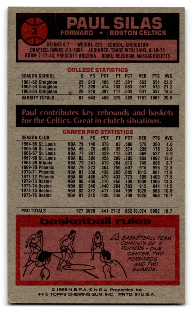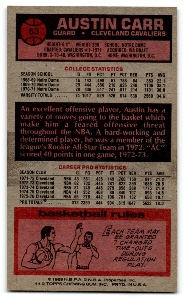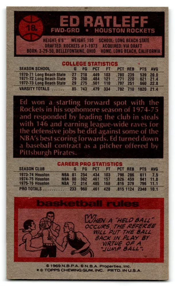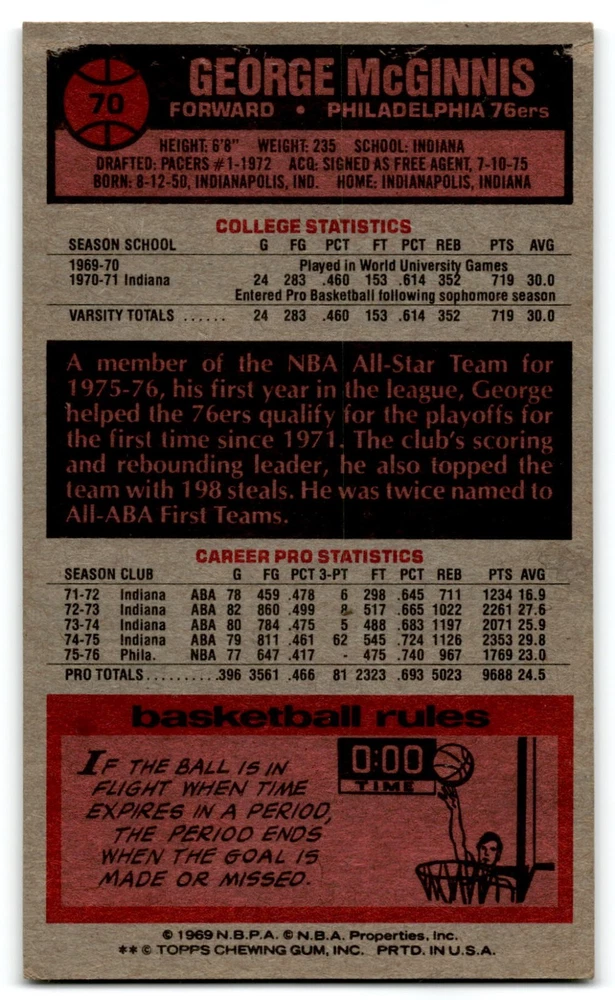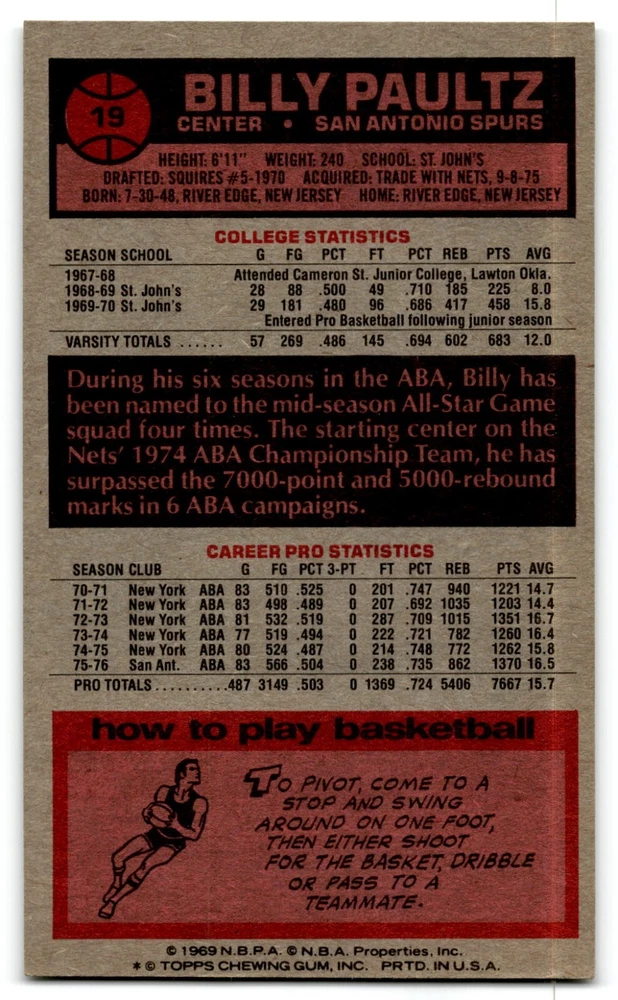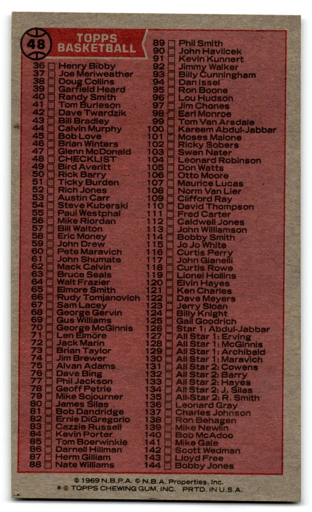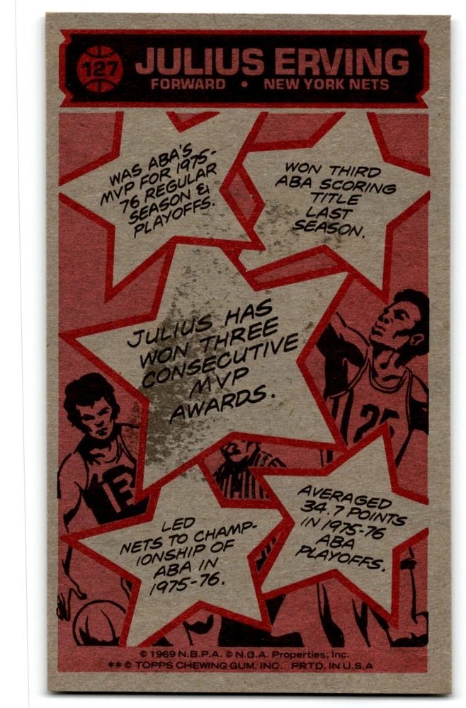 Hello, This listing is for single cards from the 1976-77 Topps Basketball set. ALL cards are in at least EX/VG to EX condition unless otherwise stated. If you are not sure what EX/VG to EX means, that is a 4 or 5 out of 10. None of these cards will be a PSA 10. The cards in the picture are the actual card you will receive. Please look at the card in the picture carefully to determine if you feel the card is in the condition I am stating in the listing. You will look at these cards and think I am crazy. Most of these cards have a thin or 2 thin lines going across the card. These look like a manufacturer crease? Some are more sever than others, some are barely noticeable. I have pictures above that show you what I mean. If you don't see some sort of damage to the card, then the card has this line(s). Shipping: 1st card costs $4.50 using Ground Advantage and it is free for each additional card (even from other listings) They will be shipped in a padded envelope or box. I put every card in a penny sleeve and an oversized top loader. The last thing I am trying to do is make a profit off of Shipping. If you have any questions about shipping please don't hesitate to ask.