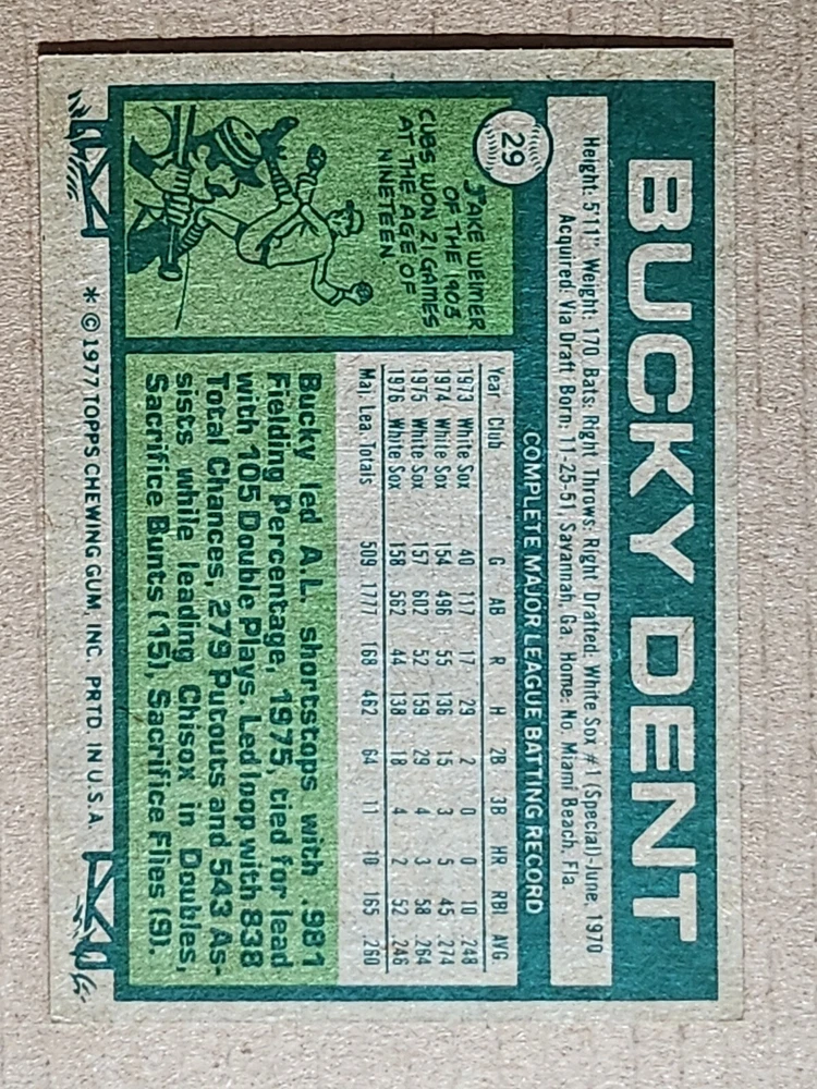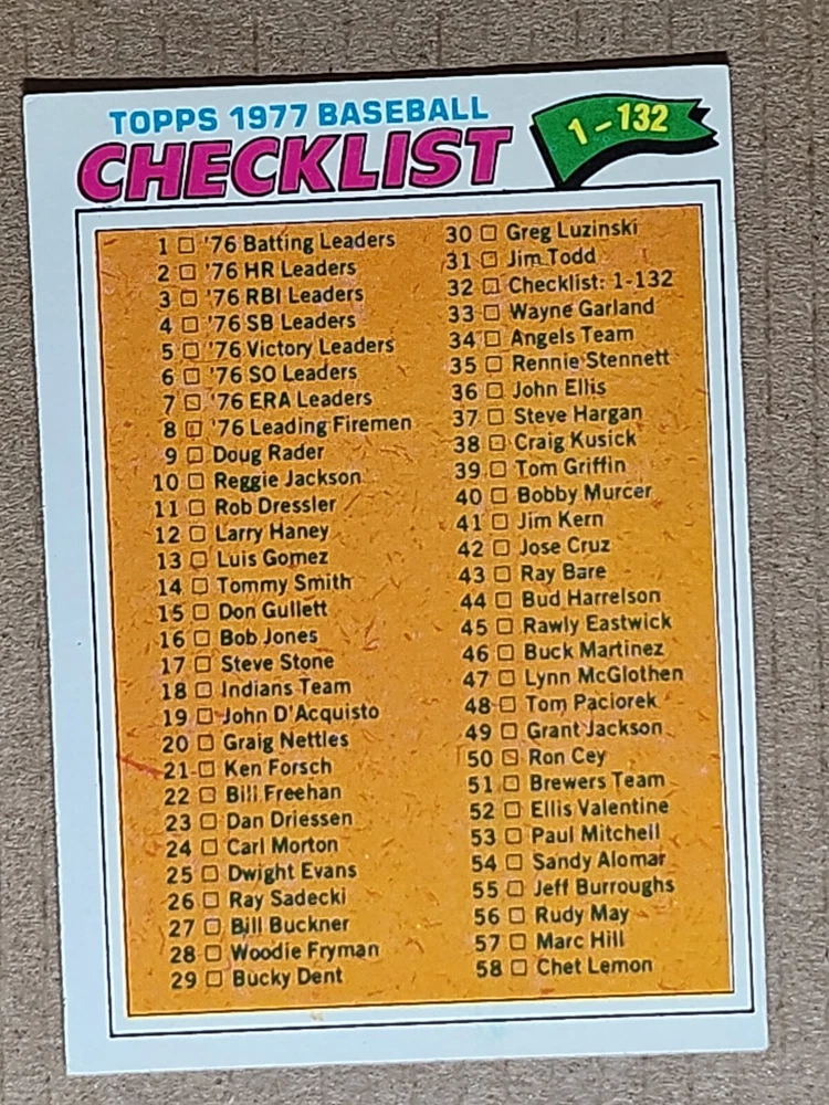 The product is a 1977 Topps Baseball Card set, featuring single cards from the Major League Baseball era. This vintage collection includes original Topps cards from 1977, with options to pick one out of 50 to complete your set. The cards are in standard size and come with features such as a base set, checklist, and rookie cards, making them a desirable choice for baseball card collectors looking to add pieces from the 1977 season to their collection. Shipping will be combined, so the more you purchase the more you save! Check out the others in our set: Cards 1-50 Cards 51-100 Cards 101-150 Cards 151-200 Cards 201-250 Cards 251-300 Cards 301-350 Cards 351-400 Cards 401-450 Cards 451-500 Cards 501-550 Cards 551-600 Cards 601-660 If you buy cards from multiple listings, message the seller for a discount! Add in one of our vintage mystery packs: Vintage Mystery Pack!