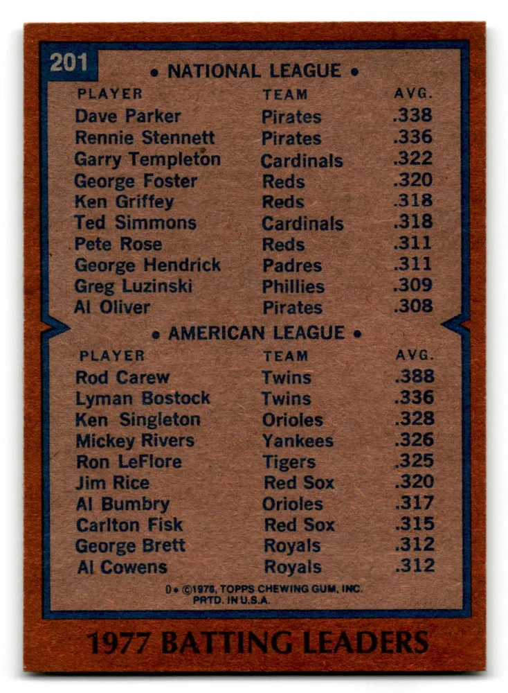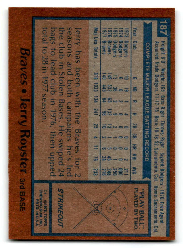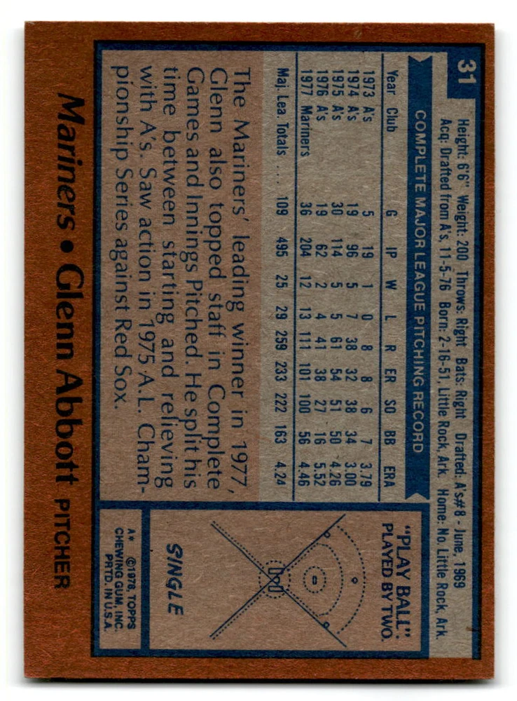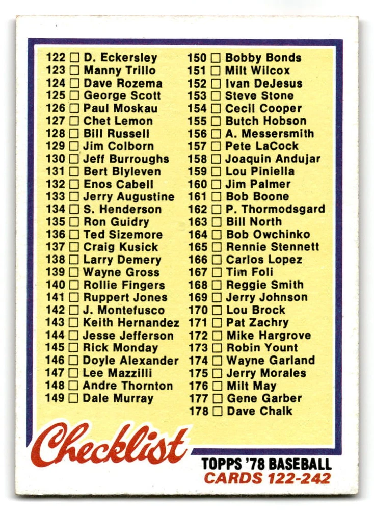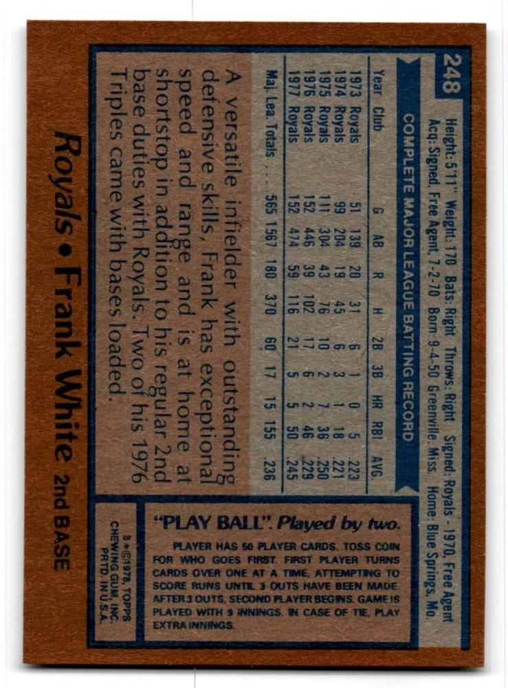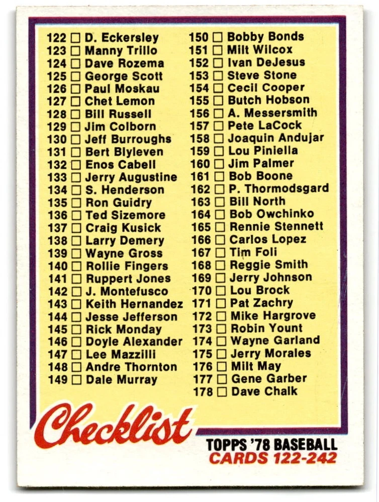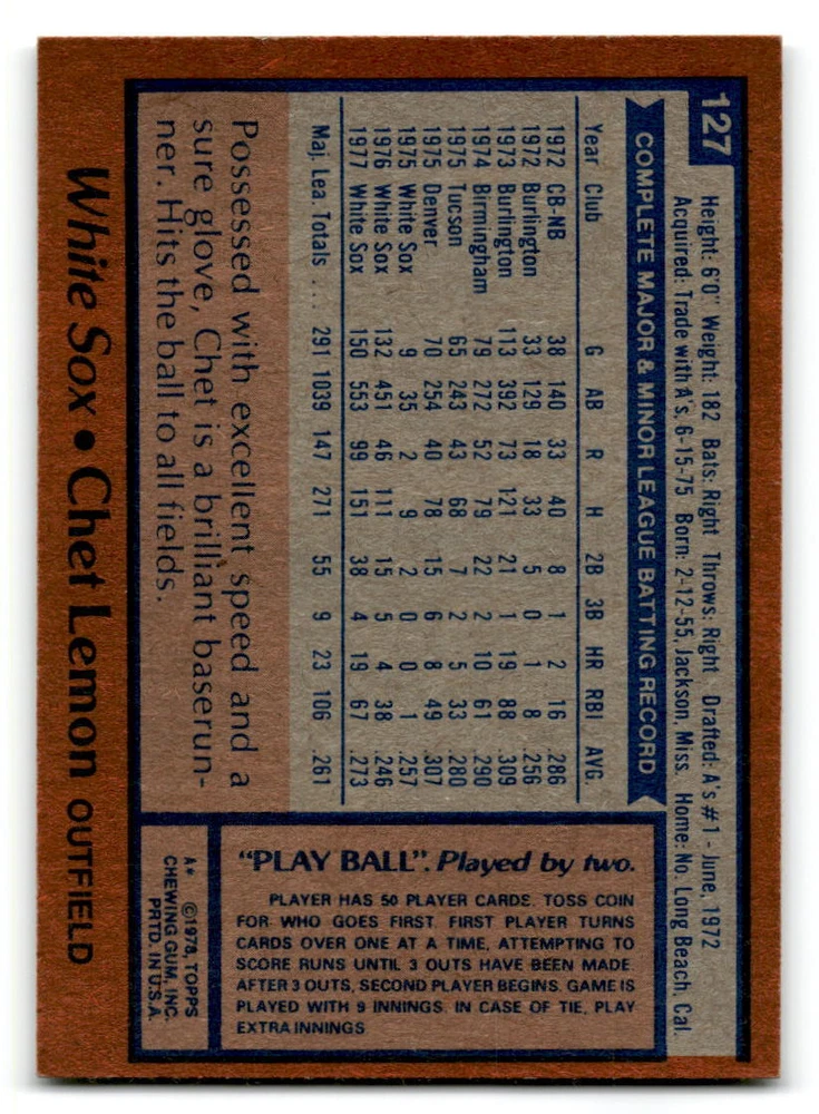Hello, This listing is for single cards from the 1978 Topps Baseball Set. The cards are in EX/MT to NM unless there is a grade next to the name. I also have noted if the card has wax on the card (front of the card, none of the cards have wax stains on the back). I have generically graded all wax cards as a VG. If there is a card in VG with no notes saying there is wax, then there is damage to the card. The card in the picture is the card you will receive! There are lots of pictures with lines on the cards, that is from my scanner. There are no lines on any of the cards!! Grading: NM = 7 EX/MT = 6 EX = 5 VG/EX = 4 VG = 3 G = 2 Shipping: 1st card costs $1.00 using eBay Standard Envelope and .50cents for each additional card. If you buy 7 cards or more, the shipping cost is $4 for Ground Advantage (just check the boxes for Ground Advantage in the check out and no matter how many cards you are buying the cost will be $4 max! When buying 7 cards, they will be shipped in a padded envelope or box. (Ground Advantage or Priority Mail for larger orders) The last thing I am trying to do is make a profit off of Shipping. When using eBay Standard Envelope, I will put up to 2 cards in 1 top loader to ship. Unfortunately that is the max I can put in a top loader because of the thickness of these cards. I can fit 3 top loaders in one started letter sized envelope. If you have any questions about shipping please don't hesitate to ask.