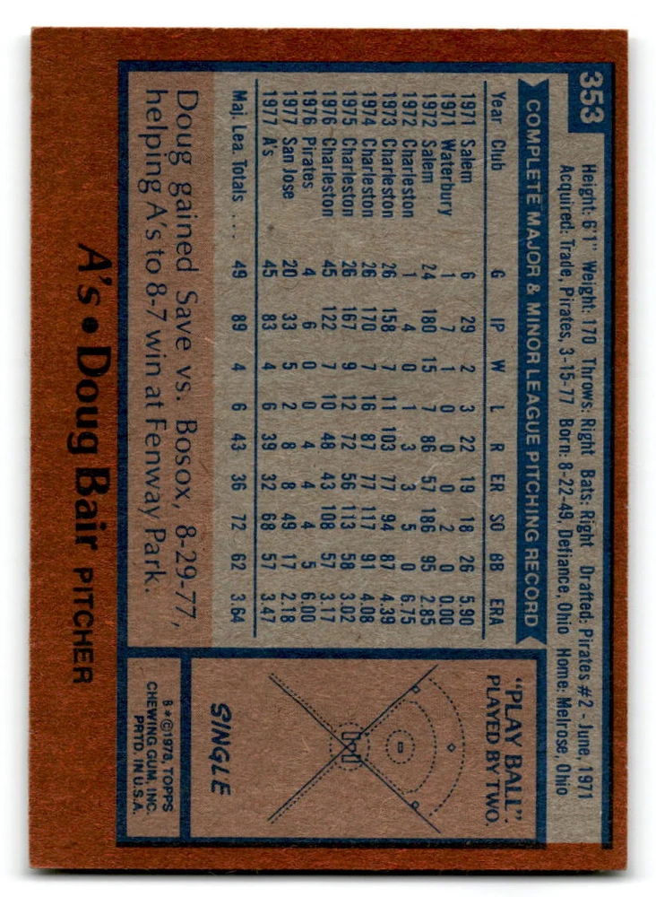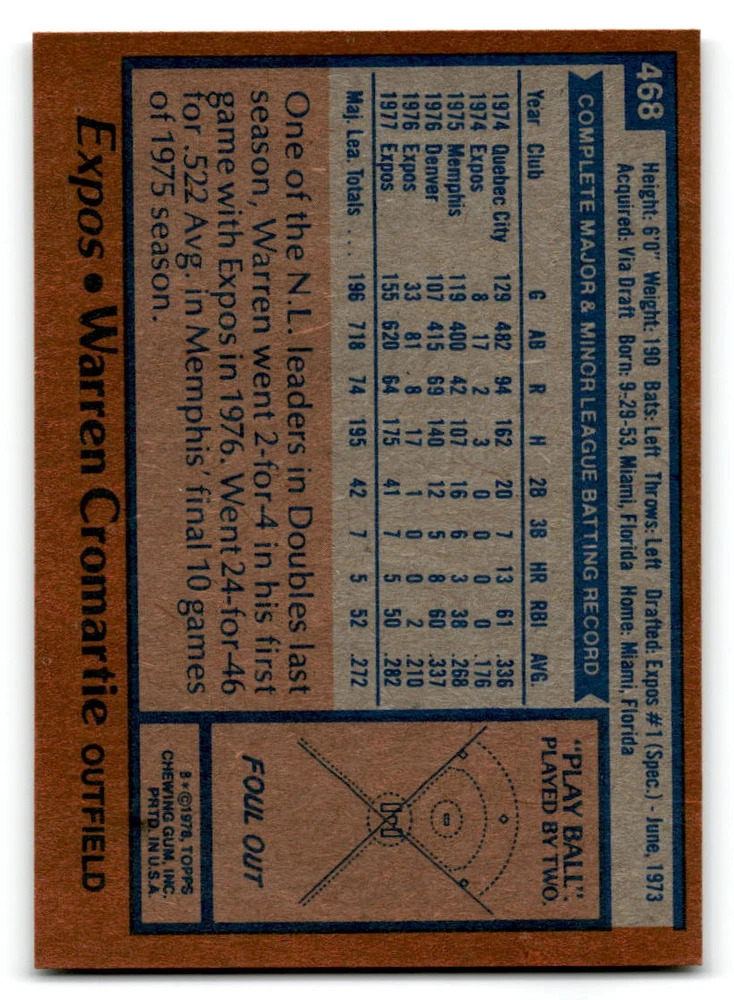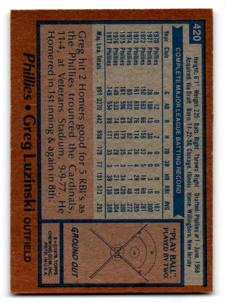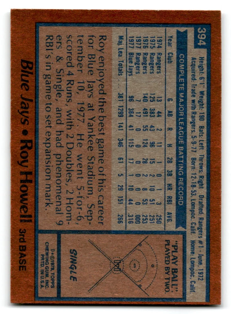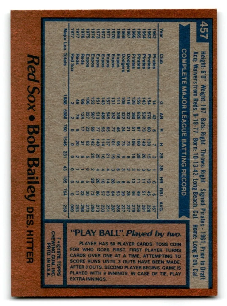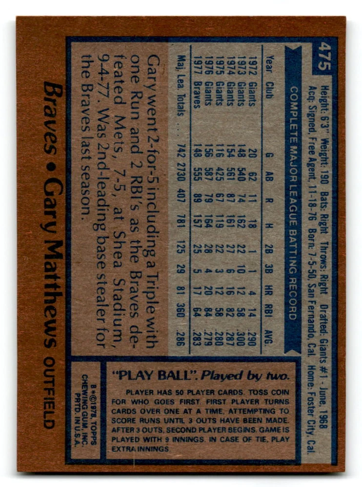 Hello, This listing is for single cards from the 1978 Topps Baseball Set. The cards are in EX/MT to NM unless there is a grade next to the name. I also have noted if the card has wax on the card (front of the card, none of the cards have wax stains on the back). I have generically graded all wax cards as a VG. If there is a card in VG with no notes saying there is wax, then there is damage to the card. The card in the picture is the card you will receive! There are lots of pictures with lines on the cards, that is from my scanner. There are no lines on any of the cards!! Grading: NM = 7 EX/MT = 6 EX = 5 VG/EX = 4 VG = 3 G = 2 Shipping: 1st card costs $1.00 using eBay Standard Envelope and .50cents for each additional card. If you buy 7 cards or more, the shipping cost is $4 for Ground Advantage (just check the boxes for Ground Advantage in the check out and no matter how many cards you are buying the cost will be $4 max! When buying 7 cards, they will be shipped in a padded envelope or box. (Ground Advantage or Priority Mail for larger orders) The last thing I am trying to do is make a profit off of Shipping. When using eBay Standard Envelope, I will put up to 2 cards in 1 top loader to ship. Unfortunately that is the max I can put in a top loader because of the thickness of these cards. I can fit 3 top loaders in one started letter sized envelope. If you have any questions about shipping please don't hesitate to ask.