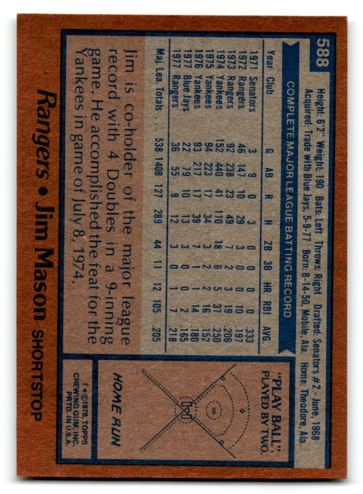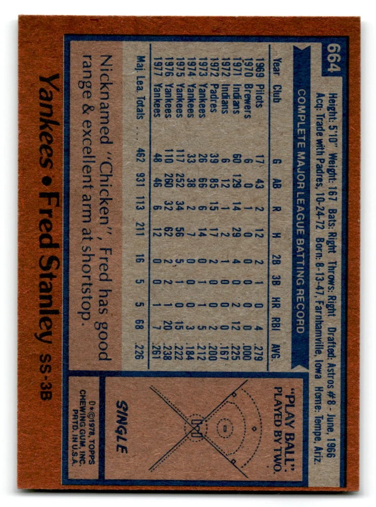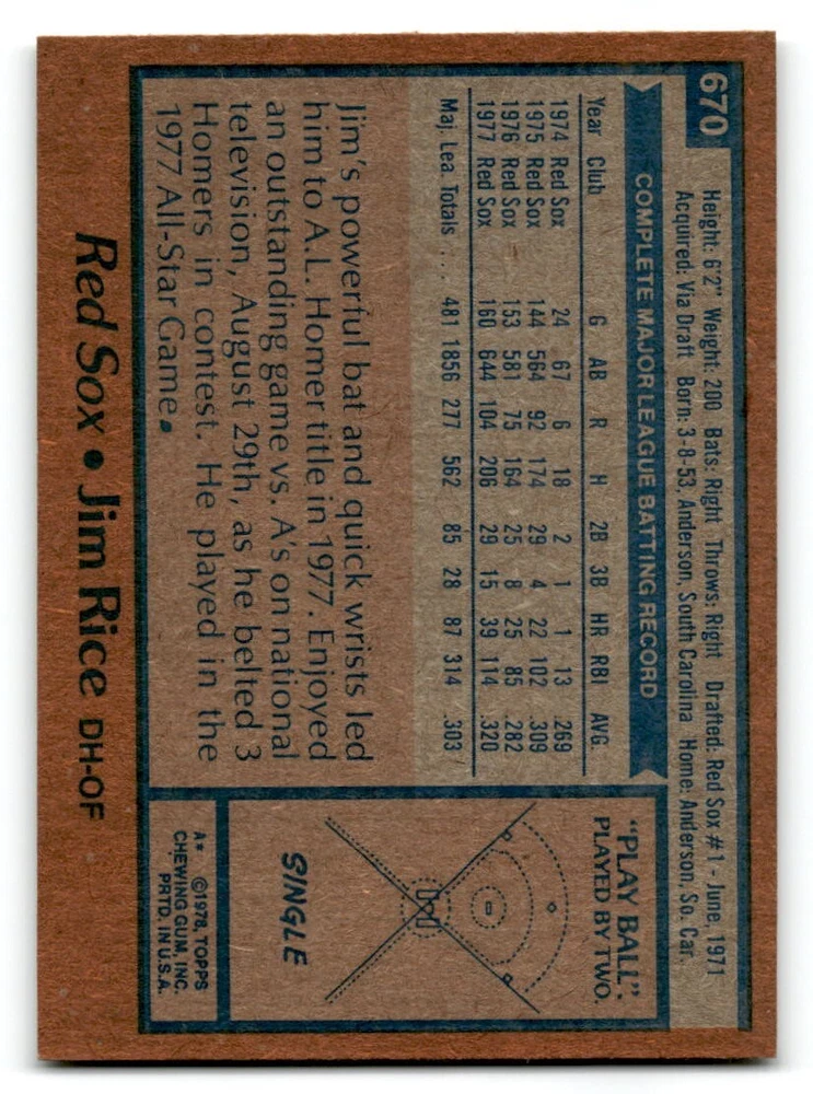 Hello, This listing is for single cards from the 1978 Topps Baseball Set. The cards are in EX/MT to NM unless there is a grade next to the name. I also have noted if the card has wax on the card (front of the card, none of the cards have wax stains on the back). I have generically graded all wax cards as a VG. If there is a card in VG with no notes saying there is wax, then there is damage to the card. The card in the picture is the card you will receive! There are lots of pictures with lines on the cards, that is from my scanner. There are no lines on any of the cards!! Grading: NM = 7 EX/MT = 6 EX = 5 VG/EX = 4 VG = 3 G = 2 Shipping: 1st card costs $1.00 using eBay Standard Envelope and .50cents for each additional card. If you buy 7 cards or more, the shipping cost is $4 for Ground Advantage (just check the boxes for Ground Advantage in the check out and no matter how many cards you are buying the cost will be $4 max! When buying 7 cards, they will be shipped in a padded envelope or box. (Ground Advantage or Priority Mail for larger orders) The last thing I am trying to do is make a profit off of Shipping. When using eBay Standard Envelope, I will put up to 2 cards in 1 top loader to ship. Unfortunately that is the max I can put in a top loader because of the thickness of these cards. I can fit 3 top loaders in one started letter sized envelope. If you have any questions about shipping please don't hesitate to ask.