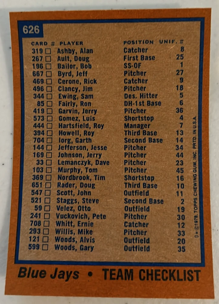 Hello, This listing is for single cards from the 1978 Topps Baseball Set. The cards are in EX/MT to NM unless there is a grade next to the name. I also have noted if the card has wax on the card (fron...