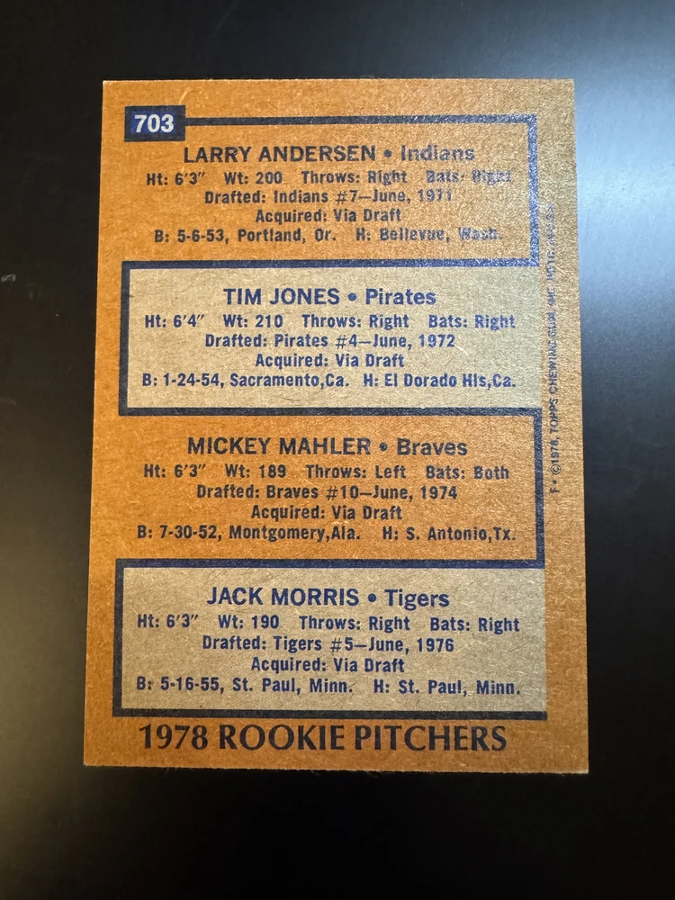 Complete Your Card Set 1978 Topps Baseball Cards 501-726 (EX-NM) - You Pick - Complete Your Set Description 1978 Topps Baseball Cards 501-726 (EX-NM) - You Pick - Complete Your Set Choose the cards from this listing to complete your set. Please see destails below about card conditions, discounts, combined shipping, packaging, and tracking. Cards available in this set include: Base Cards Please see the separate listing(s) for the other cards in this same set: 1978 Topps Baseball Cards 1-250 (EX-NM) - You Pick - Complete Your Set 1978 Topps Baseball Cards 251-500 (EX-NM) - You Pick - Complete Your Set 1978 Topps Baseball Cards 501-726 (EX-NM) - You Pick - Complete Your Set Visit my eBay store to see other sets: Complete Your Card Sets | eBay Stores Discounts Volume Priceing 2 cards - 10% off both 3 cards - 15% off all 3 4+ cards - 20% off all of my "complete your set" listing cards in the cart. Combined Shipping $0.69 cents for the first card and .15 cents for each additional card $5.00 max shipping per order for "complete your set" listings Conditions All cards are in Excellent (EX) to Near Mint (NM) condition. Due to the age of the cards some may have minor corner dings or surface imperfections. Packaging Your cards will be well protected guaranteed! All cards are packaged in penny sleeves, placed in top loader hard sleeves, and wrapped in a team bag. Orders of 14 cards or less and under $20 will be safely packaged and shipped in a plain white envelope Orders of 15+ cards will be safely packaged in a bubble envelope Shipping Cards will be packaged and shipped the same or next business day. All orders will ship using " eBay Standard Envelope " or " USPS Ground Advantage " Orders under $20 with 14 cards or less will ship in a plain envelope using "eBay Standard Envelope" which includes eBay Tracking Orders over $20 OR include 15+ cards will be packaged in a bubble envelope and shipped using "USPS Ground Advantage" which includes regular USPS Tracking. Tracking NOTE : Cards shipped with the "eBay Standard Envelope" tracking are scanned and the tracking is marked as "Delivered" when they arrive at the destination post office. It will take a couple additional days BEFORE the cards arrive at the your address. Please contact if you are experiencing delays longer than expected.